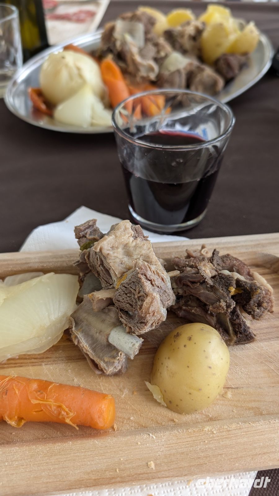 Ein wahrlich traumhaftes Mittagessen wurde uns serviert. Pane Canasau mit frischem Ricottakäse, saftig gekochtes Schaffleisch mit Gemüse und Kartoffeln, gegrilltes Spanferkel und zum Schluß noch eine schöne Nachspeise. Serviert mit Cannonau und zum krönenden Abschluss Cafe.