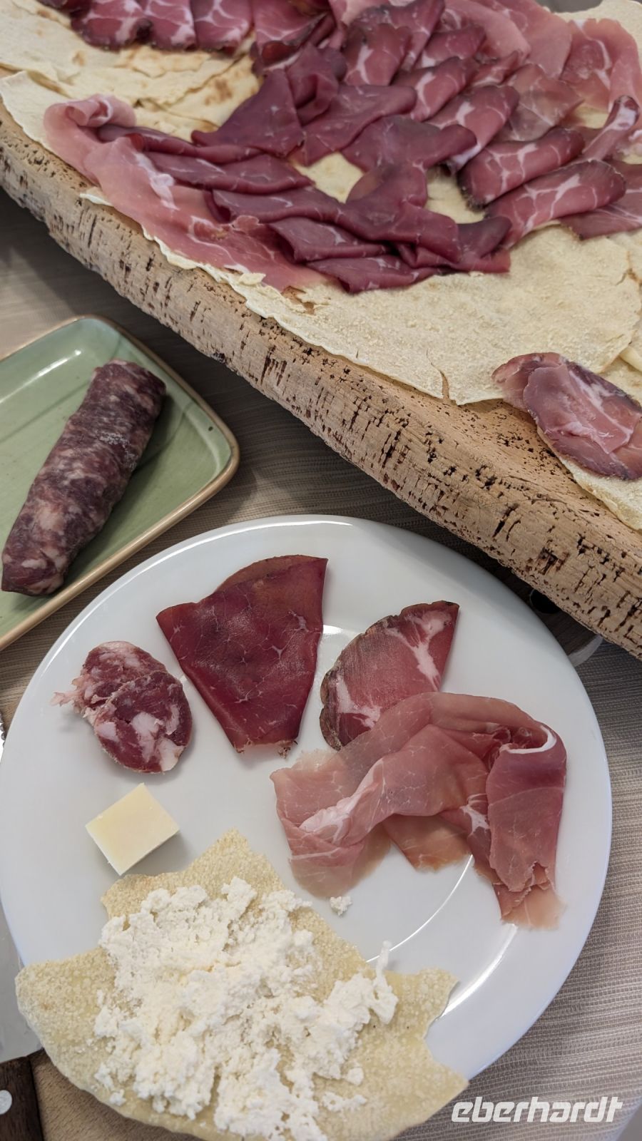 Das Naturhotel Vallicciola, mitten im Wald, verwöhnte unsere Mägen mit sardischem Käse, Wurst, Salami, Weiß- und Rotwein, und der echten gallurischen Spezialität - Mazzafrissa, eine mit Mehl gekochte Sahne, das man am besten mit dem knusprigen Pane Canasau genießt.