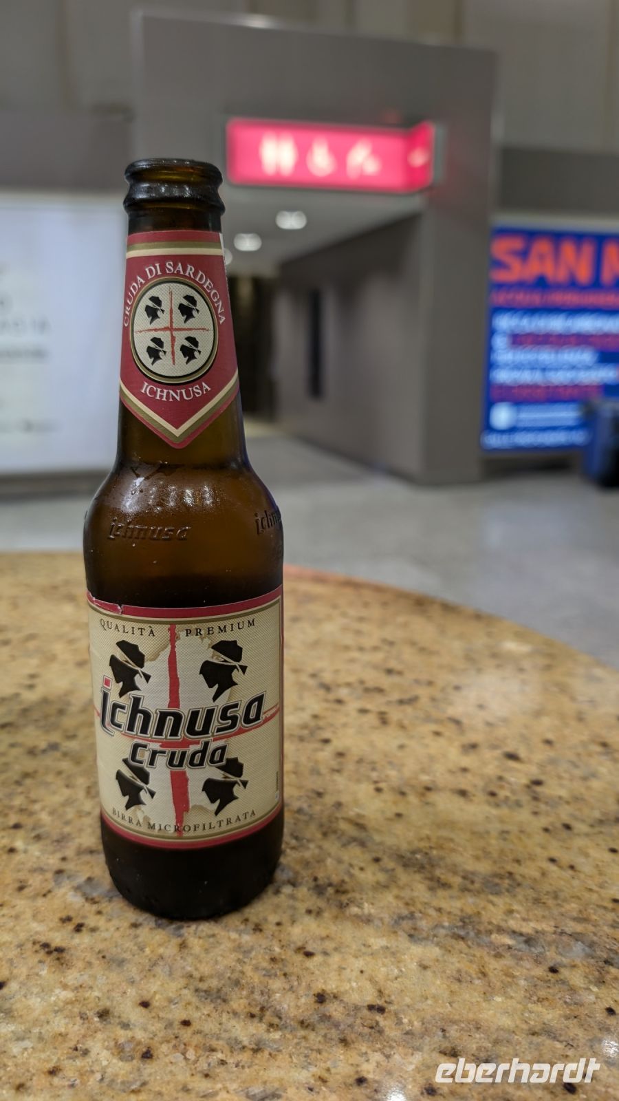 Noch war die Stimmung am Flughafen in Olbia gut und man nahm die „Seele Sardiniens“ innerlich bei einem Abschiedsbierchen auf.