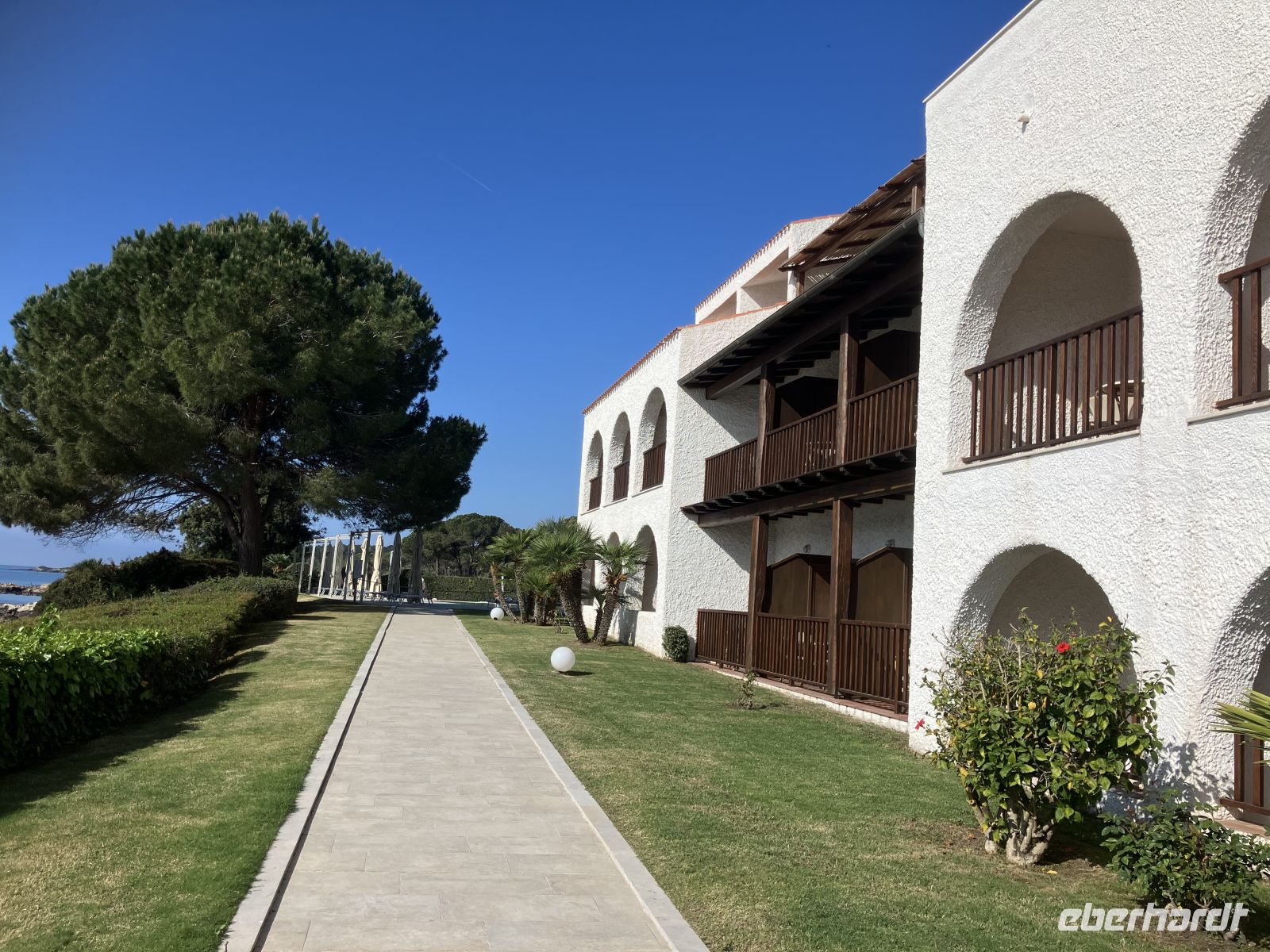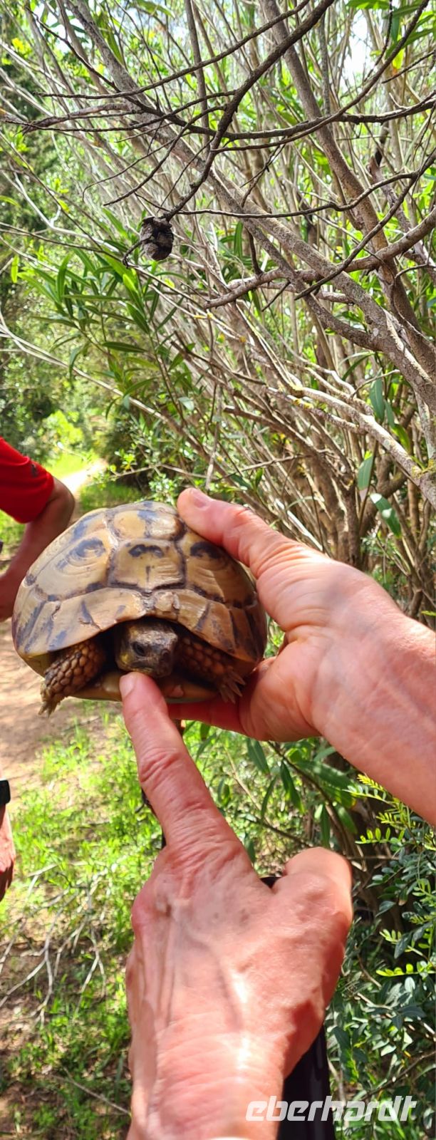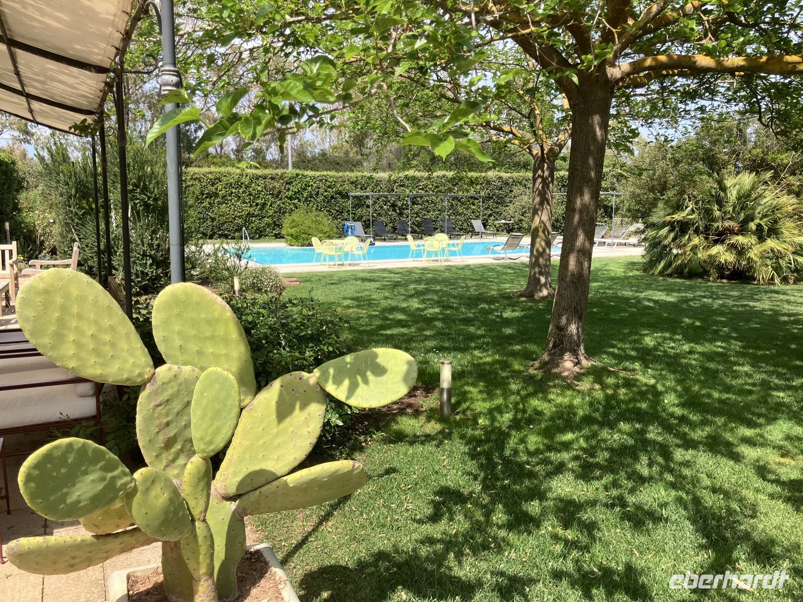Weiter gehts zu unserer Kapwanderung. Wir starten in der Nähe des Lagos Baratz. Neben Enten, Lybellen kreuzt auch eine Schildkröte unseren Weg. Da man in der Vorsaison noch am Herrichten der Strandkioske ist, fahren wir zurück nach Fertilia, dem Ort, an dem sich auch unser Hotel befindet. Nach kurzer Mittagspause geht es weiter zum Weingut Leda‘d‘Ittri, eine sehr gepflegte Anlage mit einigen gelungen eingerichteten Zimmern und Pool.