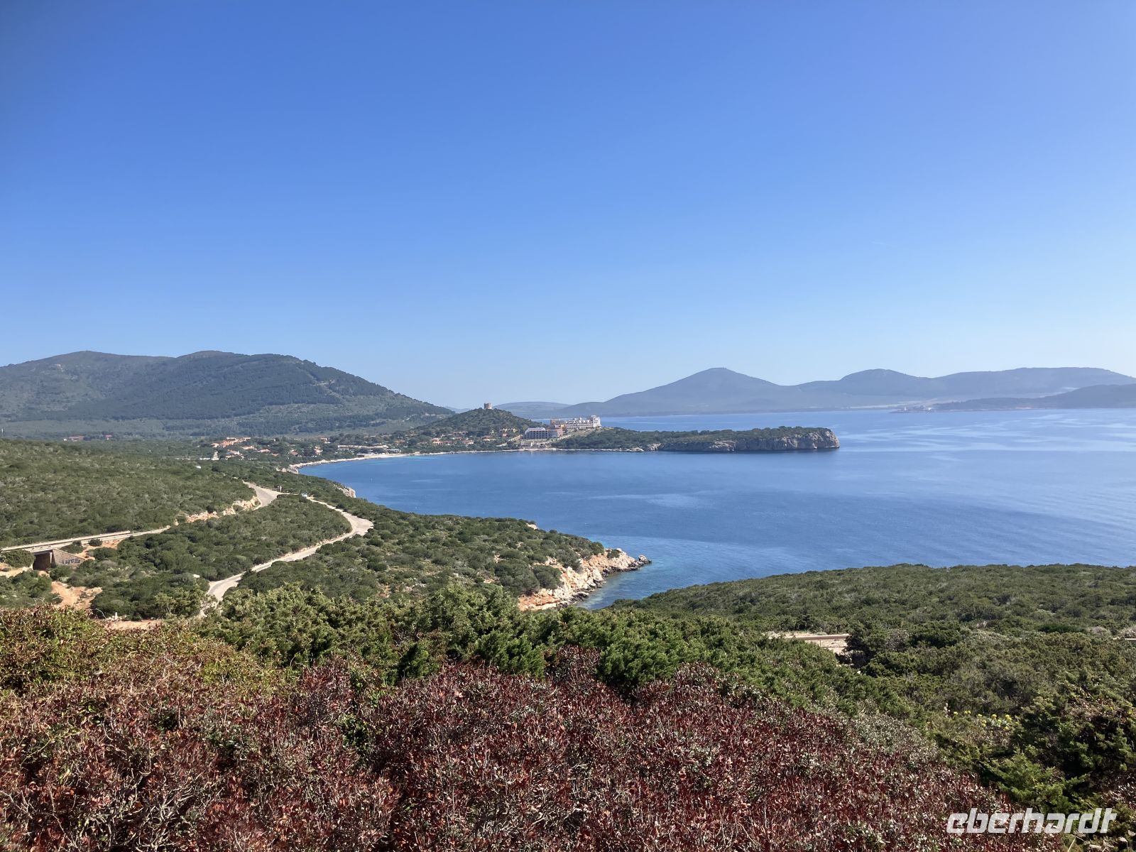 Mit dem Bus ging es nach Nordwesten Richtung Capo Caccia. Zuvor gibt es einen kurzen Stopp in Fertillia am Coop, Mineralwasser lautet der Vorzugswunsch. Hier machen wir halt und können einen wunderen Ausblick über die Küste und einige ehemaligen Wachtürme (Torro) genießen.