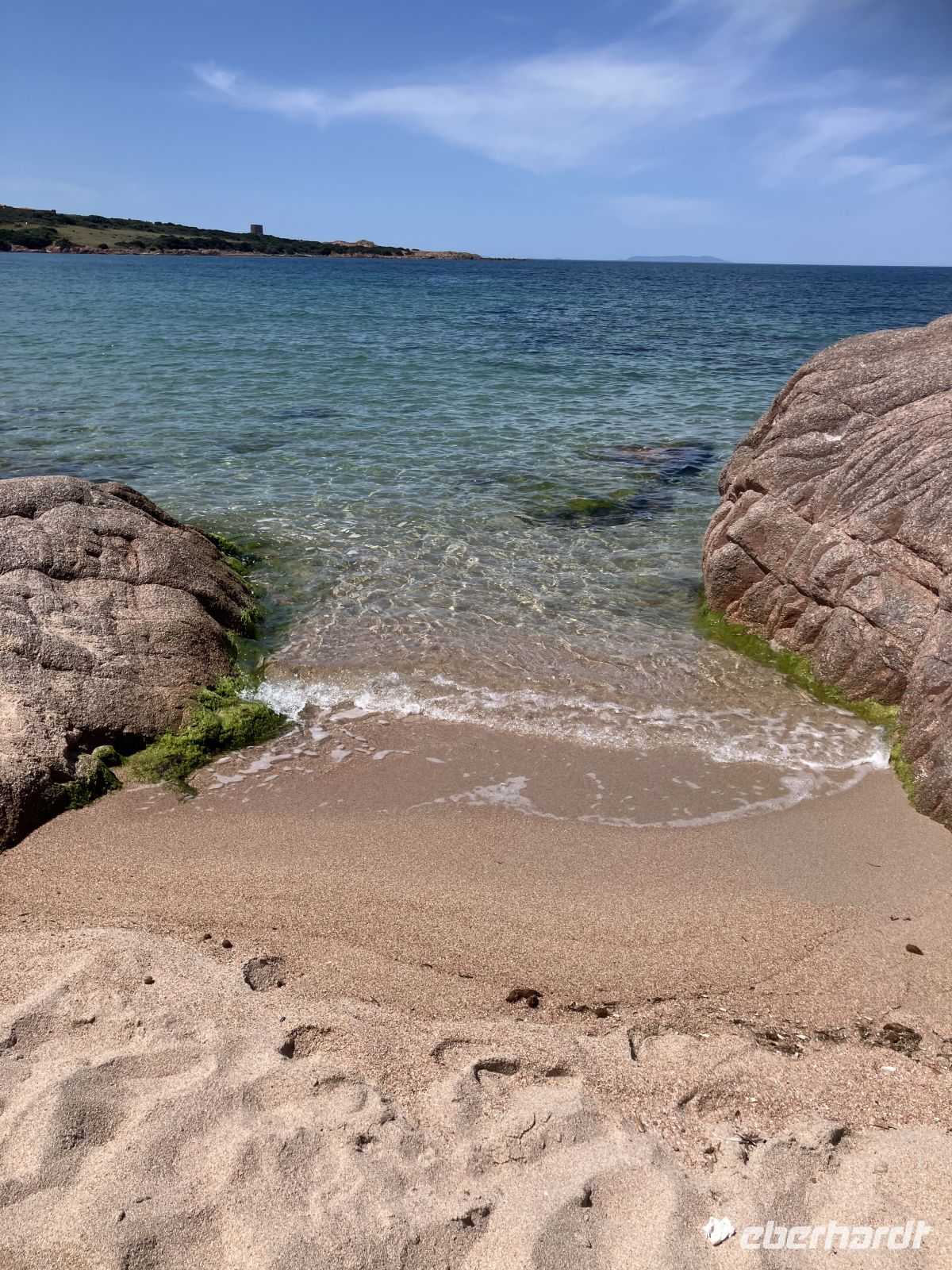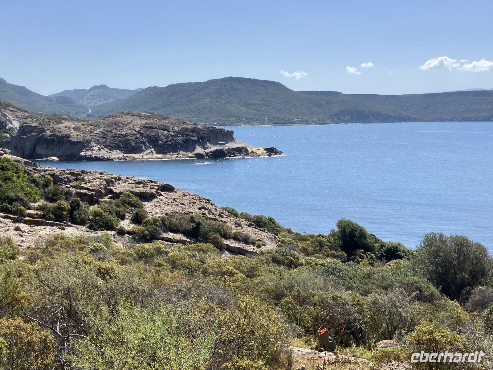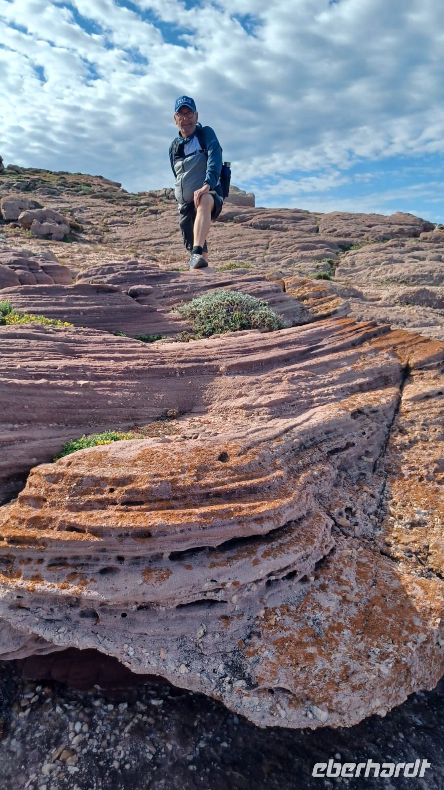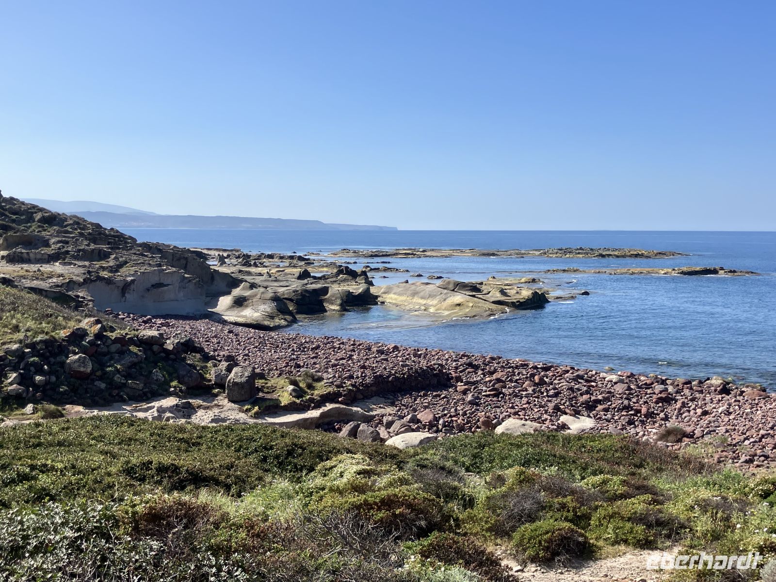 Wir genießen das reichliche Frühstück und starten kurz nach 9:00 Uhr. Der Auastieg befindet sich in der Nähe des Örtchens Isola Rossa am Golf von Asinara. Wir wandern immer parallel zum Strand. Die Küste Sardiniens ist sehr vielfältig. Lange Gesteinsformationen werden von kleinem Badebuchten und längeren Sandstränden unterbrochen. Sardinien wird oft als die „Karibik Europas“ bezeichnet, da die Insel mit kristallklarem, türkisblauem Wasser und feinsten Sandstränden auf über 1.800 km Küstenlänge beeindruckt. Der Sandstrand Cala Golorite schaffte es 2025 sogar in die Top 25 der schönsten Strände der Welt. Das besonders klare Wasser rund um sardiniens Küste resultiert aus der reichlichen Sauerstoffproduktion des Seegrases.