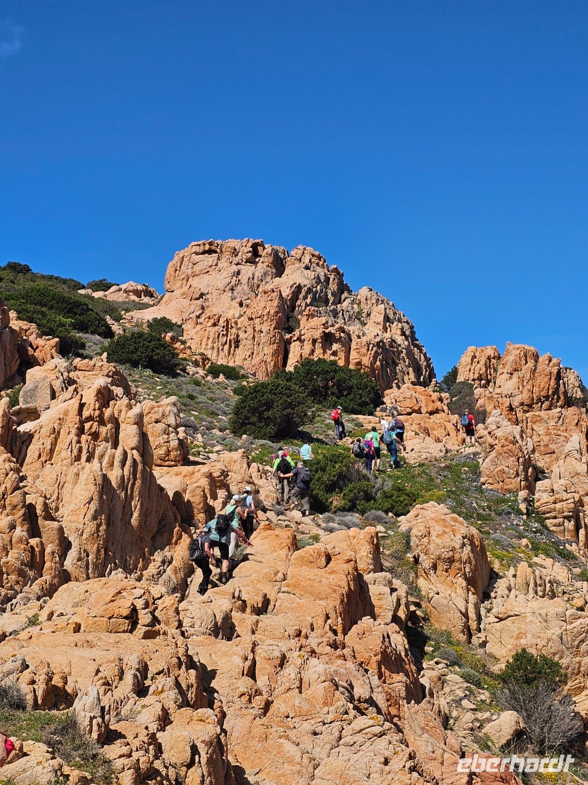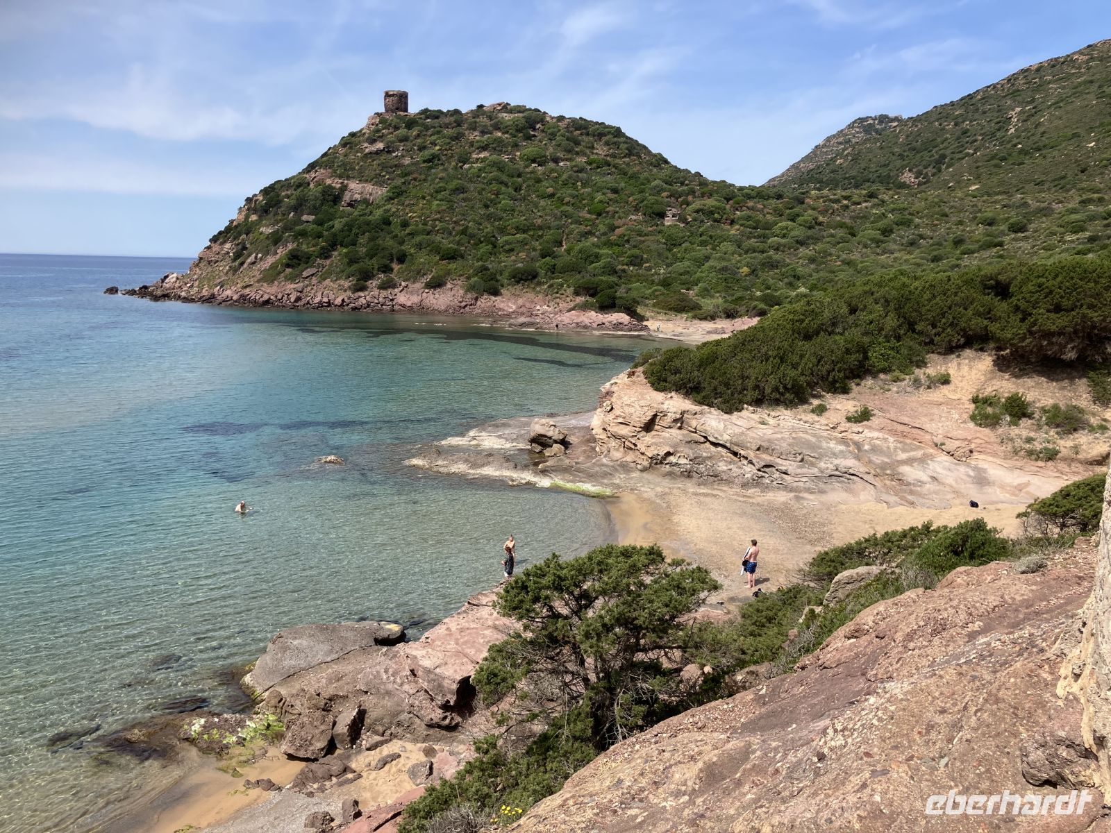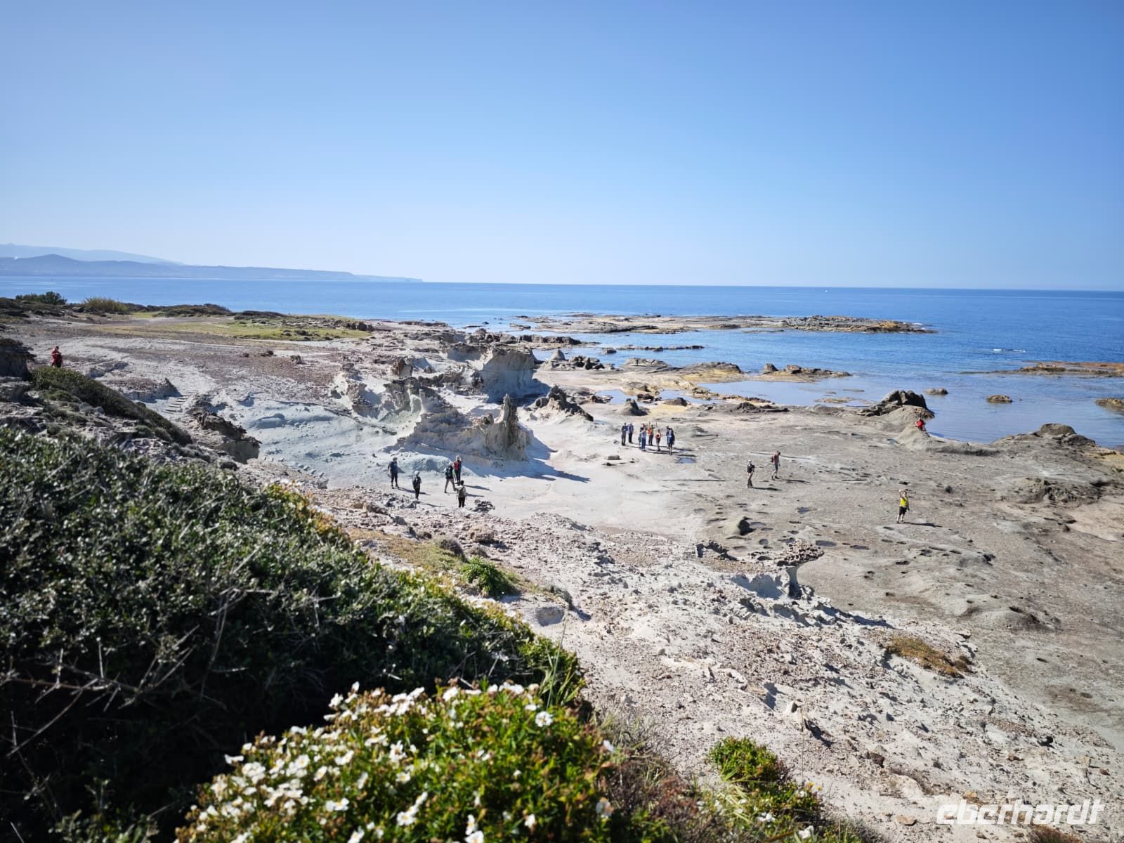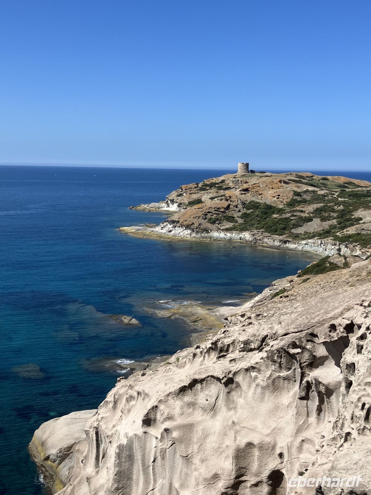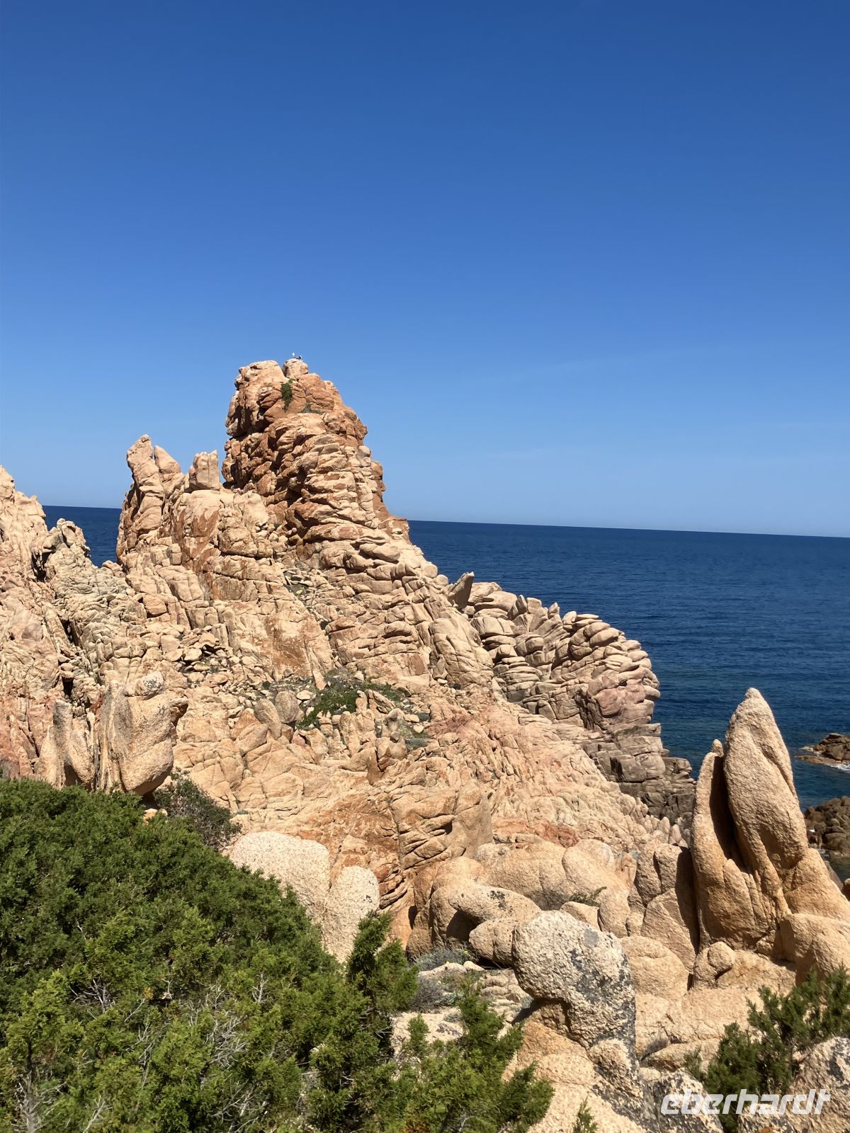 Wir genießen das reichliche Frühstück und starten kurz nach 9:00 Uhr. Der Auastieg befindet sich in der Nähe des Örtchens Isola Rossa am Golf von Asinara. Wir wandern immer parallel zum Strand. Die Küste Sardiniens ist sehr vielfältig. Lange Gesteinsformationen werden von kleinem Badebuchten und längeren Sandstränden unterbrochen. Sardinien wird oft als die „Karibik Europas“ bezeichnet, da die Insel mit kristallklarem, türkisblauem Wasser und feinsten Sandstränden auf über 1.800 km Küstenlänge beeindruckt. Der Sandstrand Cala Golorite schaffte es 2025 sogar in die Top 25 der schönsten Strände der Welt. Das besonders klare Wasser rund um sardiniens Küste resultiert aus der reichlichen Sauerstoffproduktion des Seegrases.