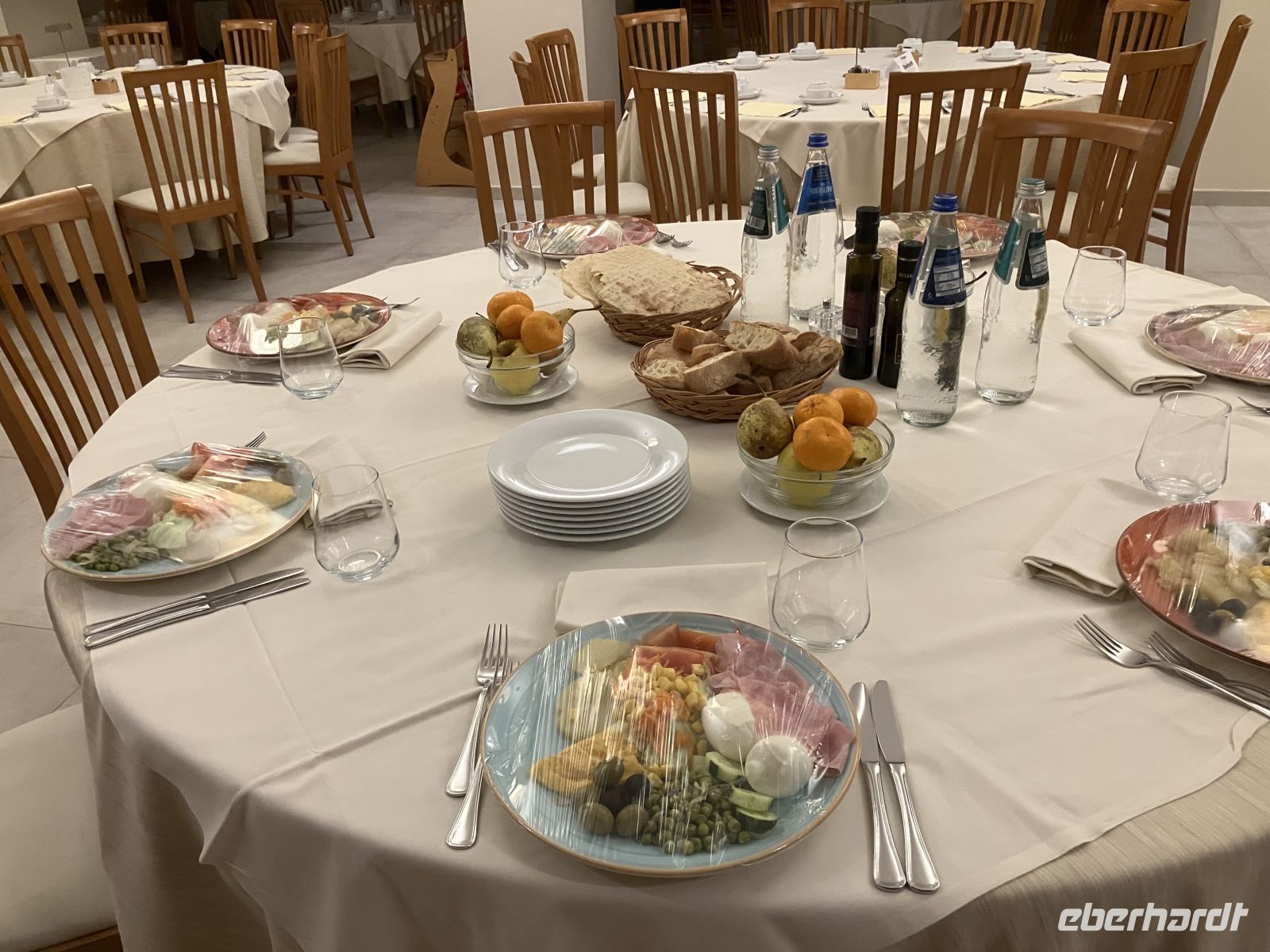 Fast täglich trudelten neue Meldungen zum unfassbare fünf Tage langen Streik der Lufthansa ein. Permanent musste bei Eberhardt Travel in Kesseldorf umgeplant werden. Zum Teil entstanden ungewöhnliche Anreisewege, wie z.B. per Bus über Krakau oder mit der Bahn über Bologna. Dank Ryanair und Germanwings konnten alle anreisen, wenn auch mit einigen Stunden Zeitverschiebung. Die siebenköpfige Vorhut, die es als Einzigsten fast pünktlich über Hannover geschafft hatten wurden sehr spät in der Nacht sehr herzlich im Hotel empfangen. Und es gab einen typisch italienischen Mitternachtsimbiß.