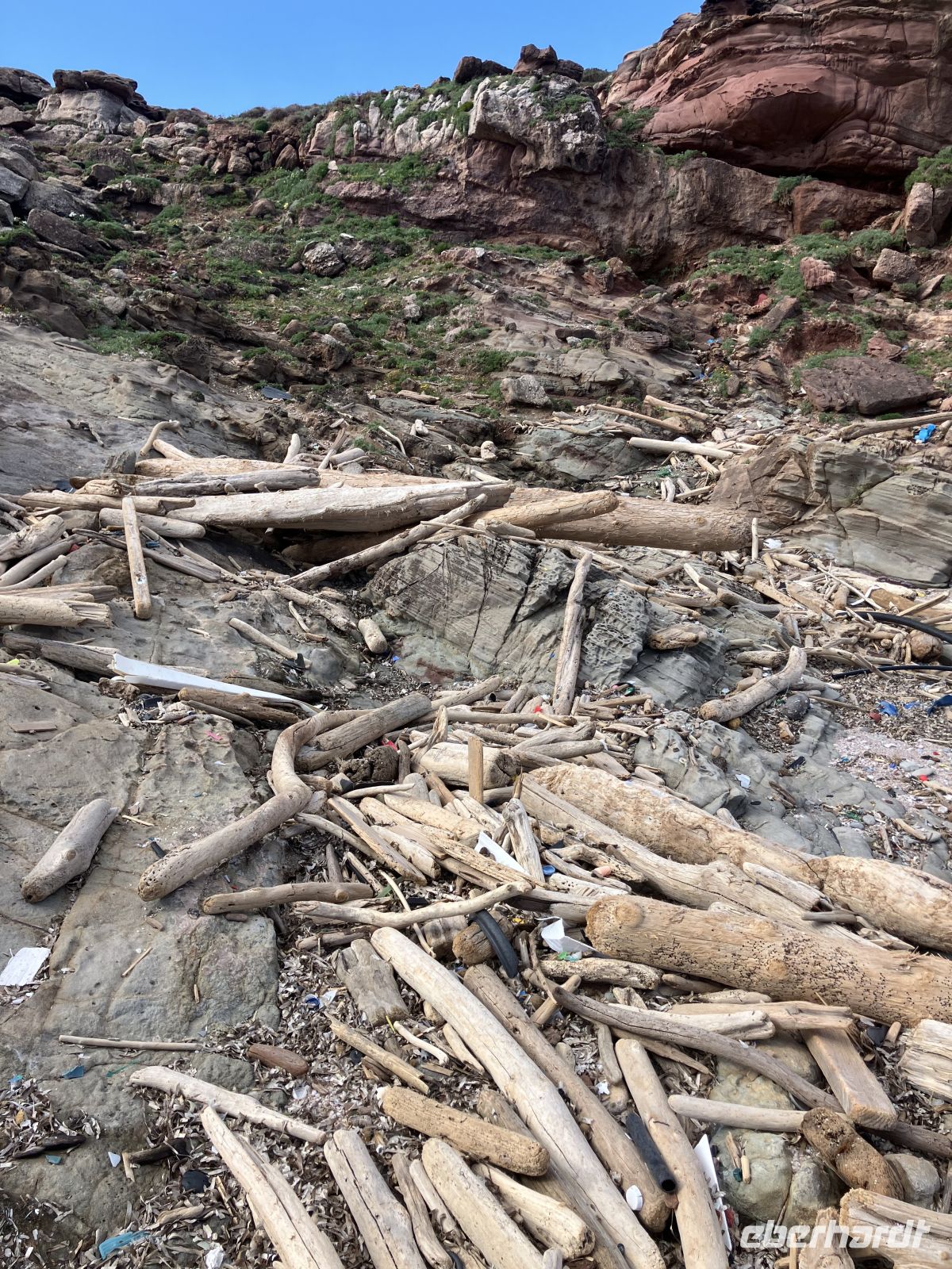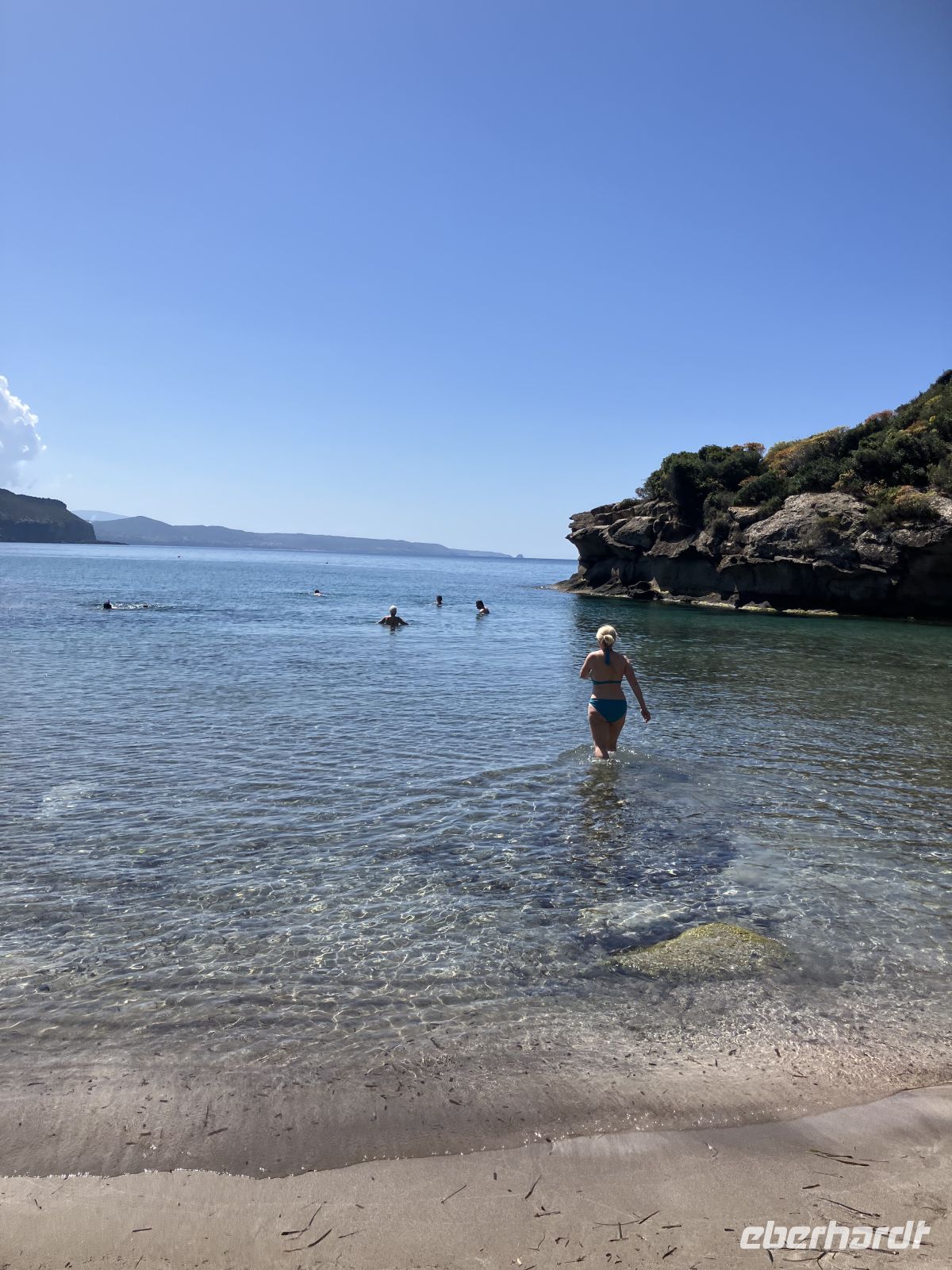 Der Rest der Gruppe geht noch auf einen Ausflug zum Aussichtspunkt am Torro del Boll, wo einige schon am ersten Tag waren. Zuvor unternehmen wir noch eine kurze Küstenwanderung mit Start am Spiaggia Torre del Porticciolo. In einer abgelegen Bucht müssen wir zur Kenntnis nehmen, was so alles an Müll an Land gespült wird.