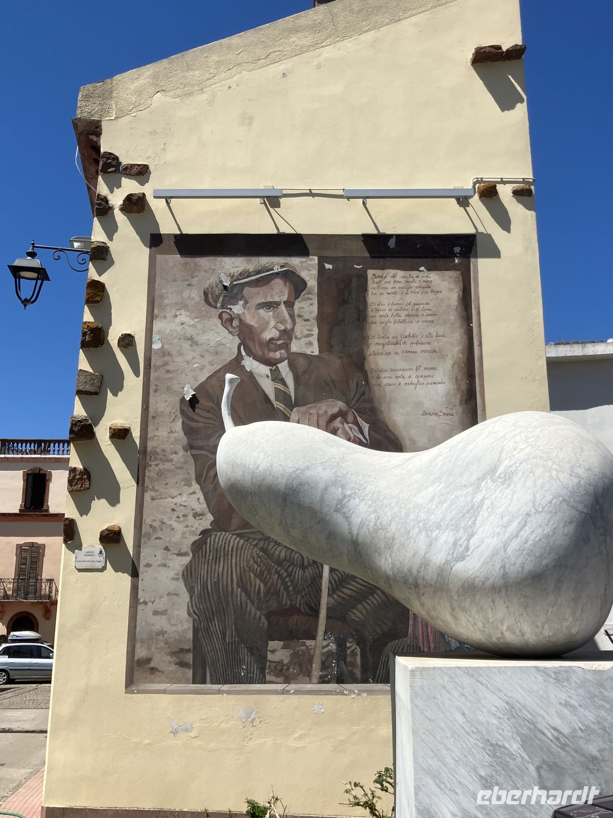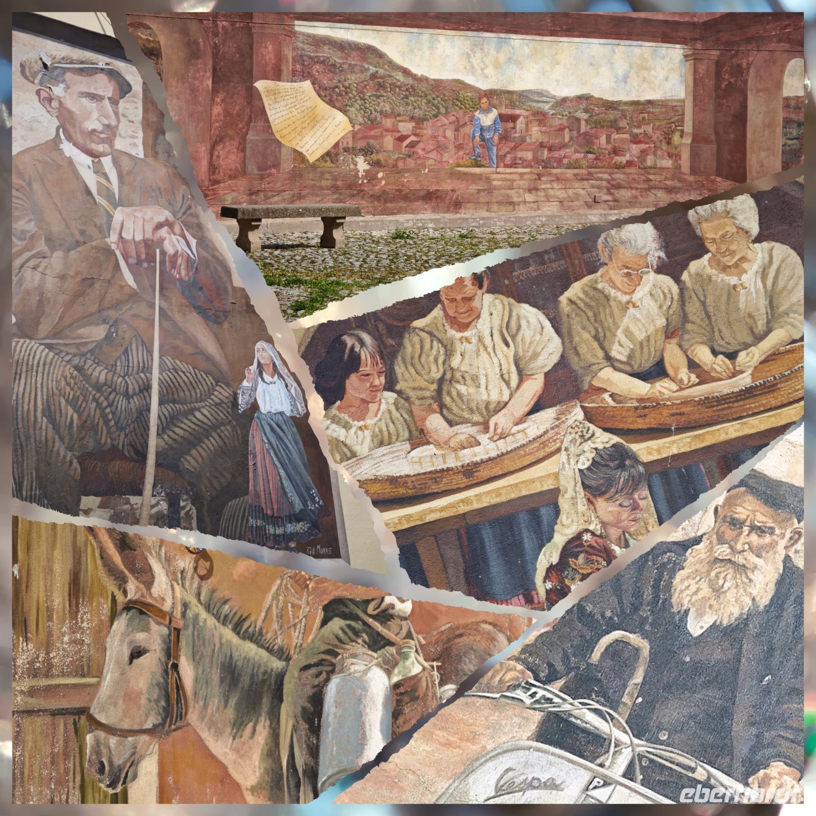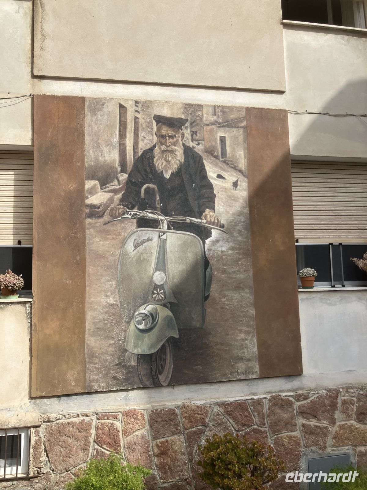 Unsere Fahrt führt uns ins Dörfchen Bessude. Während des Rundganges durch den Ort könne wir die vielfältigsten, sehr gelungen Wandmalereien bewundern. Wir wandern einen Höhenweg entlang und es bieten sich vielfältige Blicke in Schluchten und auf Tafelberge. Heute ist es reichlich warm und obwohl kaum Höhenmeter zu überwinden sind, kommen wir gut ins schwitzen. Wir erreichen den Ort Bonnanaro (Ort mit knapp 1.000 Einwohnern sind keine Seltenheit) und erreichen dort auch unseren Bus. Unser Ziel ist ein Besonderes. Mitten im Wald ist für uns eine Tafel hergerichtet. Wir werden von einer Hirtenfamilie bewirtet. Auf Sardinien sollen übrigens mehr Schafe (fast 2 Mio) als Menschen leben. Das Essen ist sehr reichlich und geschmacklich hervorragend. Begleitend spielt der Hausherr auf einem Schifferklavier für uns auf. Dazu wird neben Wein auch typisch sardischer Schnaps gereicht. So sind wir auf der Heimfahrt zum Hotel besonders ausgelassen und singen die von Flametta eingespielten Italoklassiker lauthals mit.