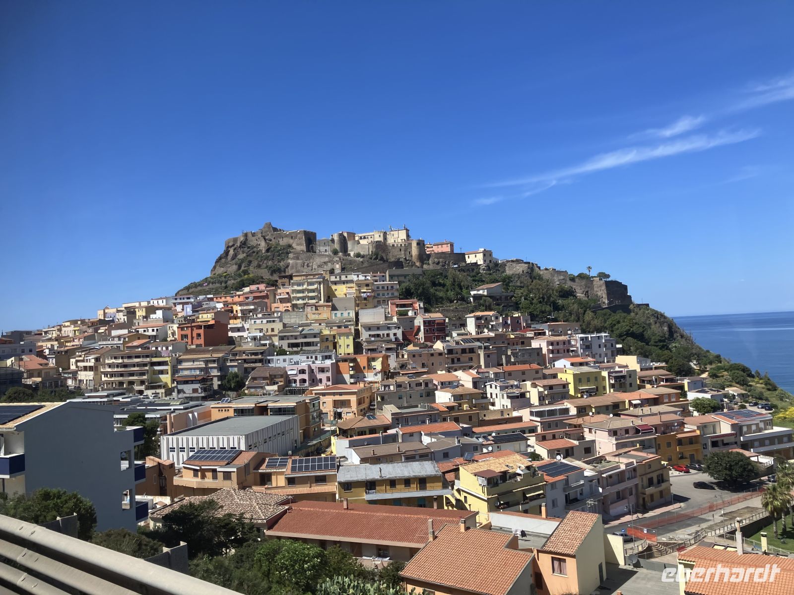 Nach der inzwischen schon obligatorischen Badepause geht es weiter mit Salvarore ins Örtchen Castelsardo. Wie der Name schon verrät, thront über dem Ort eine Burg aus dem 12.Jh., welche jedoch weitgehend als Museum und zu Wohnzwecken genutzt wird. Wir wählen die bequeme Variante und nutzen den Shuttlebus hinauf. Traumhafte Ausblicke erwarten uns. Der Ort Castesardo gilt als eines der faszinierendsten mittelalterlichen Dörfer und gehört zur Vereinigung der „Borghi più belli d’Italia“ (Schönste Orte Italiens). Das Städtchen selbst thront auf einem markanten Trachytfelsen direkt am Golf von Asinara und ist besonders für seine gut erhaltene Festungsanlage und seine jahrhundertealte Handwerkstradition bekannt.