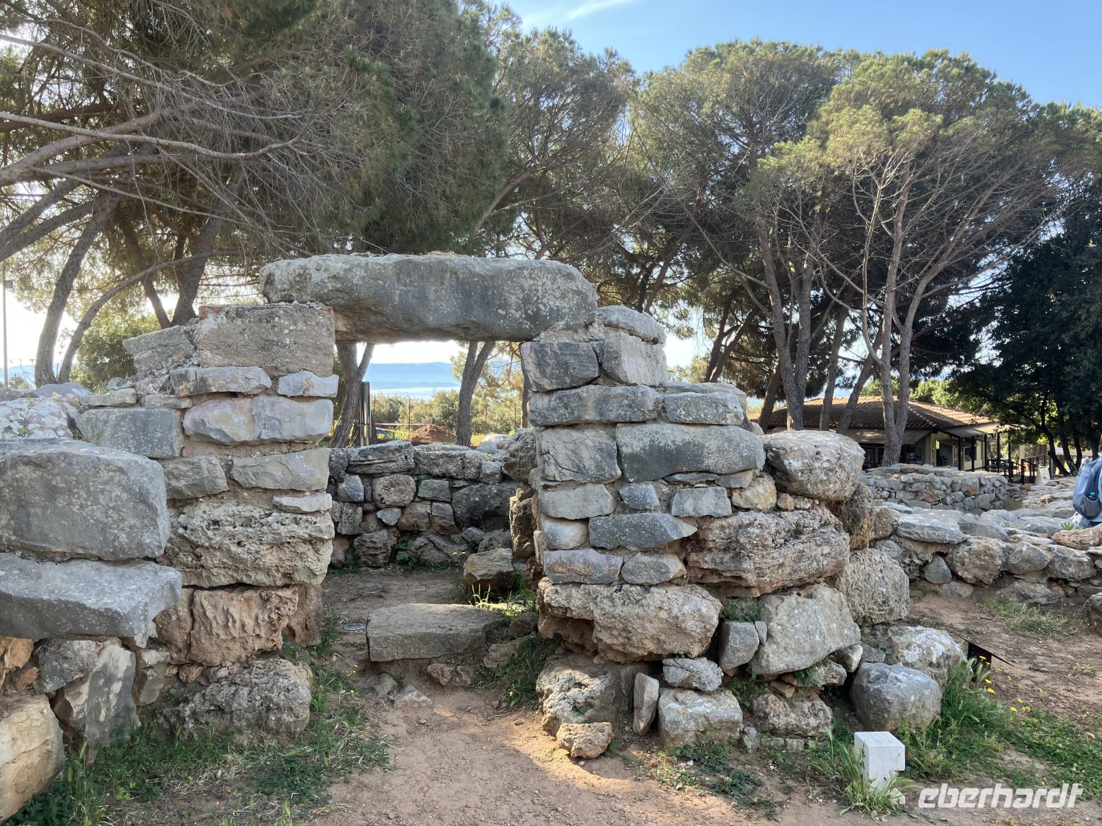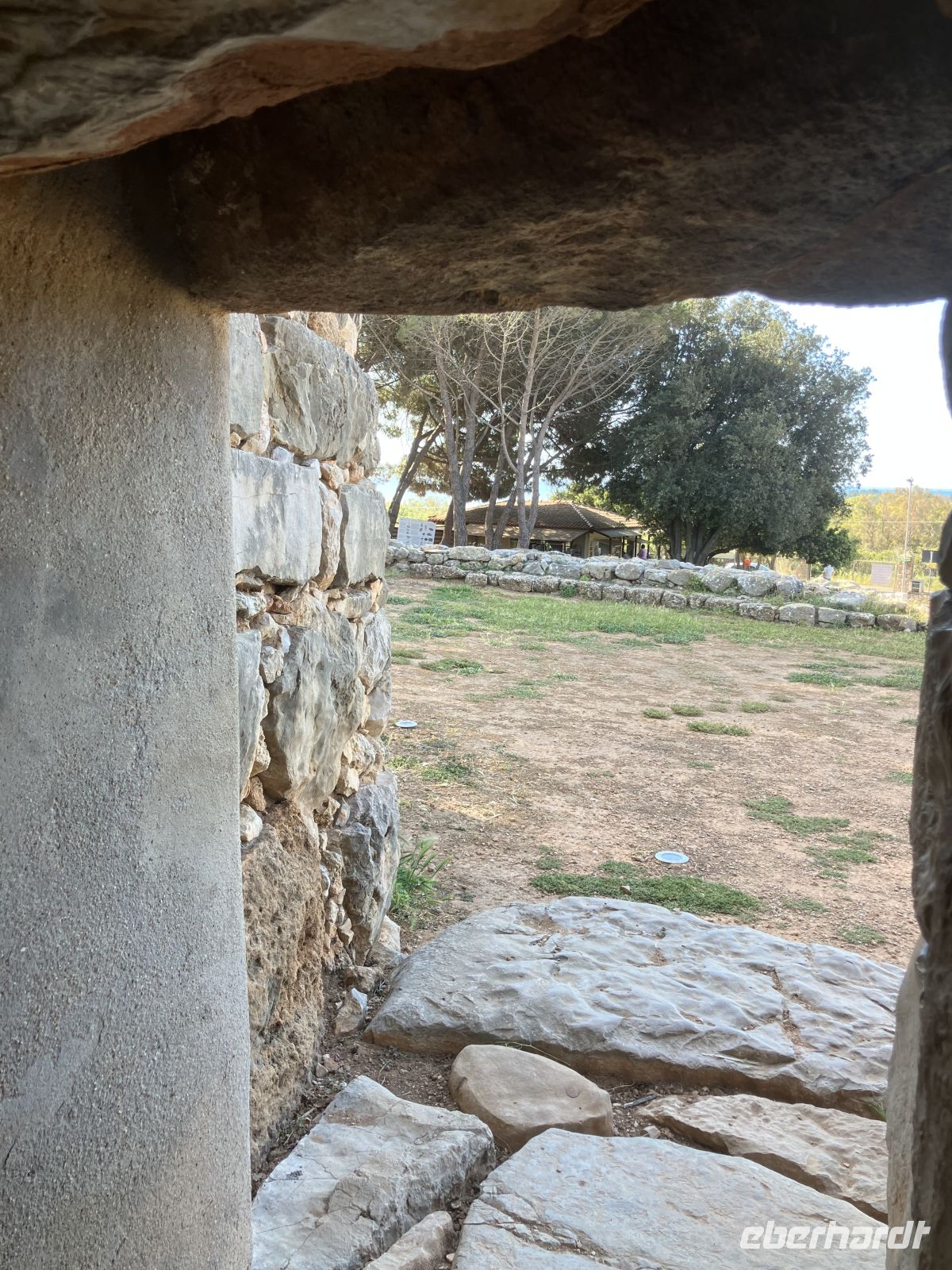 Natürlich starten wir auch heute wieder gegen 9 Uhr. Es geht nicht weit, den ersten Ausstieg erreichen wir nach wenigen Minuten. Wir besichtigen eine Nurage. Ungefähr 7.000 rätselhafte Steintürme gibt es auf Sardinien. Die Nuraghe Palmavera bei Alghero ist eine der bedeutendsten archäologischen Stätten Sardiniens. Sie ist besonders für ihren exzellenten Erhaltungszustand besichtigungswert und stammt vermutlich aus dem 12.Jh. Ursprünglich sollen hier einst fast 200 Rundhütten gestanden haben.