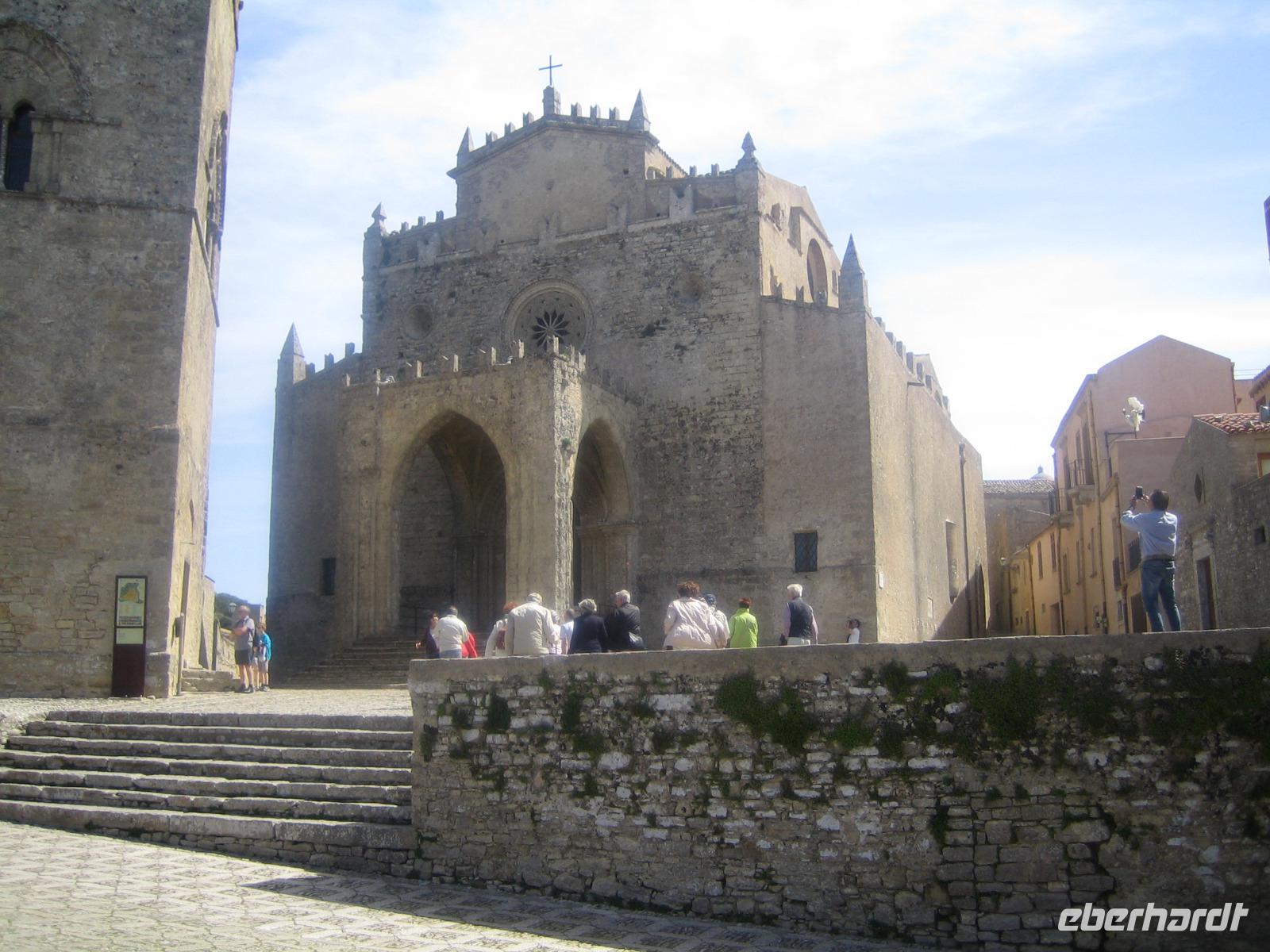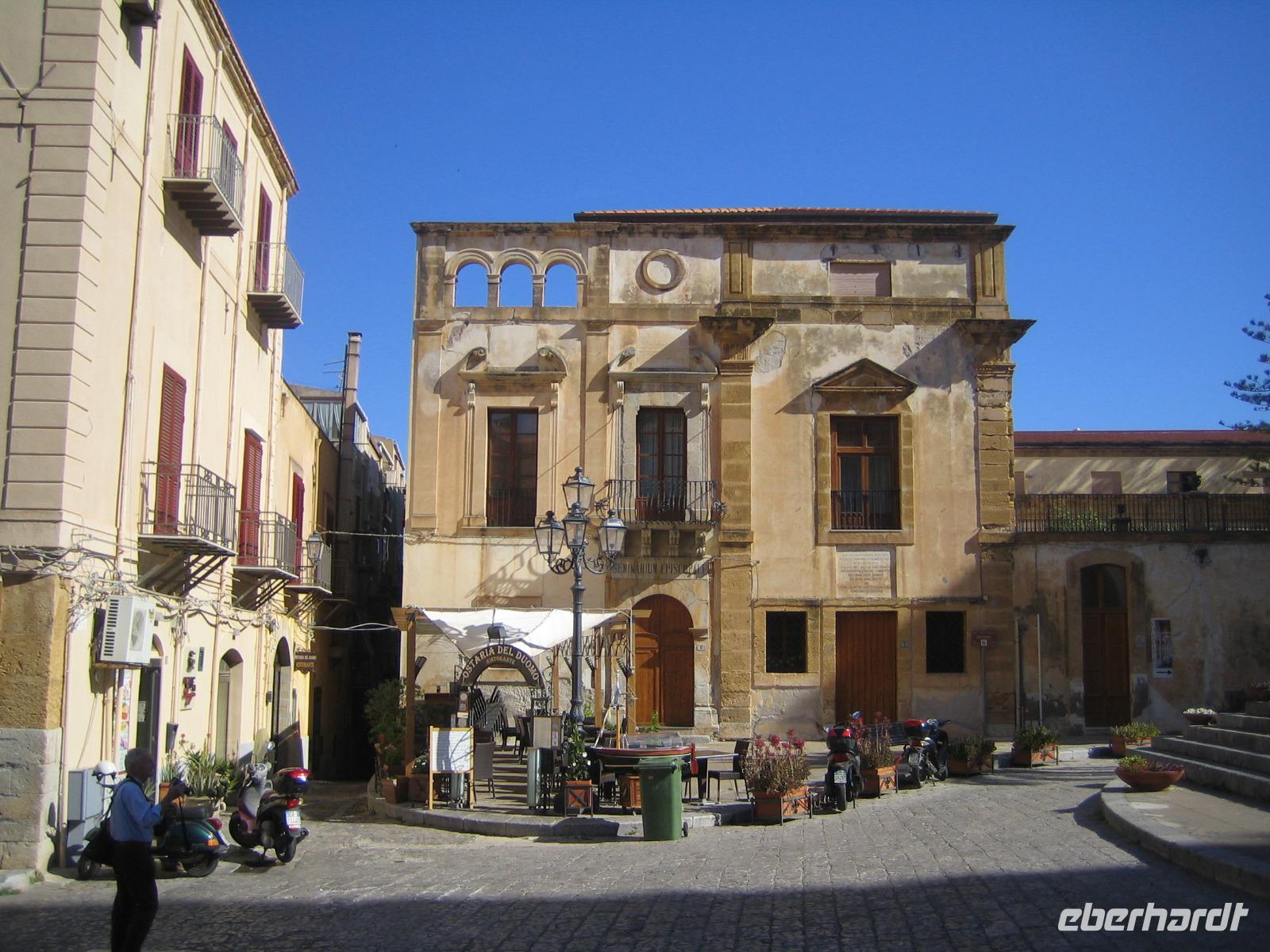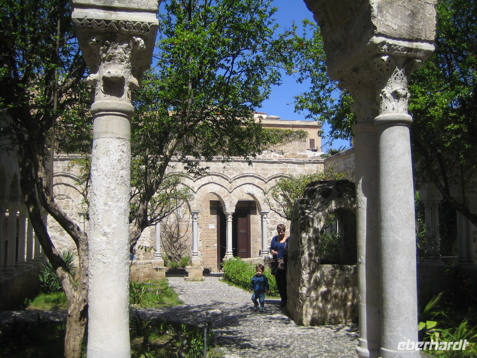 Den Vormittag verbringen wir in Cefalù, der kleinen, charmanten Stadt mit ihrem berühmten Sandstrand, ihrem mittelalterlichen Waschplatz und der Kathedrale San Salvator. Bei gutem Wetter kann man die Äolischen Inseln erblicken, heute liegen sie versunken im Dunst. Wir besichtigen die Kathedrale, die wie auch die Capella Palatina in Palermo vom Normannenkönig Roger II erbaut worden ist. Dann reisen wir weiter, in die Hauptstadt Siziliens. An der Piazza Independenza treffen wir unsere Stadtführerin Maria. Mit ihr gehen wir am Normannenpalast vorbei ein Stück durch die Altstadt. Viele Kinder und Jugendliche sind heute in Palermo unterwegs und erklären die Kulturdenkmäler ihrer Stadt. Vor über 20 Jahren startete die Aktion „Schulen adoptieren Denkmäler" und so sind wir auch bei der Besichtigung der Kirche San Giovanni degli Eremiti von Kinderstimmen umringt. Unsere Stadtführerin Maria bringt uns durch einen schönen Park mit Rekonstruktionen von Mosaiken einer Römervilla bis zum Dom von Palermo. Bei unserer Führung durch das wundervolle Gebäude erklärt uns Maria auch die Königsgräber von Roger II und dem Federico Duo, wie der Stauferkönig Friedrich II. in Italien heißt. Dann fahren wir weiter, an der Porta Nuova vorbei, nach Monreale. Über fast 100 Stufen gelangen wir hinauf zum Domplatz. Dort verweilen wir im Café „Mirto" bei einen Imbiss aus köstlichen Arancini, einer echten Spezialität von Palermo. Frisch gestärkt besichtigen wir mit Maria zusammen den Dom von Monreale und den kunstvollen Kreuzgang des einstigen Benediktinerklosters. Nach einem Blick vom Aussichtspunkt hinunter auf Palermo gehen wir wieder zu unserem Reisebus und Sebastiano bringt uns zu unserem nächsten Domizil, dem Hotel Vittoria in Trapani an der Westküste Siziliens.