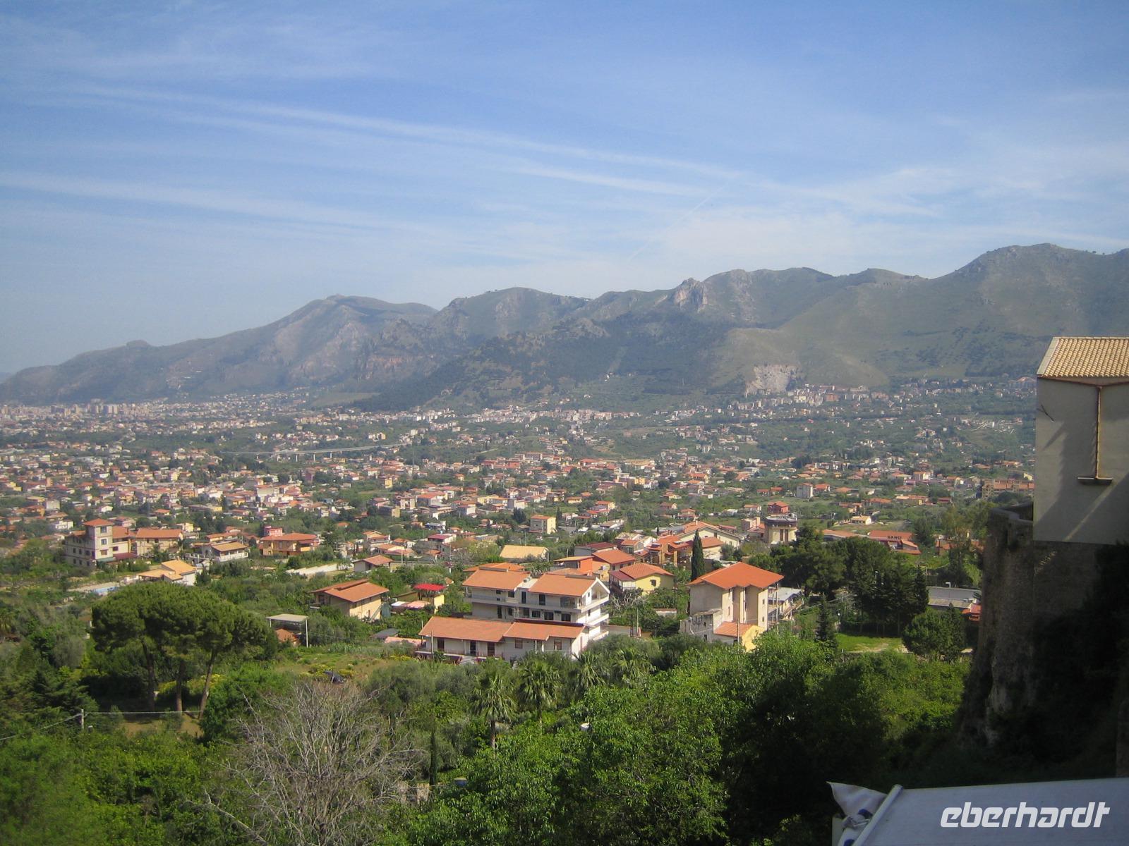 Am Nachmittag fliegen sechzehn Gäste zusammen mit ihrer Reiseleiterin von Berlin Tegel nach Catania. Wir landen bei strahlend blauem Himmel und 21 Grad auf der größten Insel im Mittelmeer. Dort empfängt uns unser Reisebusfahrer Sebastiano und bringt uns quer durch Sizilien nach Santa Flavia ans Tyrrhenischen Meer. Am Abend erreichen wir unser Hotel Domina Coral Bay Zagarella, nur 20 Kilometer von Palermo entfernt. Wir beziehen unsere Zimmer und sind gespannt auf unsere Reise durch die fünf süditalienische Regionen Sizilien, Kalabrien, Basilicata, Apulien und Kampanien. Besichtigungen von Kulturstätten aus tausenden von Jahren liegen vor uns. Wir sind neugierig, was wir dabei über die Zeit des Stauferkönigs Friedrich II. erfahren werden. Den streng katholischen Denkverboten seiner Zeit setzte er die Förderung der Künste und Wissenschaften und eine umfassende Religionsfreiheit entgegen. Ein kleiner Moment nur auf dem Zeitstrahl der langen Geschichte Süditaliens, aber ein Moment, den die Italiener bis heute sehr schätzen.