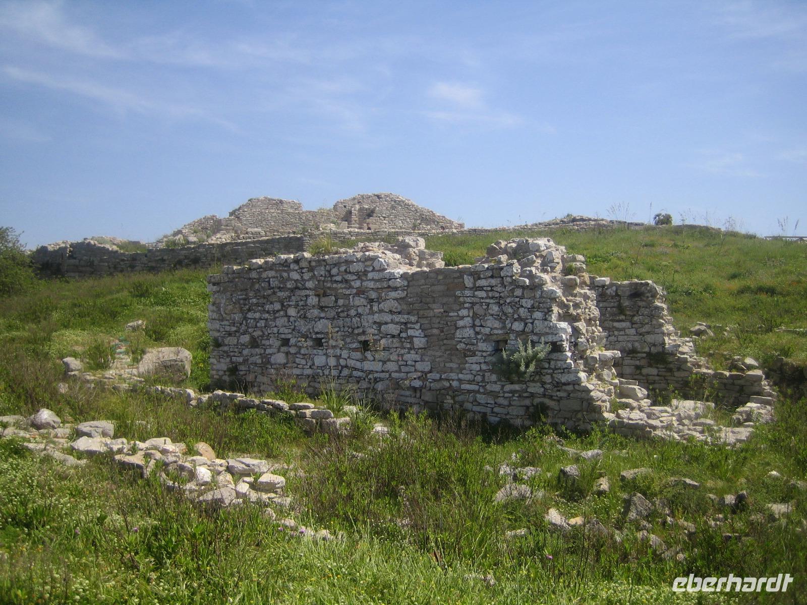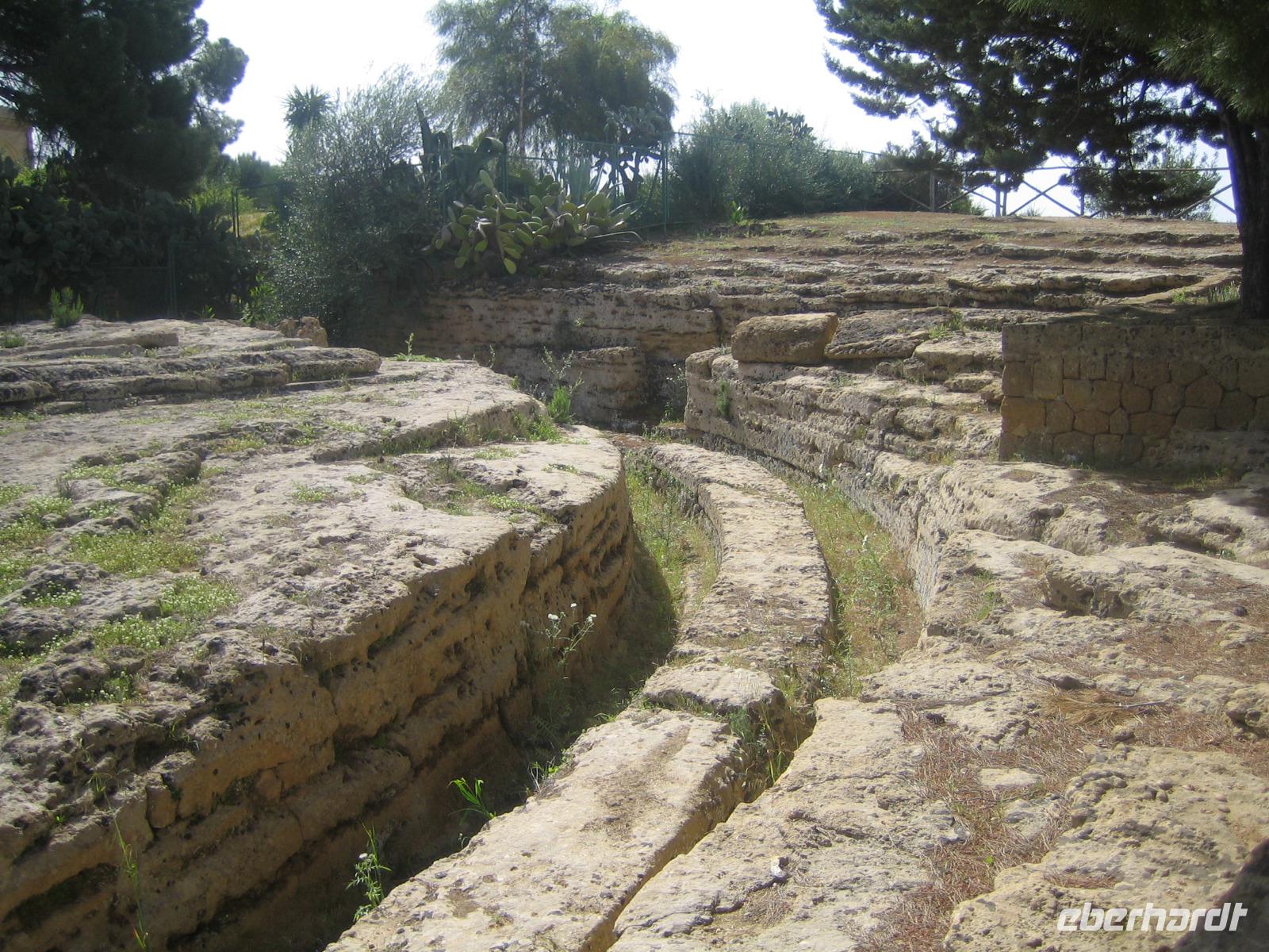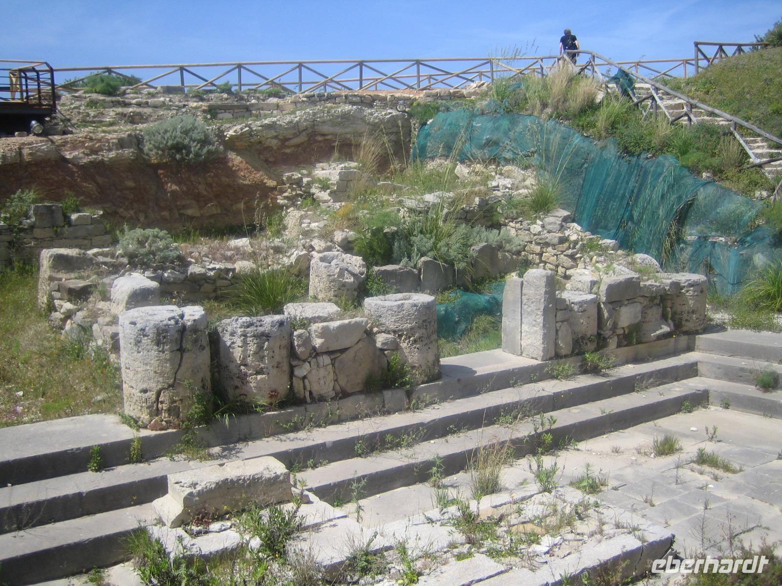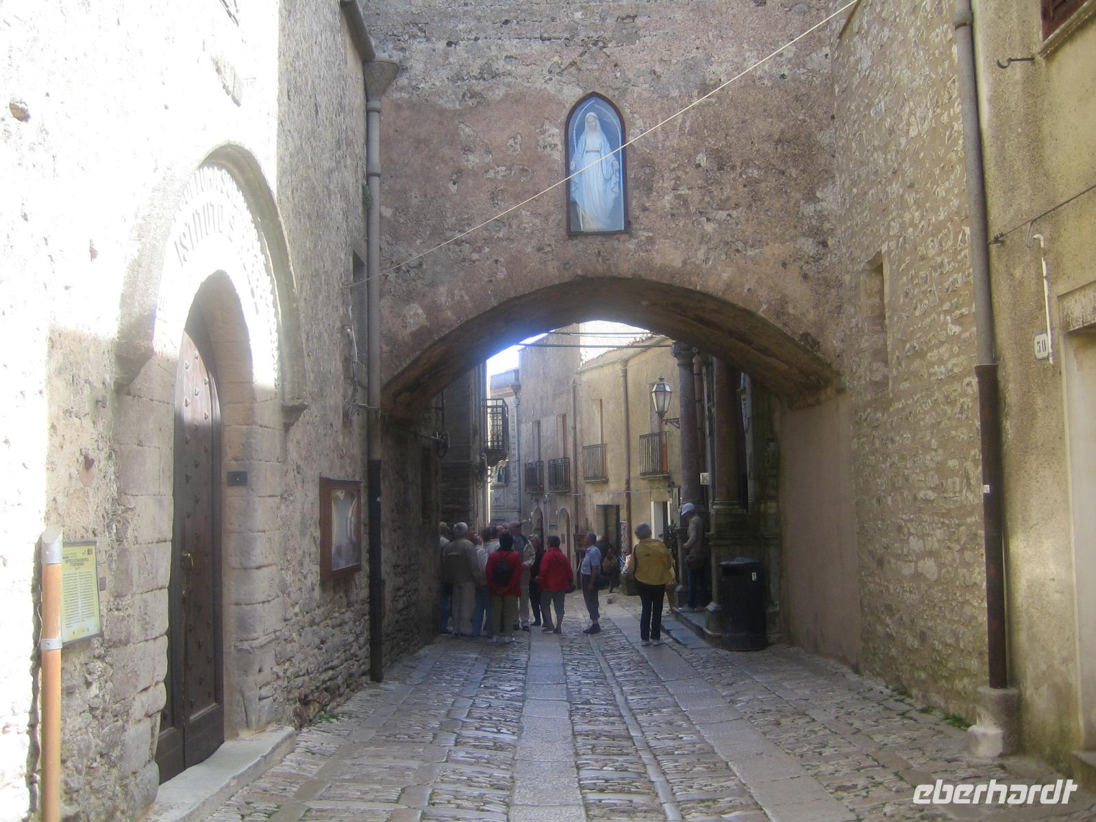 Kaum sind unsere Koffer wieder im Reisebus verstaut, fahren wir schon weiter, um die alte Stadt Erice besichtigen, die ganz oben auf einem Berg liegt. Unsere örtliche Reiseleiterin ist heute Regina und sie erzählt uns vom Land der Elymer, die Erice 1 000 Jahre vor Christus gründeten. Der Berg war ihnen heilig, weil er unzählige Süßwasserquellen birgt. Bis heute verehrt man hier die Göttin Aphrodite in einem Fruchtbarkeitskult. Bei einem Rundgang durch die verwinkelten Gassen der in Dreiecksform aufgebauten Stadt kommen wir schließlich zum Kastell, das die Normannen auf den Grundmauern des alten Aphrodite-Tempels bauen ließen. Über den Hauptplatz, der erst im 19. Jahrhundert geschaffen wurde, gelangen wir zur Marzipan- und Mandelbäckerei „Maria Grammatico". Wir sind eingeladen, den Backraum zu besichtigen und erhalten Kostproben der himmlisch süßen Spezialitäten. Maria Grammatico war 1963 die erste Frau Siziliens, die allein stehend einen Laden eröffnete. Dass das überhaupt nicht einfach war, beschreibt das Buch „Bittere Mandeln", das man in ihrem Geschäft kaufen kann. Sie selbst ist auch da, führt ihren Laden mit frischem Mut noch immer. Am späten Vormittag besichtigen wir die Mutterkirche von Erice. Dann fahren wir weiter zu den Salinen, den Salzfeldern am Meeresufer. Bereits die Phönizier schätzten das weiße Gold sehr, sie gewannen es aus dem Salzschaum am sehr flachen Ufer. Als die Araber Sizilien besiedelten, brachten sie aus Afrikas Wüstenoasen die Windenergie mit. Sie verbanden ihre Erfahrungen mit einer Erfindungen des Sizilianers Archimedes. Er hatte, wie der Name schon besagt, die archimedische Schraube entwickelt, doch das antike Wissen war lange verschüttet, wurde nun neu belebt. Nach einem Fotostopp an einem Windturm geht unsere Reise weiter, zur archäologischen Zone von Segesta. Sie war die Hauptstadt der Elymer und hier steht noch immer ihr 2 500 Jahre alter klassischer griechisch-dorischer Tempel, überraschender Weise in einer Stadt, die selbst niemals griechisch war. Regina erklärt uns sehr anschaulich die Besonderheiten dieser Stätte und auch die Ausgrabungen und Funde auf einem der Wohnhügel von Segesta. Dann sagen wir ihr Adieu, verlassen das Elymerland und reisen weiter, zum Hotel Baia di Ulisse in Agrigento im Süden der Insel.