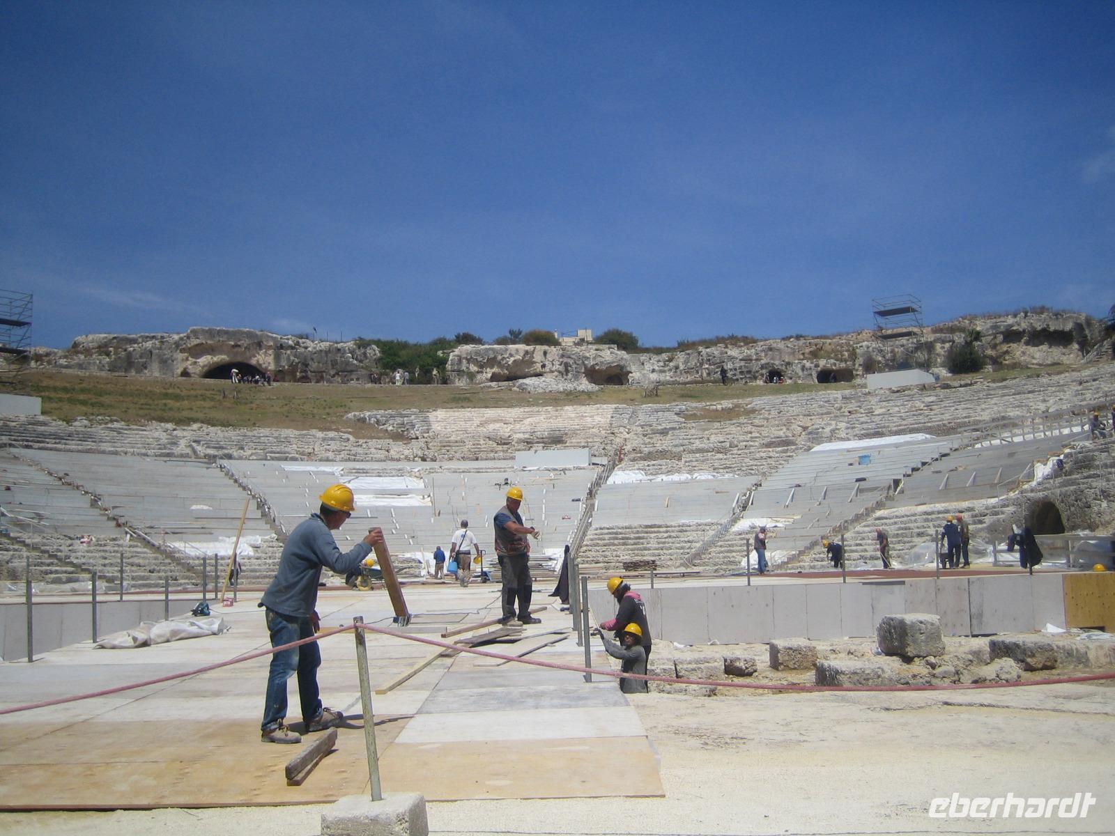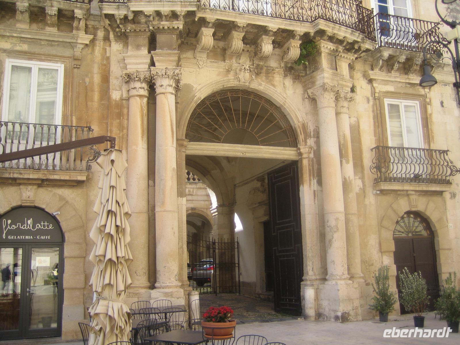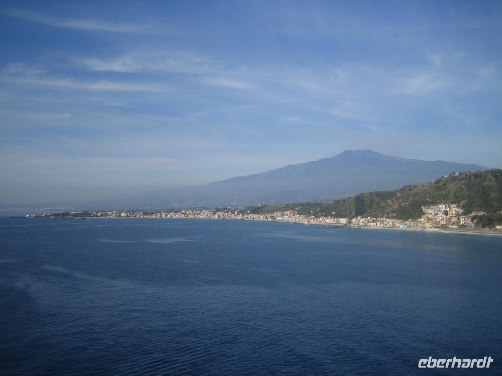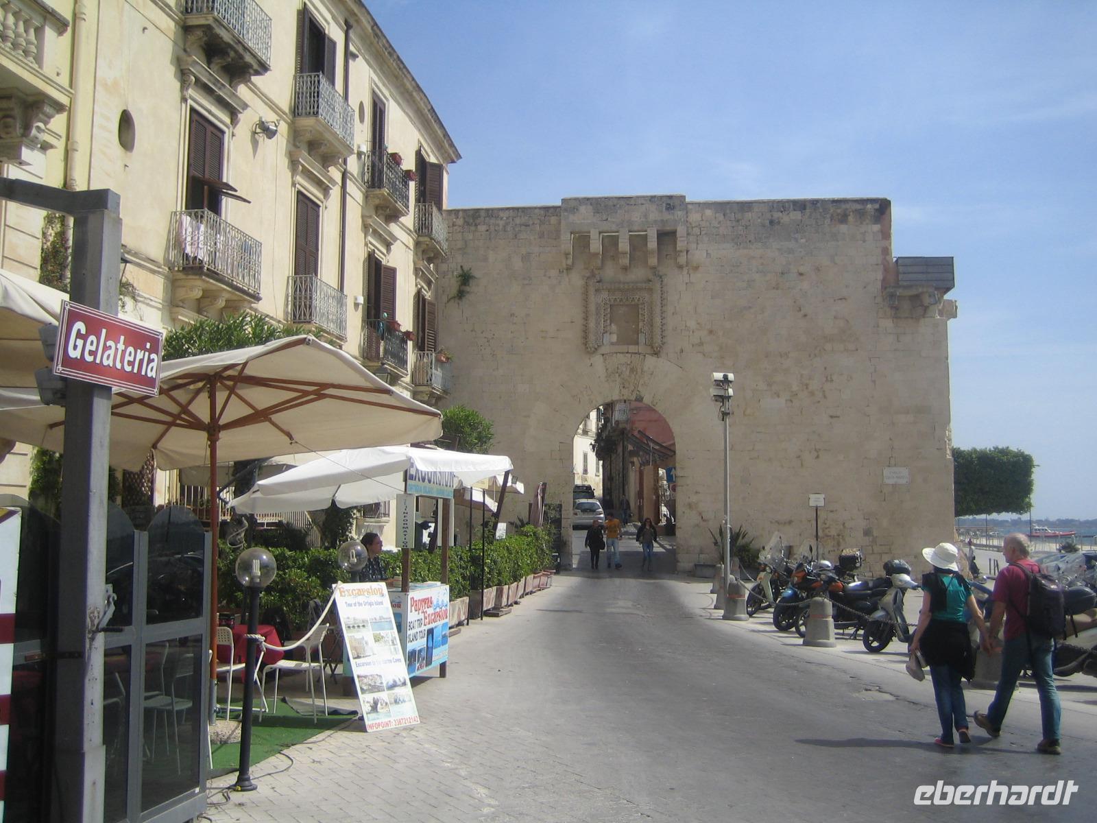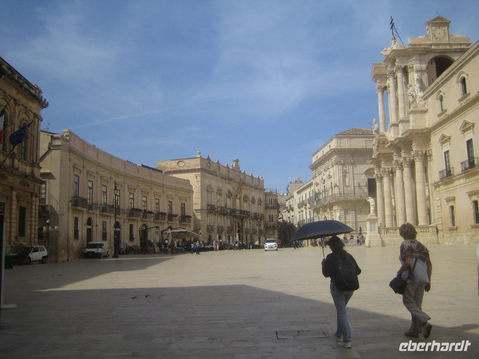 Von Noto fahren wir weiter nach Syrakus, besichtigen dort zusammen mit Marialina die archäologische Zone der Nekropolis mit dem griechischen Theater, der künstlichen Grotte „Ohr des Dyonisos", dem Hieron-Tempel und dem römischen Amphitheater. Am Nachmittag unternehmen wir noch einen Rundgang durch die Altstadt Ortigia, gehen von der Arthusa-Quelle zur Kathedrale mit ihrem Athene-Tempel und weiter zum Tempel des Apollo. Nach unserem Abschied von Marialina fahren wir die Ostküste Siziliens hinauf nach Giardini Naxos, der ersten griechischen Kolonie auf Sizilien. Dort wohnen wir für die nächsten zwei Nächte im Hotel Nike am Ionischen Meer.