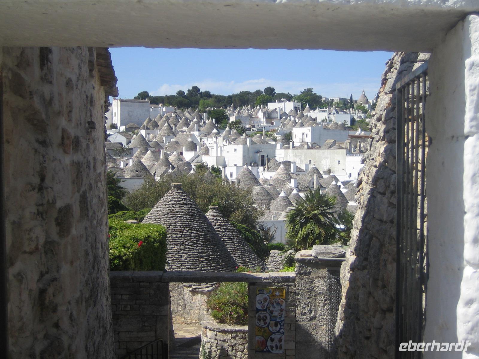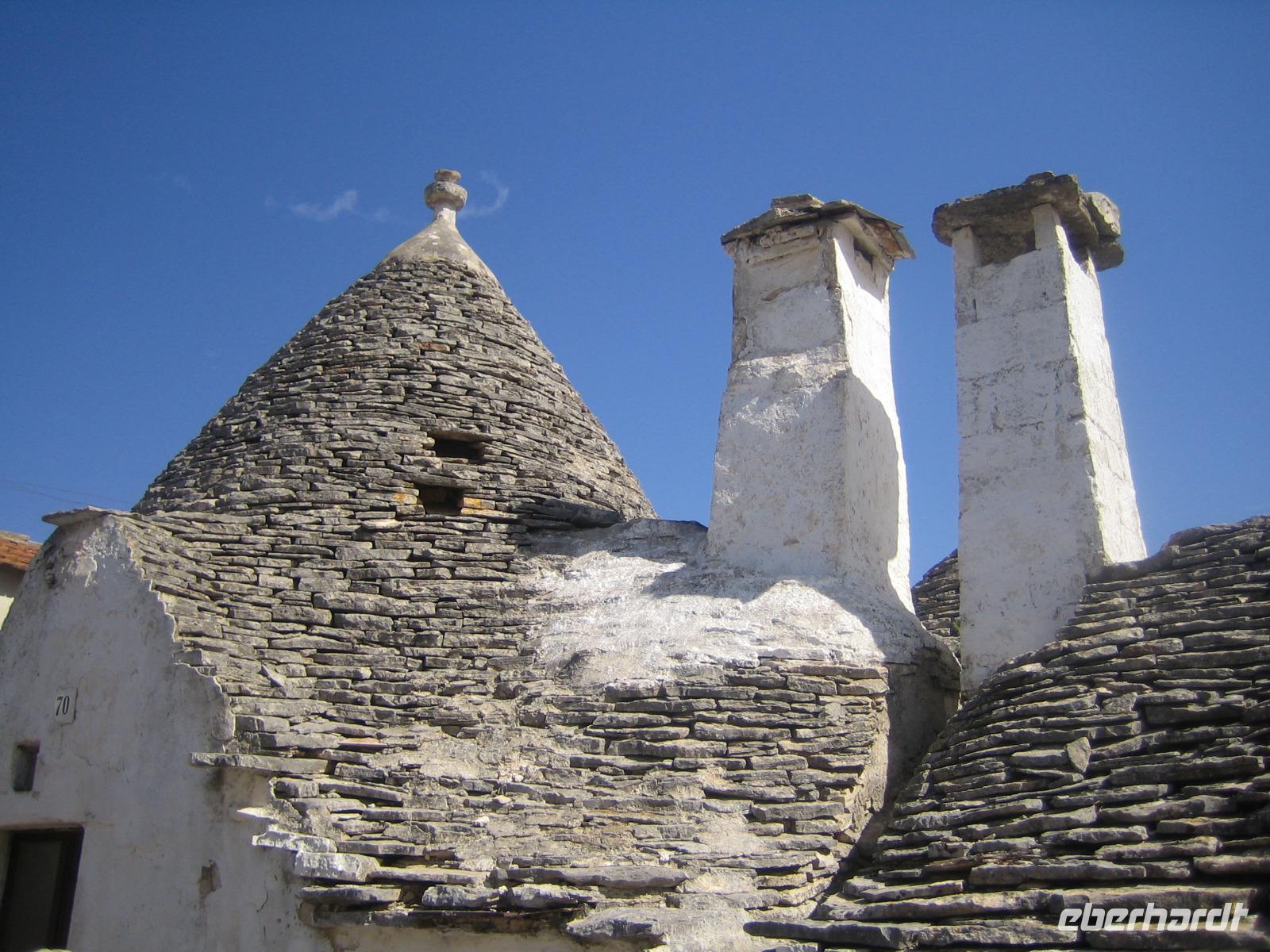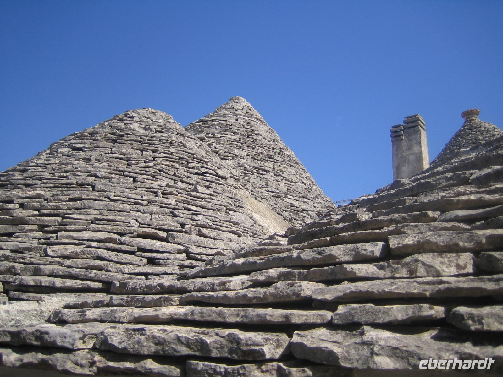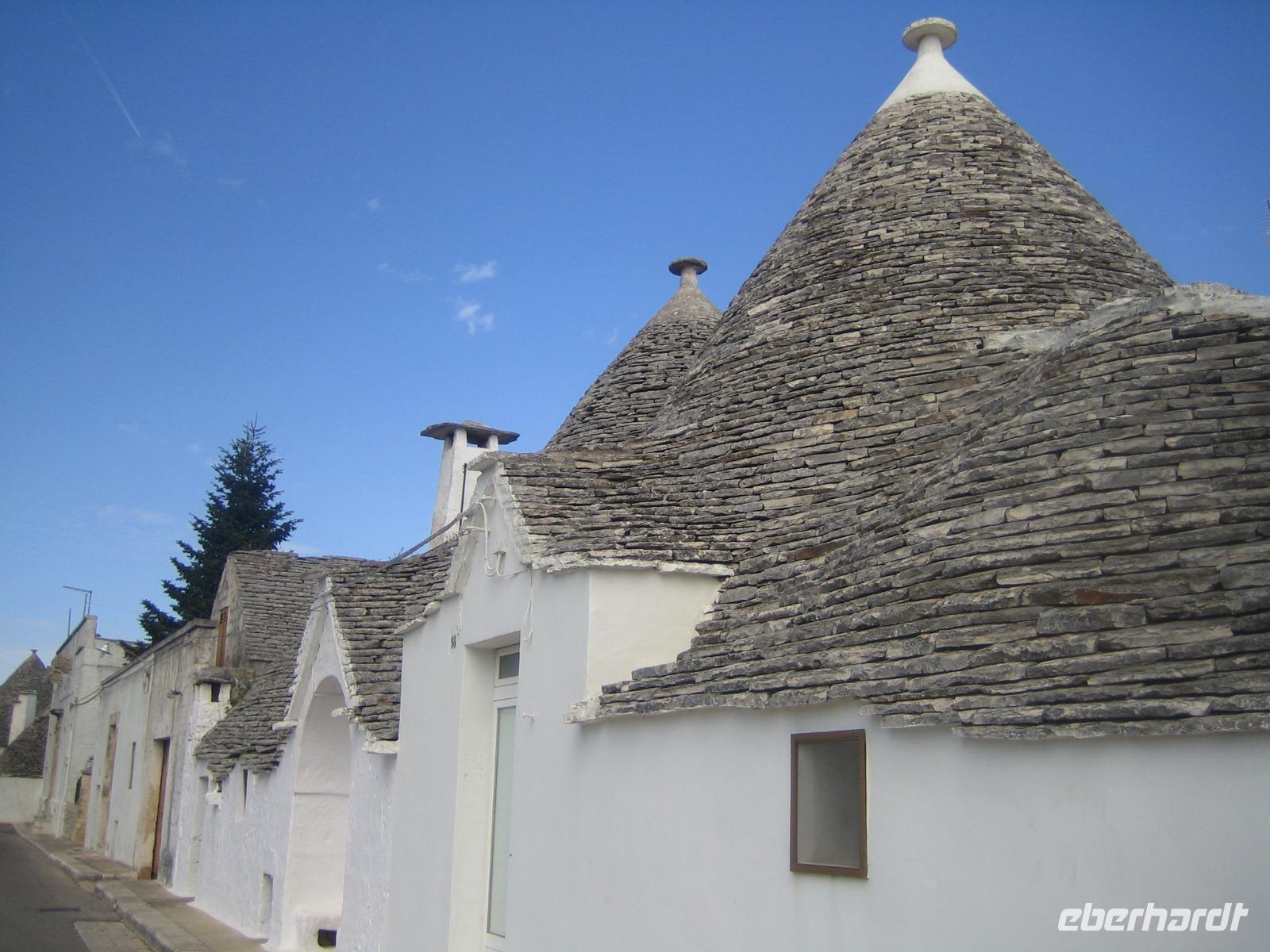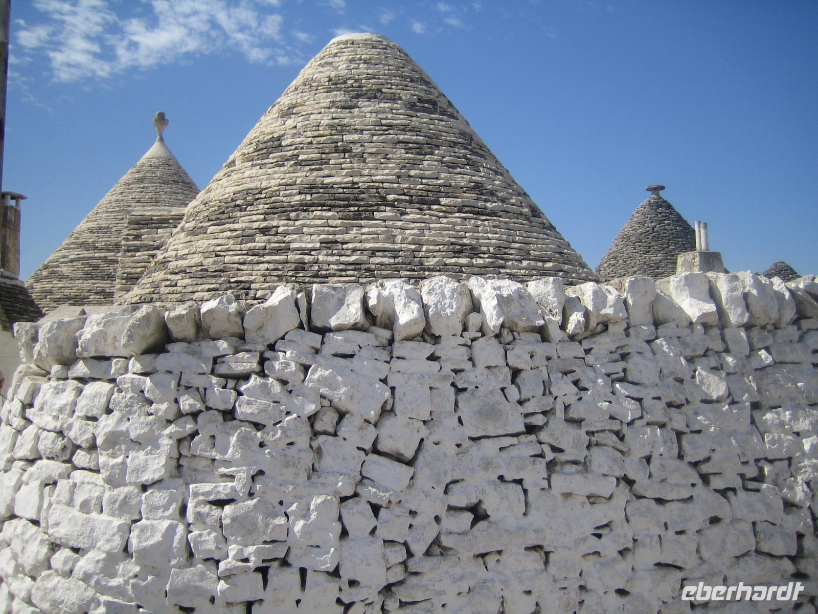 Ein Ort mit ganz besonderen Häusern ist Alberobello, unser nächstes Ziel. Die heute seltene Bauweise kündigt sich schon in den Feldern vor der Stadt an. Die vereinzelt im Land auftauchenden kleinen Häuser sind rund gebaut und haben spitze Dächer aus unverputzten flachen Steinen. Es ist eine uralte Bauweise von Hirtenvölkern, die es an vielen Orten gab. Wieso aber besteht noch heute eine ganze Stadt aus ihnen, den Trulli? Die Lösung ist so überraschend wie alltäglich: Ein Fürst wollte Steuern für Baugenehmigungen sparen und befahl seinen Untergebenen, die Häuser so zu bauen, dass man ihre Dächer sofort zerstören konnte, wenn die Steueraufsicht nahte. Ihre Einwohner kämpften lange dafür, als bewohnte Stadt anerkannt zu werden und als es ihnen endlich gelang, war die Neuzeit erreicht. Die Trullistadt blieb, wie sie war, aber sie durfte nun nicht mehr zerstört werden. Marilena, die uns die nächsten zwei Tage Apulien zeigen wird, nimmt uns vor den Toren der Neustadt in Empfang. Mit ihr gehen wir durch die Stadt, kommen durch schmale Gassen zu einem Trullo, das wir auch von Innen besichtigen dürfen. Vom Aussichtspunkt am Hauptplatz wandern wir hinauf bis zur Kirche, die ebenfalls im Trullo-Stil gebaut ist. Wir besichtigen auch sie, dann fahren wir weiter nach Bari, der Hauptstadt Apuliens. An der Piazza Ferrarese starten wir unsern Stadtrundgang, über die Piazza Mercantile zur Basilika des heiligen Nicolaus. Sie ist noch immer eine Wallfahrtskirche, bewahrt in ihrer Schatzkammer der Geschenke der Pilger und unterm Altar die Gebeine des heiligen Nicolaus. Im normannischen, byzantinischen und korinthischen Stil erbaut gilt sie als Prototyp der romanischen Architektur, hat wundervolle Elefantenfenster und ein Löwenportal. Von dort gehen wir zum Stauferkastell, in dem auch Franz von Assisi bei Federico Duo zu Gast war. Am Parlament und dem Finanzpalast vorbei gelangen wir wieder zum Reisebus und fahren zum Hotel Riva del Sole in Giovinazzo. Für das Abendessen treffen wir uns heute in einem tollen Terrassenspeisesaal, direkt am Ufer der Adria.