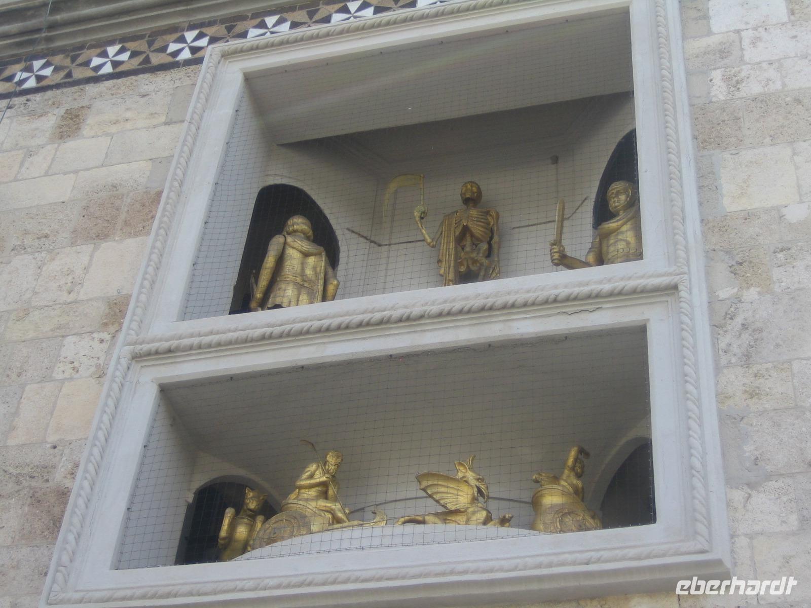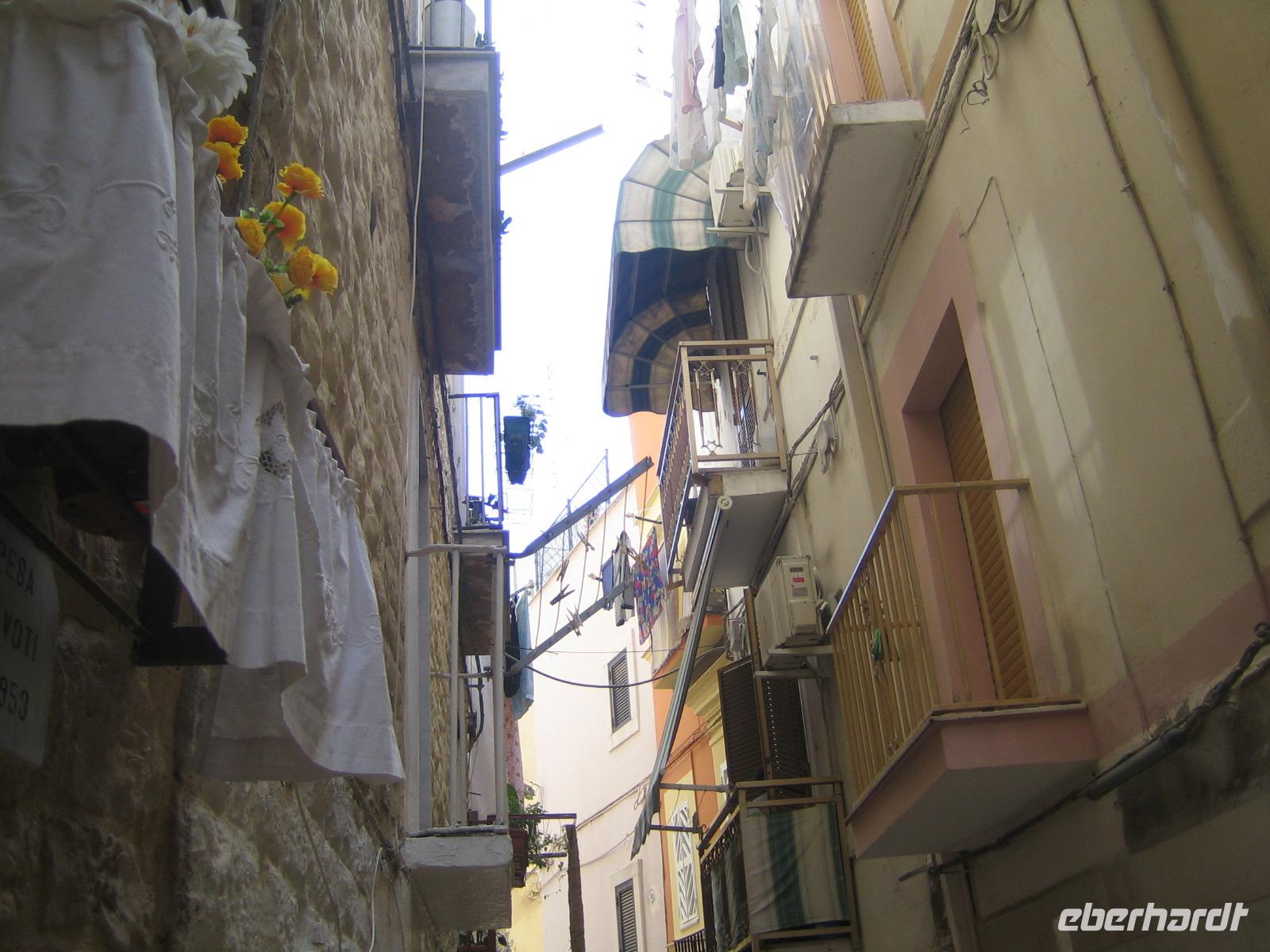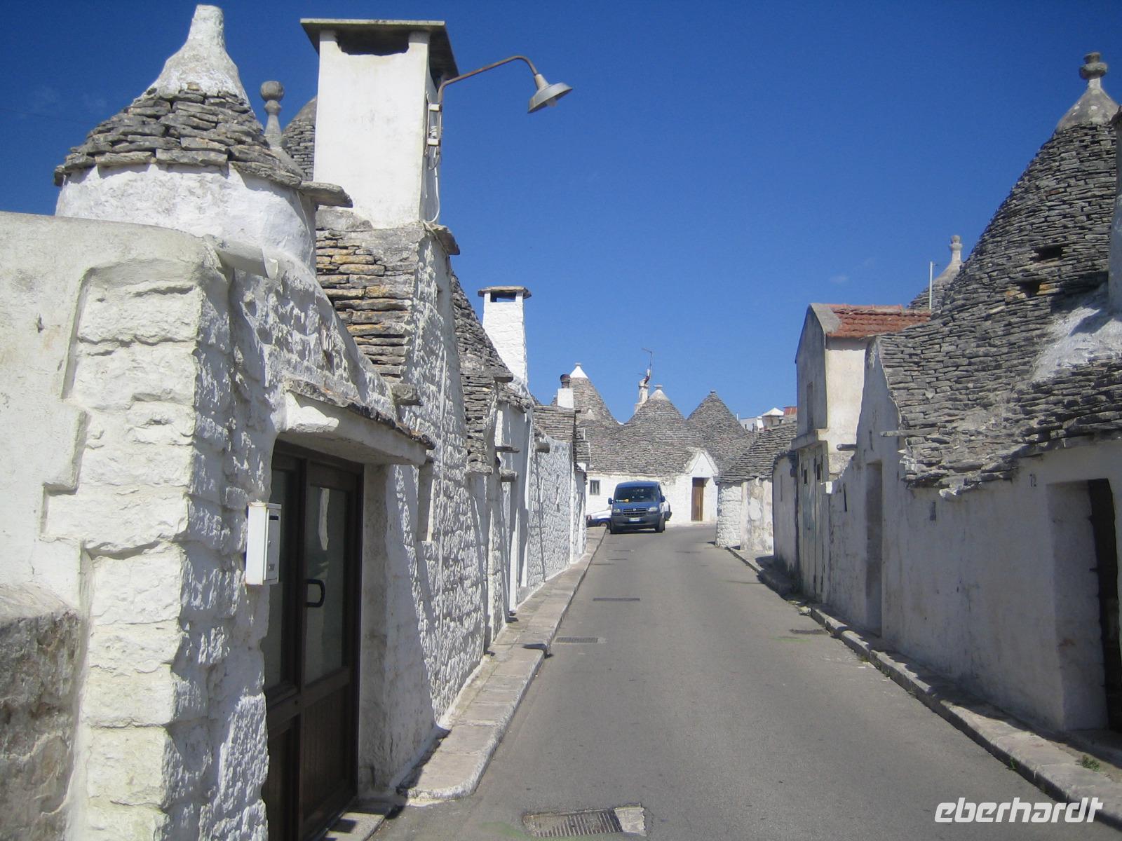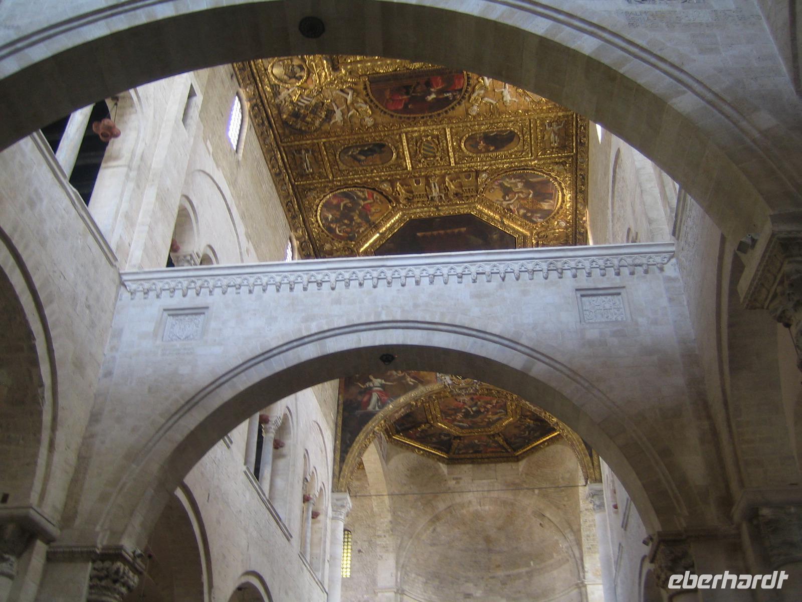 Ein Ort mit ganz besonderen Häusern ist Alberobello, unser nächstes Ziel. Die heute seltene Bauweise kündigt sich schon in den Feldern vor der Stadt an. Die vereinzelt im Land auftauchenden kleinen Häuser sind rund gebaut und haben spitze Dächer aus unverputzten flachen Steinen. Es ist eine uralte Bauweise von Hirtenvölkern, die es an vielen Orten gab. Wieso aber besteht noch heute eine ganze Stadt aus ihnen, den Trulli? Die Lösung ist so überraschend wie alltäglich: Ein Fürst wollte Steuern für Baugenehmigungen sparen und befahl seinen Untergebenen, die Häuser so zu bauen, dass man ihre Dächer sofort zerstören konnte, wenn die Steueraufsicht nahte. Ihre Einwohner kämpften lange dafür, als bewohnte Stadt anerkannt zu werden und als es ihnen endlich gelang, war die Neuzeit erreicht. Die Trullistadt blieb, wie sie war, aber sie durfte nun nicht mehr zerstört werden. Marilena, die uns die nächsten zwei Tage Apulien zeigen wird, nimmt uns vor den Toren der Neustadt in Empfang. Mit ihr gehen wir durch die Stadt, kommen durch schmale Gassen zu einem Trullo, das wir auch von Innen besichtigen dürfen. Vom Aussichtspunkt am Hauptplatz wandern wir hinauf bis zur Kirche, die ebenfalls im Trullo-Stil gebaut ist. Wir besichtigen auch sie, dann fahren wir weiter nach Bari, der Hauptstadt Apuliens. An der Piazza Ferrarese starten wir unsern Stadtrundgang, über die Piazza Mercantile zur Basilika des heiligen Nicolaus. Sie ist noch immer eine Wallfahrtskirche, bewahrt in ihrer Schatzkammer der Geschenke der Pilger und unterm Altar die Gebeine des heiligen Nicolaus. Im normannischen, byzantinischen und korinthischen Stil erbaut gilt sie als Prototyp der romanischen Architektur, hat wundervolle Elefantenfenster und ein Löwenportal. Von dort gehen wir zum Stauferkastell, in dem auch Franz von Assisi bei Federico Duo zu Gast war. Am Parlament und dem Finanzpalast vorbei gelangen wir wieder zum Reisebus und fahren zum Hotel Riva del Sole in Giovinazzo. Für das Abendessen treffen wir uns heute in einem tollen Terrassenspeisesaal, direkt am Ufer der Adria.