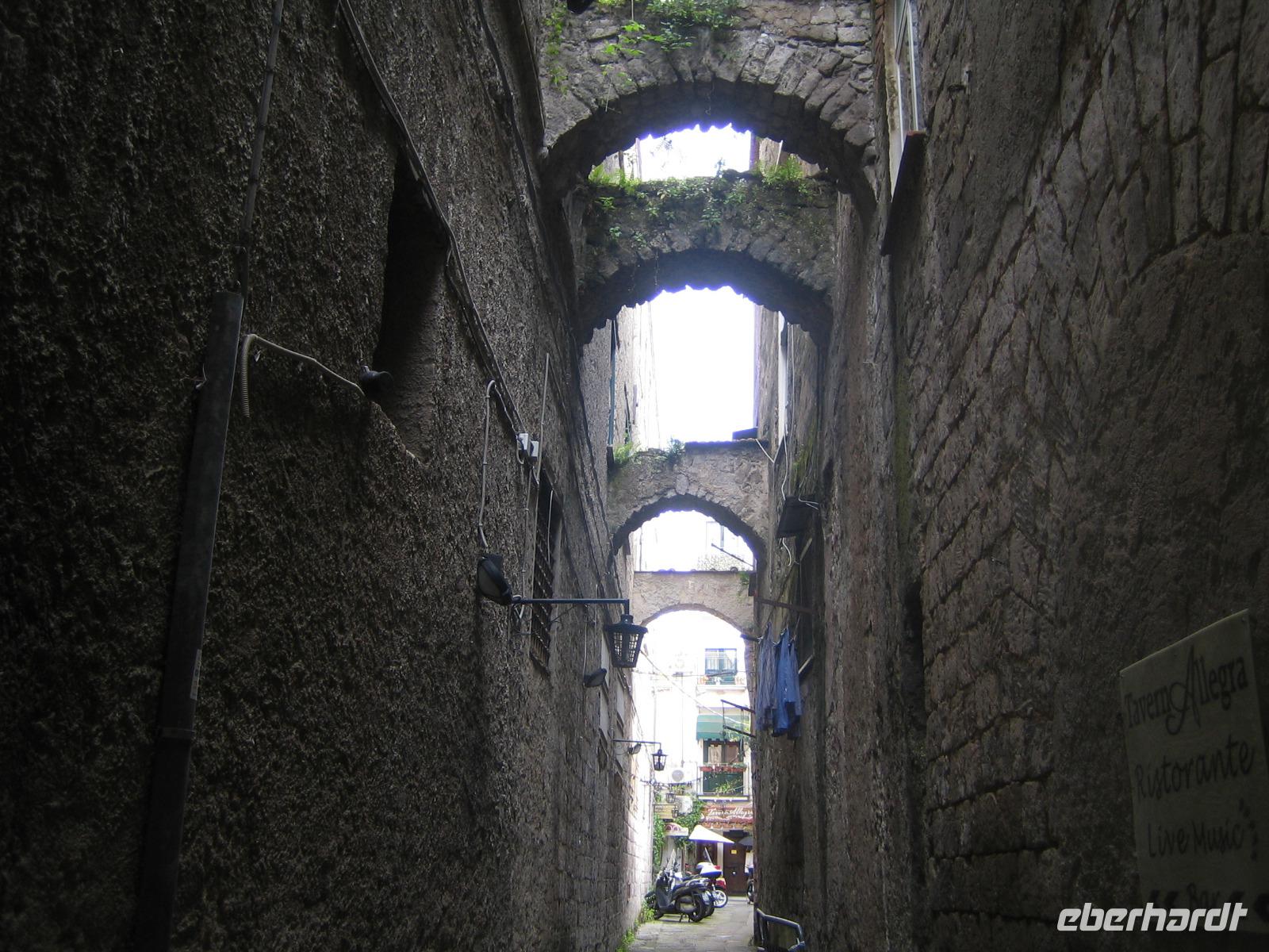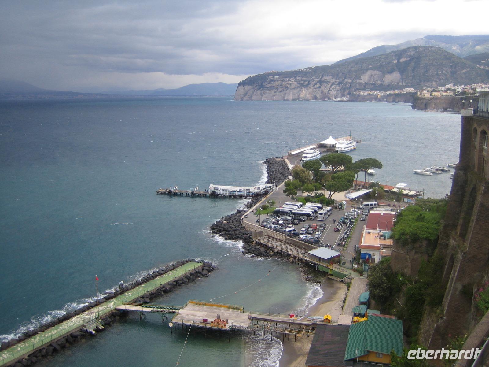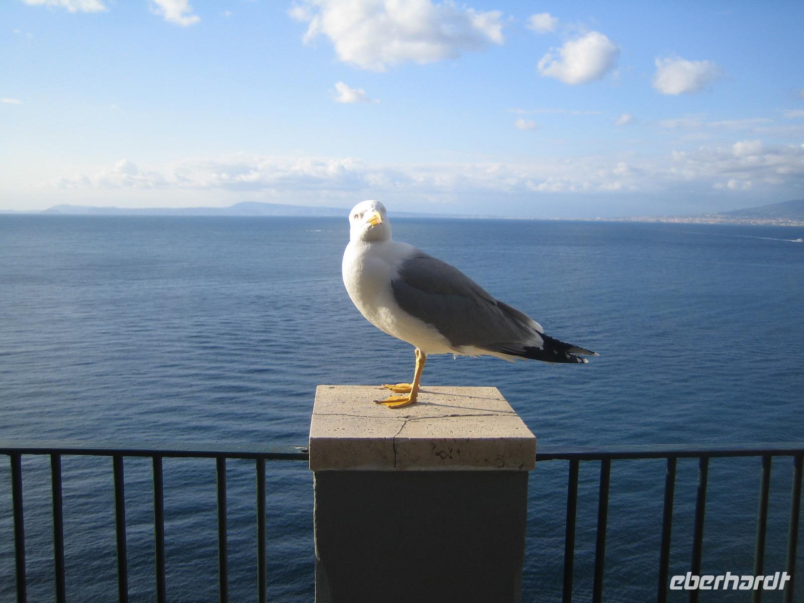 Heute geht unsere Reise durchs Königreich Sizilien - Apulien - Sorrent zu Ende. Zum Glück haben wir morgens noch eine Stunde Zeit, einen letzten kleinen Spaziergang zu unternehmen durch die bezaubernde Stadt auf der Halbinsel zwischen dem Golf von Neapel und dem Golf von Salerno. Dann steigen wir in unseren Reisebus. Ein letztes Mal fährt uns Sebastiano ein Stück durch Süditalien und schließlich erreichen wir den Flughafen von Neapel. Pünktlich startet unser Flugzeug nach Berlin Tegel. Wir fliegen über Italien und die Adria immer weiter nach Norden hinauf, durch Wolkenfelder und Sonnenschein, bis wir auf einem nasskalten Flughafen in Berlin aussteigen und spätestens an den 9° Wärme erkennen, dass wir wieder zu Hause sind. Viele von uns sagen einander bereits am Flughafen Adieu. Andere fahren zusammen mit dem Transferauto nach Süden. Aber alle von uns haben ganz gewiss eine Vielzahl von Eindrücken süditalienischer Geschichte und Lebensart in ihrem Reisegepäck, die wir in unseren Alltag mitnehmen werden.