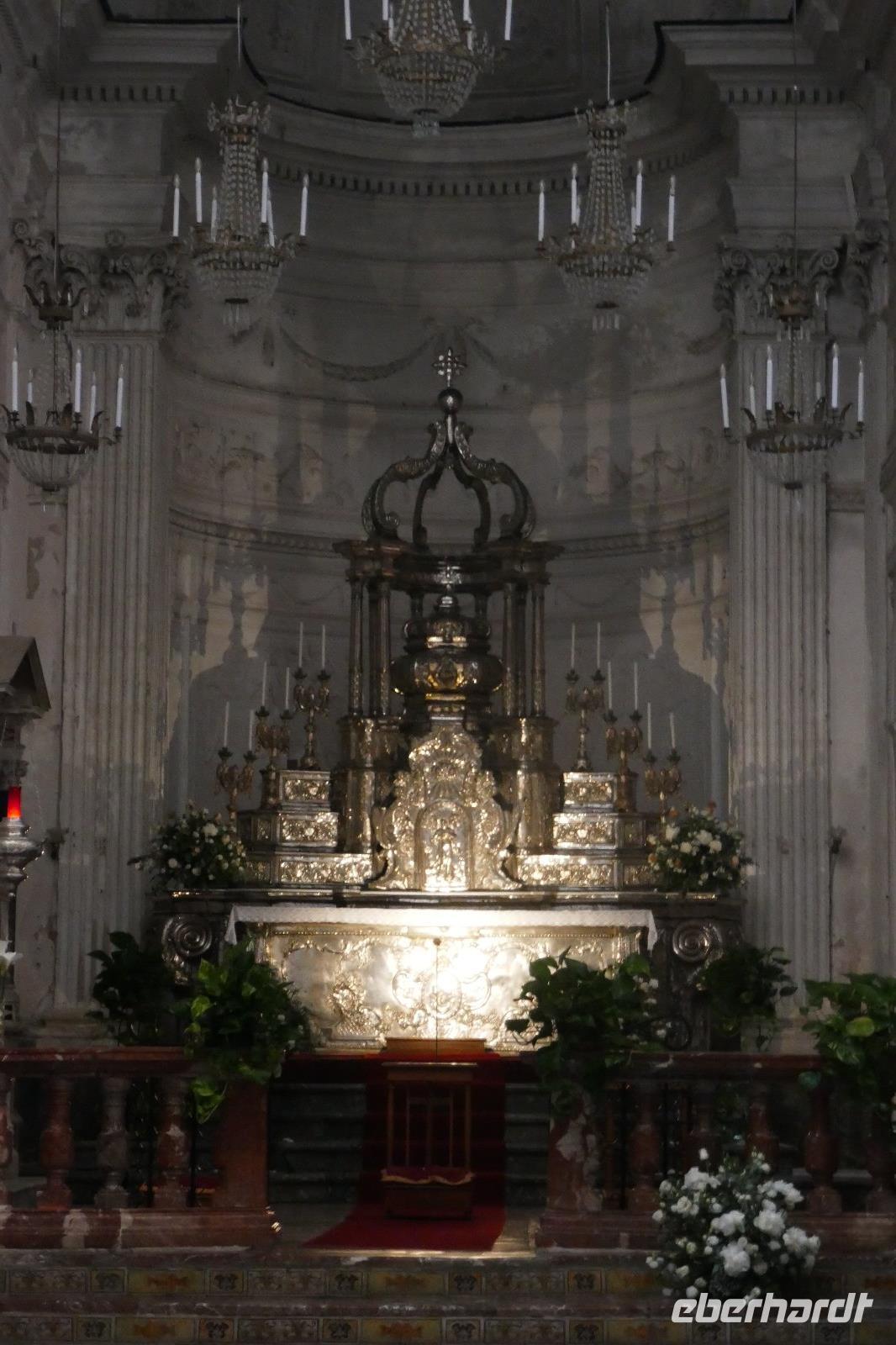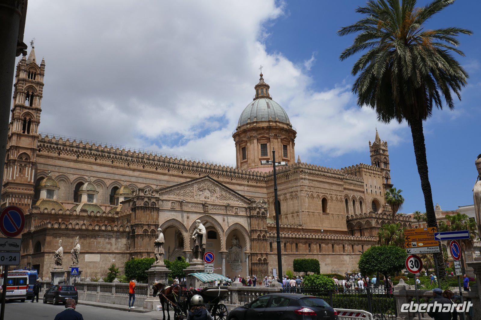 Keine Ausgrabungsstätten sondern die Stadt pur erleben stand heute auf dem Programm. Den Anfang machten wir mit Monreale. Über 84 Stufen erreichten wir den Hauptplatz. Nun ging es zur Kathedrale, ein mächtiges Bauwerk an dem man den normannischen Einschlag aber auch der islamische Baustil noch erkennen kann. Im Rahmen der Besichtigung des Doms kamen wir natürlich auch an das Grab aus weißem Marmor, in dem Wilhelm II von Sizilien begraben ist. So kehrten wir Monreale den Rücken und es ging, wie schon angekündigt, nach Palermo, der Hauptstadt Siziliens. Bei einer Stadtführung sahen wir die wichtigsten Schätze der Stadt. Ob Dom, Palazzo Reale Normannenpalast mit Cappella Palatina oder Barockecken und Rathaus um nur einige zu nennen. Natürlich blieb auch Zeit für eine Mittagspause, die viele in den kleinen Lokalen in den engen Gassen nutzten. Da war es schon hilfreich, dass der Reiseleiter einige Tipps gab. Am Ende eines erlebnisreichen Tages ging es dann wieder zurück zum Hotel.