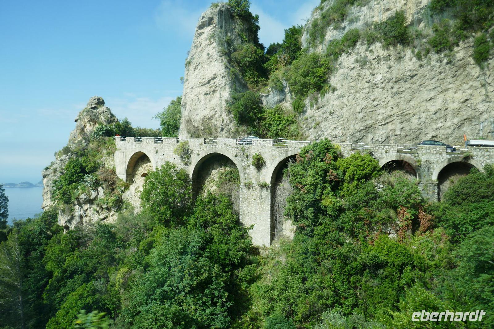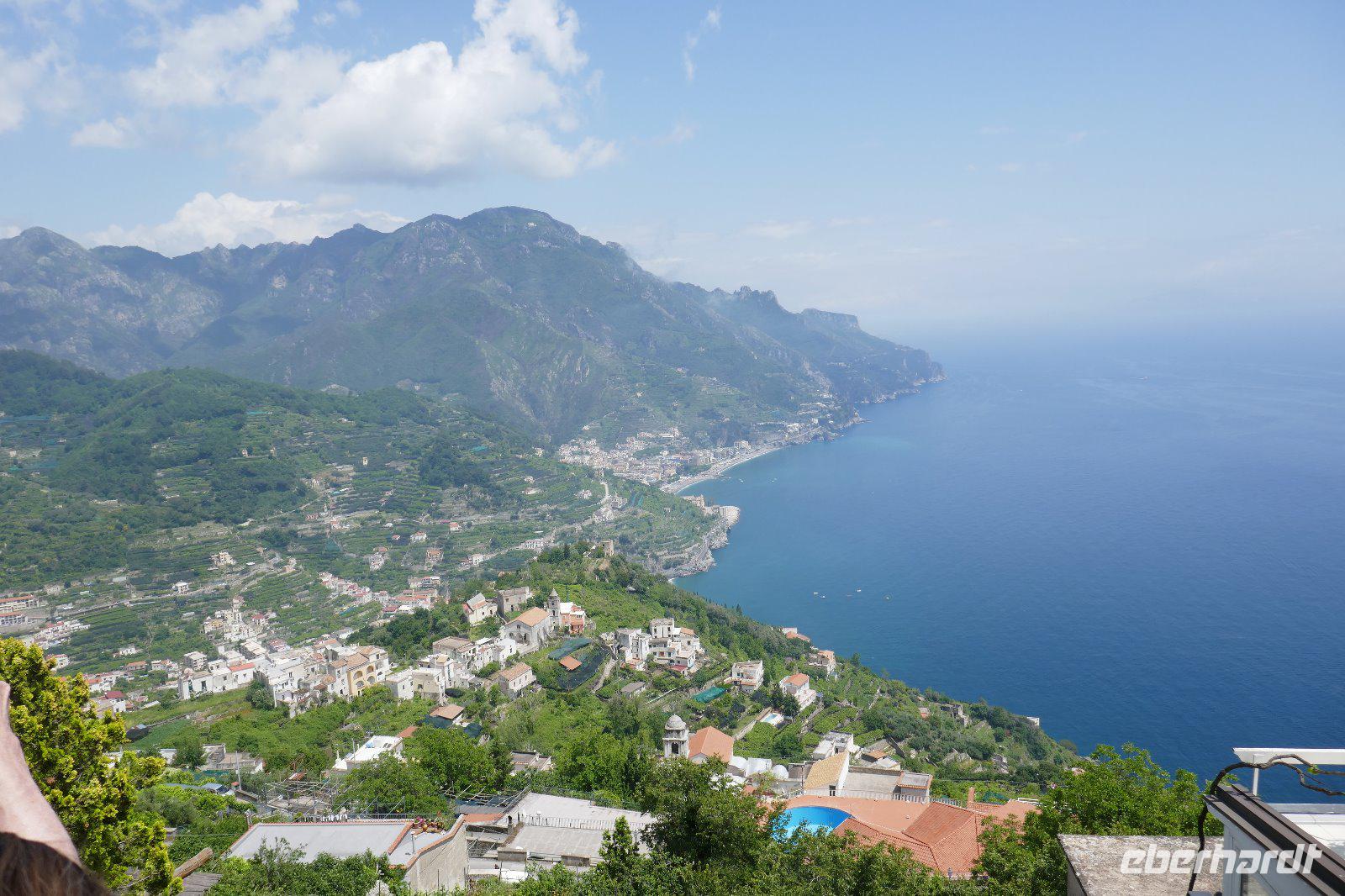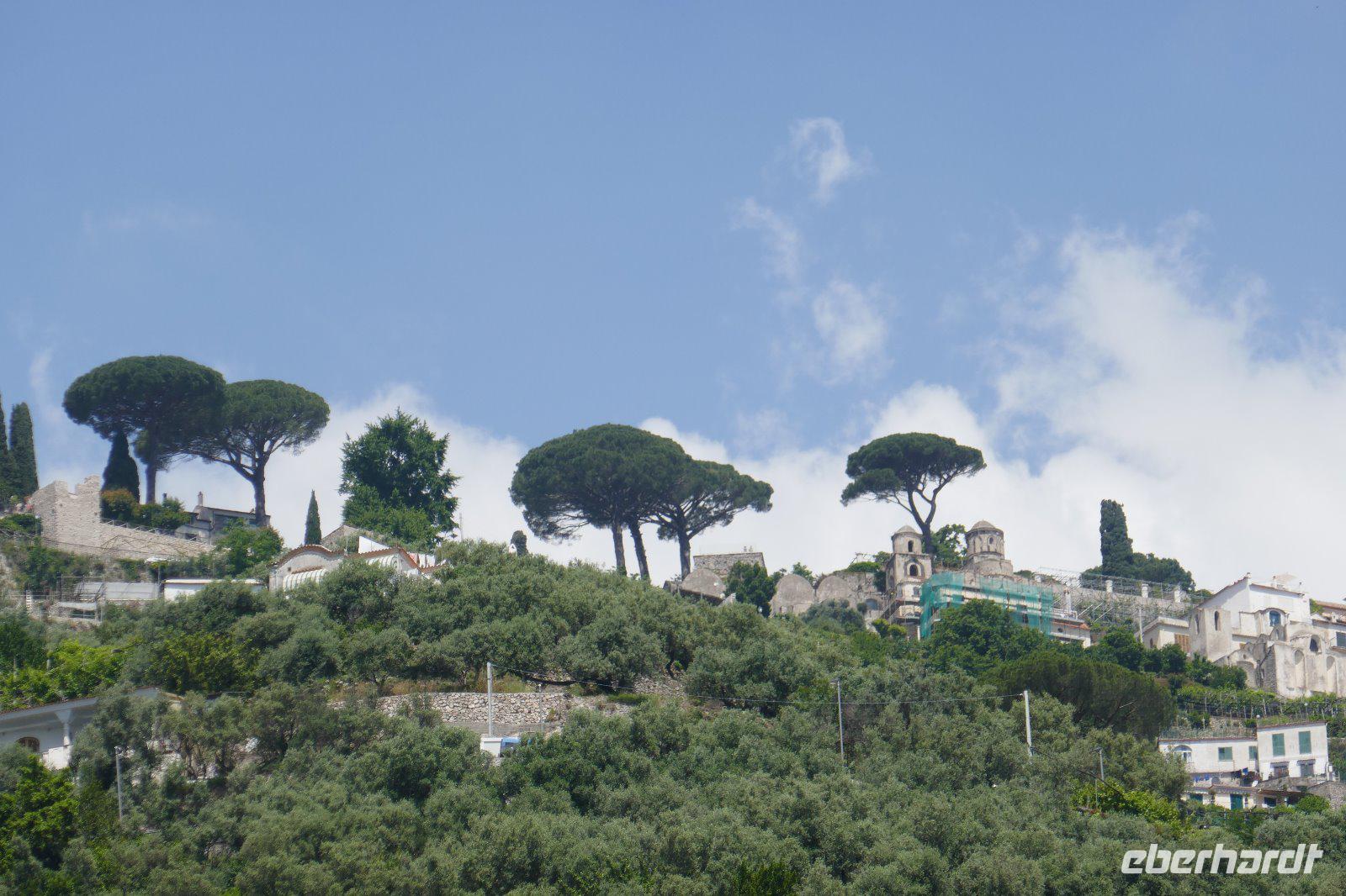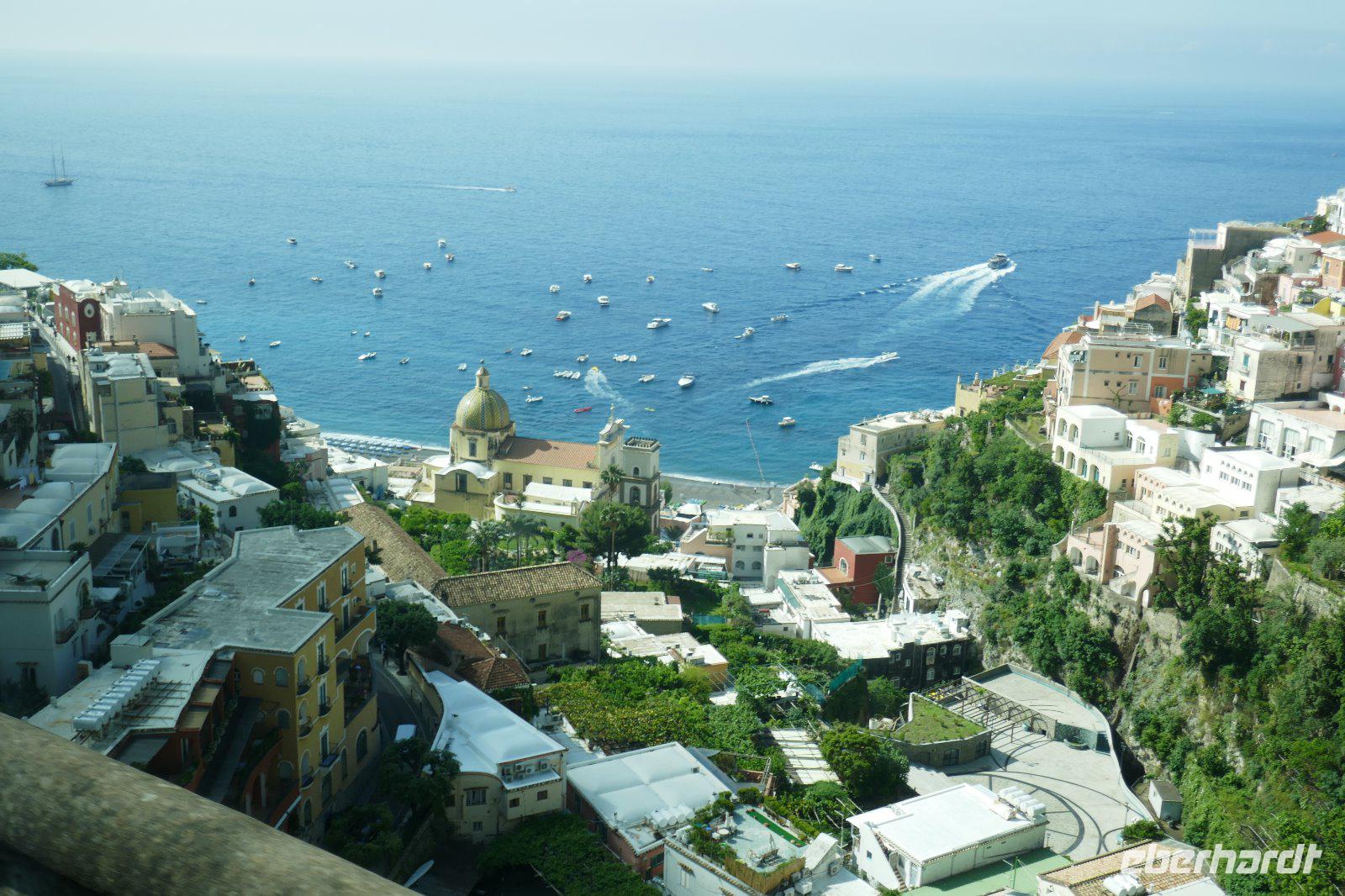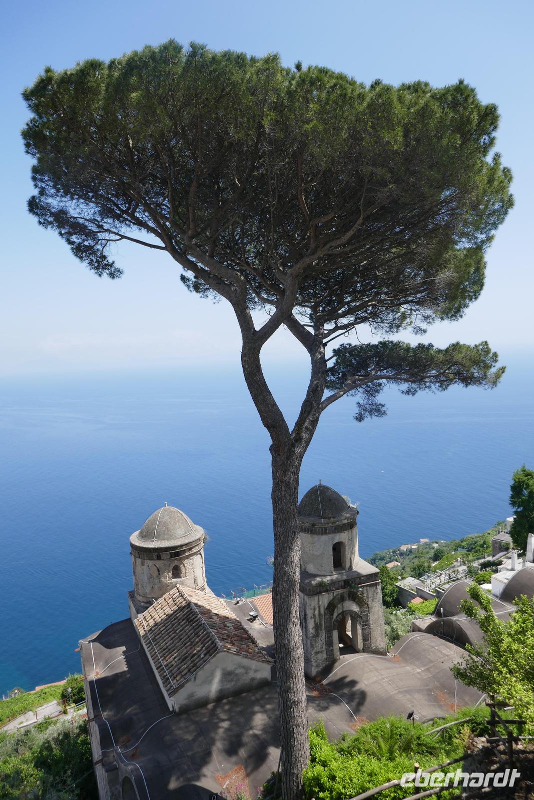 Die Amalfiküste, der Ort wo die Zitronen blühen, sei die schönste Küste der Welt. Unsere Gruppe wollte sich heute selbst ein Bild davon machen. Senkrecht aufragende Felswände am glitzernden Tyrrhenischen Meer. So stellte sich uns dieser Ort vor. Man hatte das Gefühl zwischen Himmel und dem Abgrund zu sein. Hier wurde in abenteuerlicher Weise eine der schönsten Küstenstraßen gebaut. An jeder Ecke ein interessantes Fotomotiv. Und einige der schönsten Dörfer Italiens scheinen fast wie an den Felsabhängen zu kleben. In der Nähe von Positano war unser erster Stopp. Schon John Steinbeck nannte ihn „der einzige senkrechte Ort der Welt". Alle steilen Gassen laufen auf den kleinen Strand zu. Kurve für Kurve, Serpentine für Serpentine steuerten wir unser nächstes Ziel Amalfi an. Nun wird dem letzten Bewusst, warum man hier nur mit einem einheimischen Busfahrer unterwegs sein kann. Geübt und mit der nötigen Gelassenheit umfährt er jede noch so kleine „Klippe". Ob Tourist mit Wagen oder der sonstige Gegenverkehr ist für unseren italienischen Fahrer kein Problem. Im Gegensatz zu Positano bietet Amalfi einen majestätischen Dom. Mit seiner pittoresk-bunten Fassade - ein kunstgeschichtliches Highlight - manifestiert er die Seerepublik Amalfis aus dem 11. Jahrhundert. Doch vorher erlebten wir die atemberaubende Küste wie sie die Seefahrer vom Wasser aus erleben. So manche Villa prominenter Persönlichkeiten konnte vom Boot aus ausgemacht werden. Am Ende hatte jeder auf seine Weise Gelegenheit diesen Ort zu entdecken. So mancher stellte auch fest, dass Schönheit seinen Preis hat. Über viele Kurven ging es übers Gebirge zum Ort Ravello. Ravello war berühmt für seine vielen Adelsfamilien, die dort lebten. So auch die Familie Rufolo, die im 12. Jh. auf einem Felsvorsprung die gleichnamige Villa errichten ließ. Im 19. Jh. wurde diese Villa durch einen Schotten zu neuem Leben erweckt. Wagner war hier im Garten und die Schönheit des Gartens und der Blick aufs Meer inspirierten ihn für das Bühnenbild 2. Akt des Parzivals (Klingsors Zaubergarten). Wer wollte konnte auf einem kleinen Rundgang diese besuchen oder den Ort genießen. Mit Bildern einer traumhaften Landschaft kehrten wir zum Hotel zurück.