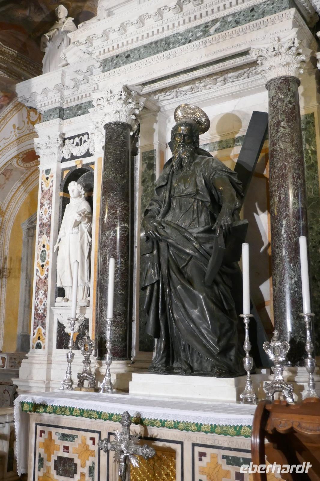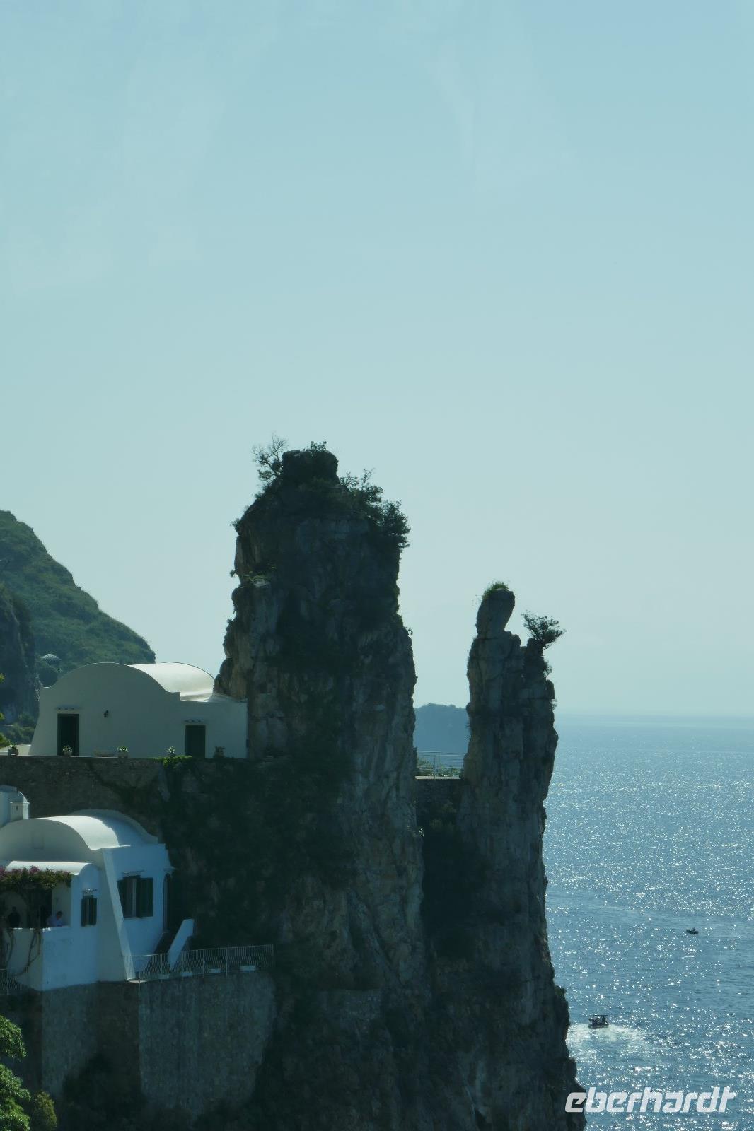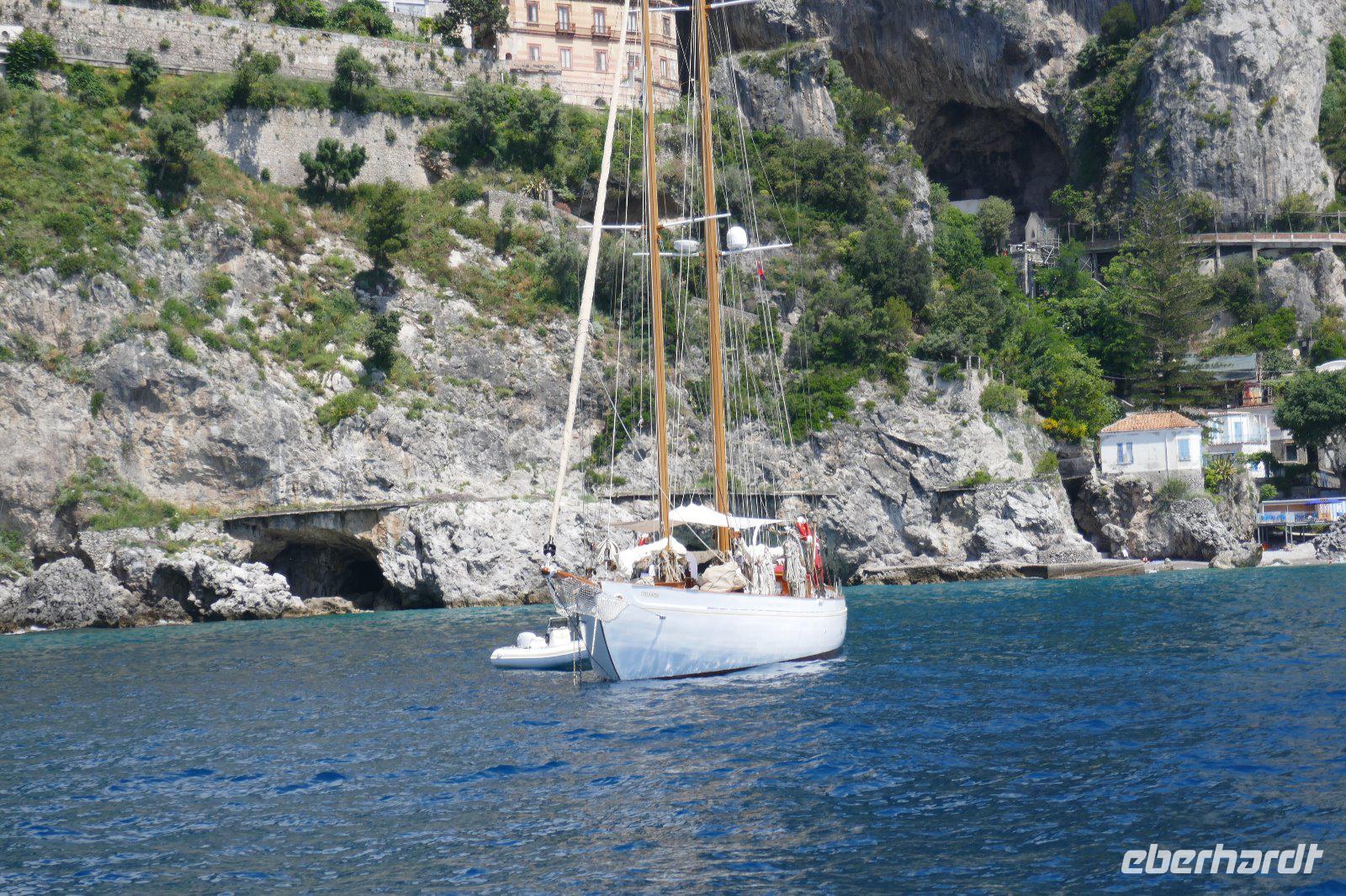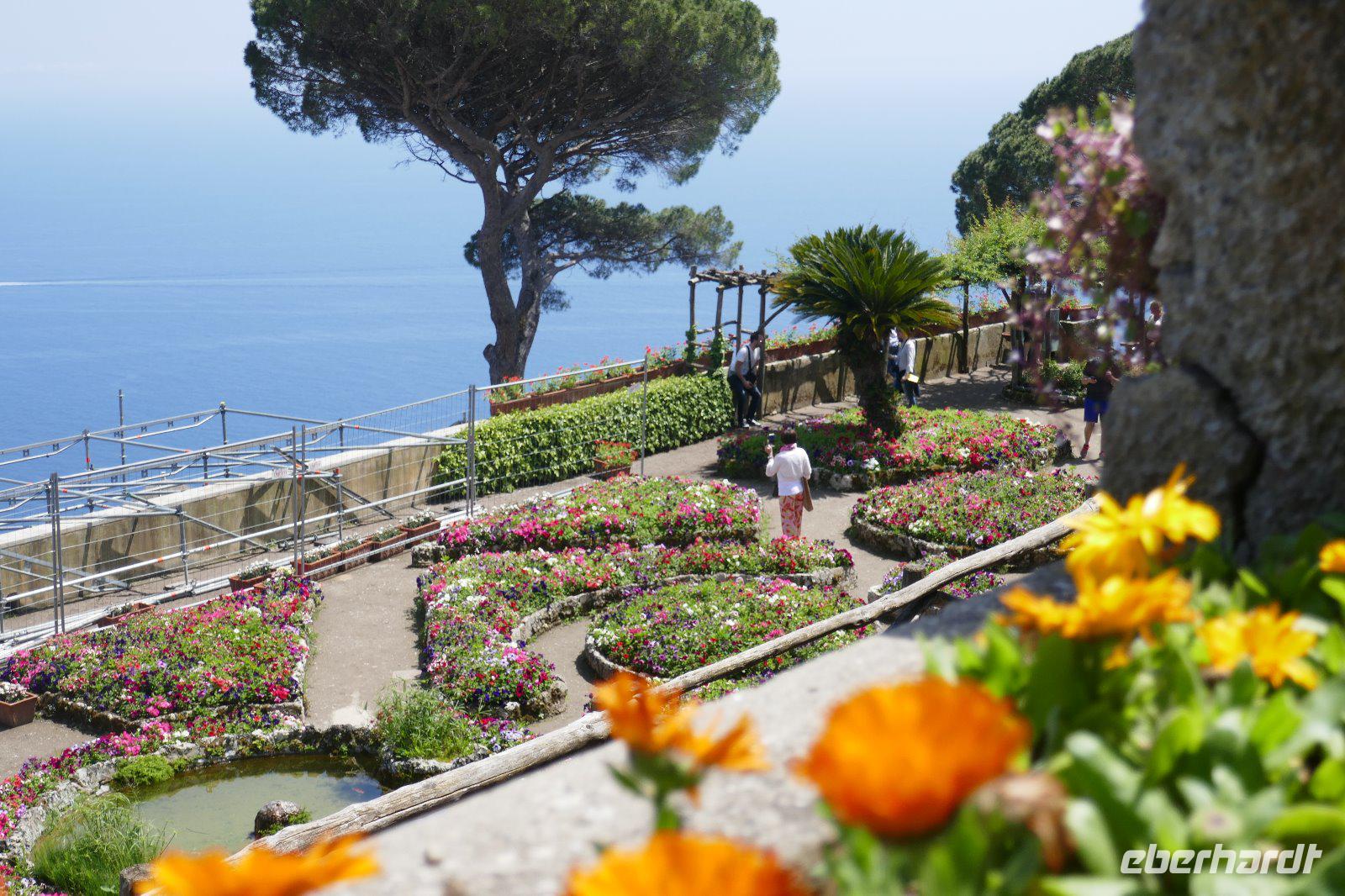 Die Amalfiküste, der Ort wo die Zitronen blühen, sei die schönste Küste der Welt. Unsere Gruppe wollte sich heute selbst ein Bild davon machen. Senkrecht aufragende Felswände am glitzernden Tyrrhenischen Meer. So stellte sich uns dieser Ort vor. Man hatte das Gefühl zwischen Himmel und dem Abgrund zu sein. Hier wurde in abenteuerlicher Weise eine der schönsten Küstenstraßen gebaut. An jeder Ecke ein interessantes Fotomotiv. Und einige der schönsten Dörfer Italiens scheinen fast wie an den Felsabhängen zu kleben. In der Nähe von Positano war unser erster Stopp. Schon John Steinbeck nannte ihn „der einzige senkrechte Ort der Welt". Alle steilen Gassen laufen auf den kleinen Strand zu. Kurve für Kurve, Serpentine für Serpentine steuerten wir unser nächstes Ziel Amalfi an. Nun wird dem letzten Bewusst, warum man hier nur mit einem einheimischen Busfahrer unterwegs sein kann. Geübt und mit der nötigen Gelassenheit umfährt er jede noch so kleine „Klippe". Ob Tourist mit Wagen oder der sonstige Gegenverkehr ist für unseren italienischen Fahrer kein Problem. Im Gegensatz zu Positano bietet Amalfi einen majestätischen Dom. Mit seiner pittoresk-bunten Fassade - ein kunstgeschichtliches Highlight - manifestiert er die Seerepublik Amalfis aus dem 11. Jahrhundert. Doch vorher erlebten wir die atemberaubende Küste wie sie die Seefahrer vom Wasser aus erleben. So manche Villa prominenter Persönlichkeiten konnte vom Boot aus ausgemacht werden. Am Ende hatte jeder auf seine Weise Gelegenheit diesen Ort zu entdecken. So mancher stellte auch fest, dass Schönheit seinen Preis hat. Über viele Kurven ging es übers Gebirge zum Ort Ravello. Ravello war berühmt für seine vielen Adelsfamilien, die dort lebten. So auch die Familie Rufolo, die im 12. Jh. auf einem Felsvorsprung die gleichnamige Villa errichten ließ. Im 19. Jh. wurde diese Villa durch einen Schotten zu neuem Leben erweckt. Wagner war hier im Garten und die Schönheit des Gartens und der Blick aufs Meer inspirierten ihn für das Bühnenbild 2. Akt des Parzivals (Klingsors Zaubergarten). Wer wollte konnte auf einem kleinen Rundgang diese besuchen oder den Ort genießen. Mit Bildern einer traumhaften Landschaft kehrten wir zum Hotel zurück.