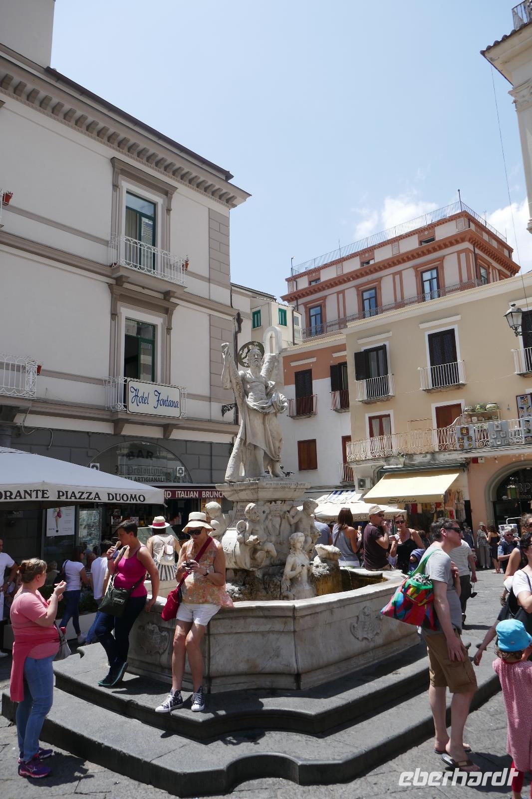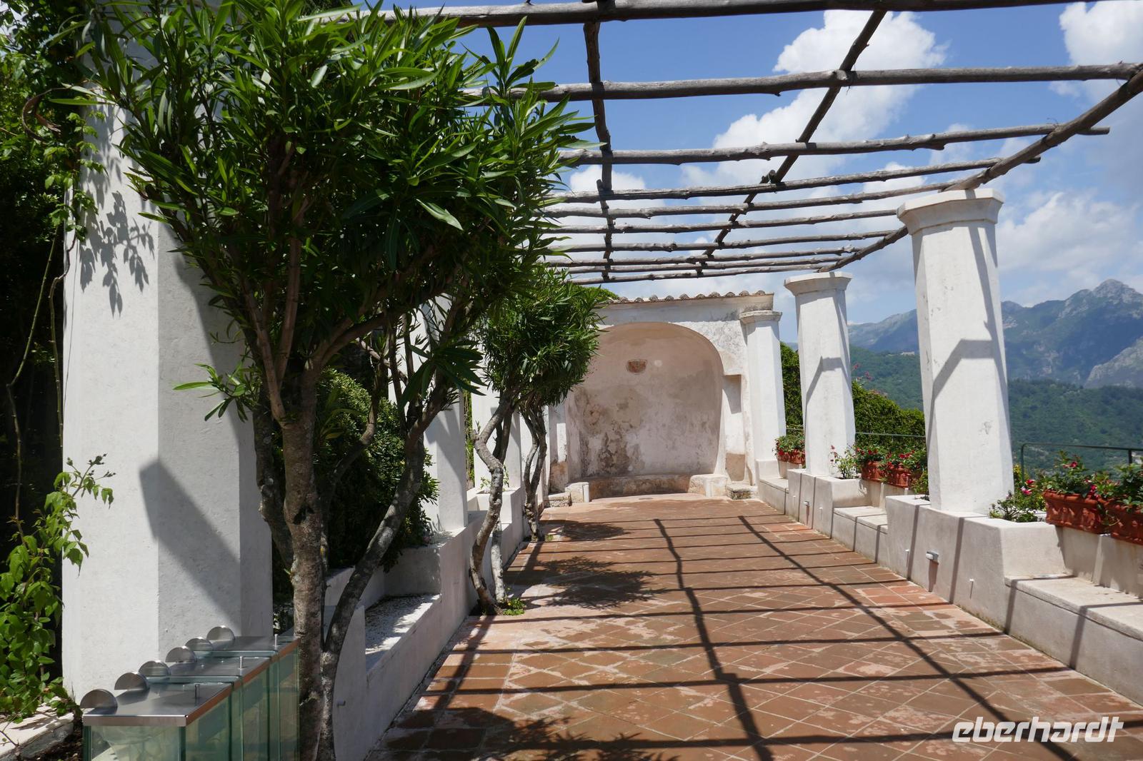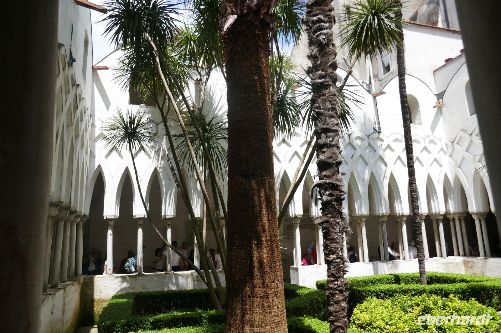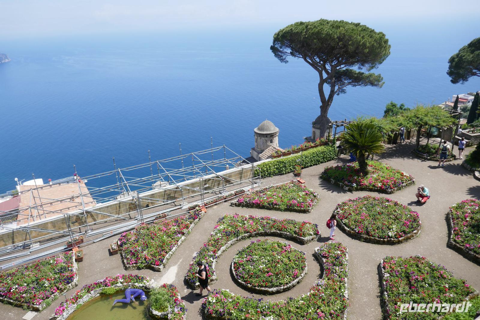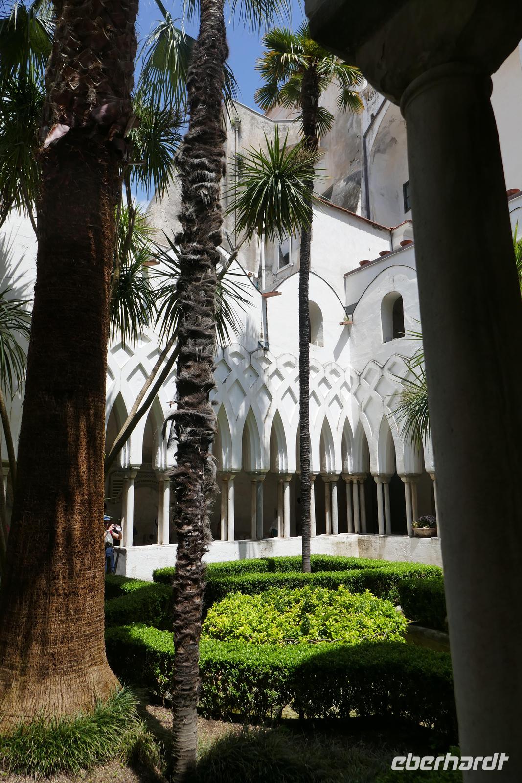 Die Amalfiküste, der Ort wo die Zitronen blühen, sei die schönste Küste der Welt. Unsere Gruppe wollte sich heute selbst ein Bild davon machen. Senkrecht aufragende Felswände am glitzernden Tyrrhenischen Meer. So stellte sich uns dieser Ort vor. Man hatte das Gefühl zwischen Himmel und dem Abgrund zu sein. Hier wurde in abenteuerlicher Weise eine der schönsten Küstenstraßen gebaut. An jeder Ecke ein interessantes Fotomotiv. Und einige der schönsten Dörfer Italiens scheinen fast wie an den Felsabhängen zu kleben. In der Nähe von Positano war unser erster Stopp. Schon John Steinbeck nannte ihn „der einzige senkrechte Ort der Welt". Alle steilen Gassen laufen auf den kleinen Strand zu. Kurve für Kurve, Serpentine für Serpentine steuerten wir unser nächstes Ziel Amalfi an. Nun wird dem letzten Bewusst, warum man hier nur mit einem einheimischen Busfahrer unterwegs sein kann. Geübt und mit der nötigen Gelassenheit umfährt er jede noch so kleine „Klippe". Ob Tourist mit Wagen oder der sonstige Gegenverkehr ist für unseren italienischen Fahrer kein Problem. Im Gegensatz zu Positano bietet Amalfi einen majestätischen Dom. Mit seiner pittoresk-bunten Fassade - ein kunstgeschichtliches Highlight - manifestiert er die Seerepublik Amalfis aus dem 11. Jahrhundert. Doch vorher erlebten wir die atemberaubende Küste wie sie die Seefahrer vom Wasser aus erleben. So manche Villa prominenter Persönlichkeiten konnte vom Boot aus ausgemacht werden. Am Ende hatte jeder auf seine Weise Gelegenheit diesen Ort zu entdecken. So mancher stellte auch fest, dass Schönheit seinen Preis hat. Über viele Kurven ging es übers Gebirge zum Ort Ravello. Ravello war berühmt für seine vielen Adelsfamilien, die dort lebten. So auch die Familie Rufolo, die im 12. Jh. auf einem Felsvorsprung die gleichnamige Villa errichten ließ. Im 19. Jh. wurde diese Villa durch einen Schotten zu neuem Leben erweckt. Wagner war hier im Garten und die Schönheit des Gartens und der Blick aufs Meer inspirierten ihn für das Bühnenbild 2. Akt des Parzivals (Klingsors Zaubergarten). Wer wollte konnte auf einem kleinen Rundgang diese besuchen oder den Ort genießen. Mit Bildern einer traumhaften Landschaft kehrten wir zum Hotel zurück.