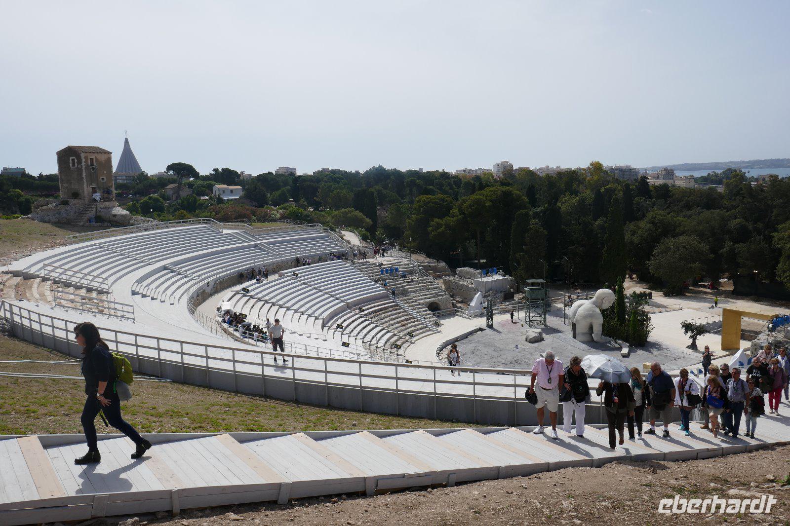 Auf nach Syrakus, das wegen den vielen großen Yachten im Hafen manchmal auch das sizilianische Saint Tropez genannt wird. Der heutige Tag ein Geschichtsunterricht vor traumhafter Meerkulisse. Es gibt derart viele antike Stätten, dass man sich fühlt als bereist man die Antike in einer Art „Zeitmaschine". Die ganze Stadt ein Juwel das es heute zu entdecken galt. Cicero deutete schon an, dass Syrakus die schönste unter den griechischen Stätten sei. Kein Wunder, denn sie war die wichtigste Stadt im Magna Graecia und ihr Stolz u. Stärke machte es sogar möglich die Athener zu besiegen. Deshalb lebten viele Griechen einschließlich des berühmten Archimedes dort. Selbst der Apostel Paulus erreichte 44 n. Chr. Syrakus und verbreitete dort das Christentum. Ziele des heutigen Tages waren u. a. das griechische Theater, Ohr des Dionysios. Bei einem Rundgang durch die Altstadt mit dem Dom und vielen Bauwerken und dem authentischen Markt war es Zeit für eine Mittagspause mit einem wunderbaren Blick auf den Hafen. Neben den Katakomben in Rom sind hier die wichtigsten Katakomben der Christenheit. Am Nachmittag widmeten wir uns diesem Thema und besuchten die Katakombe des Hl. Johannes. Mit reichlich vielen Eindrücke ging die heutige „Zeitreise" zu Ende.