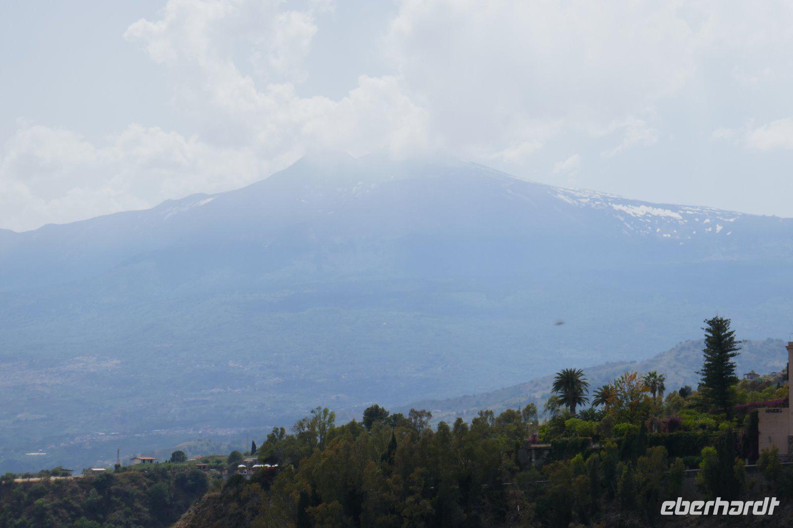 Heute ging es an die Ostküste. Ein Hotelwechsel war die Konsequenz. Also Koffer packen und dann ging es nach einem guten Frühstück los. Madonie Gebirge. Ein Naturpark zwischen Palermo und Cefalu mit ca. 40.000 m² wurde durchquert. Zunächst machten wir Halt in Cefalu. Dieses Städtchen strahlt einen eigenen Charme aus. Besichtigung der Kathedrale und des arabischen Wäscheplatz und dann noch die Stadt erkunden vielleicht einen Cappuccino zur Stärkung und dann ging es auch schon weiter. Während der Fahrt hatten wir trotz Nebel an so manchen Stellen einen herrlichen Panoramablick. An diesem Tag waren nicht die großen Städte angesagt. Nein vielmehr besuchten wir noch ursprünglich und verschlafen gebliebene Dörfer im Landesinneren. In Castellbuono, einem kleinen Ort umgeben von Mandelbäumen und Olivenhainen machten wir Halt. Hier hielten wir zunächst am Kastell der Familie Ventimiglia. Eine Anlage die sehr imposant ist und von weither schon sichtbar war. Die kleinen Dörfer wirken oft wie an den Bergrücken angeklebt. Natürlich hörten wir auch etwas über den weißen Nektar der Esche auch bekannt als „Tränen der Esche", der in dieser Region erzeugt wird. Eine kleine Verkostung dieses Produktes in Form verschiedener Süßigkeiten durfte natürlich in Castellbuono nicht fehlen. Etwas verspätet machten wir am Agriturismo Gelso inmitten schöner Natur Mittag. Wir wurden mit Köstlichkeiten aus eigener Produktion verwöhnt. Mit vollem Bauch ging es dann bergab zur Autobahn und dann zum Hotel. Auf dem Weg sahen wir in Wolken gehüllt den Ätna, der am Sonntag unser Ziel sein wird.