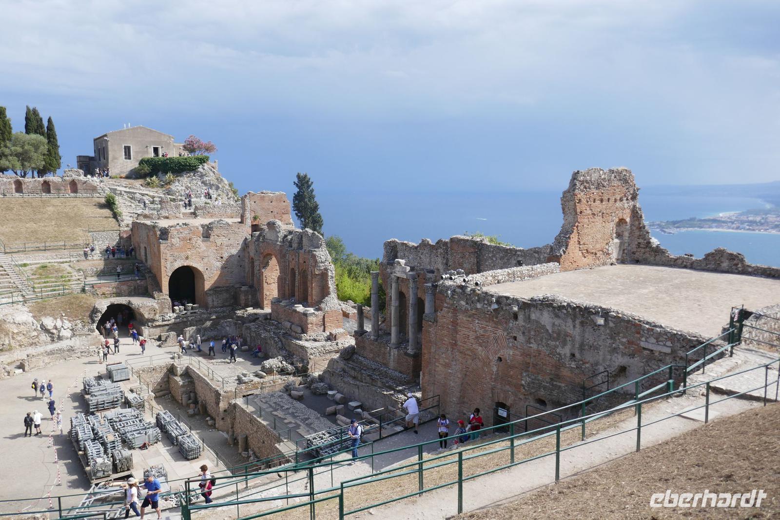 Das Leben ist zwar kein Wunschkonzert, aber dennoch können Wünsche in Erfüllung gehen. So auch am heutigen Tag, denn wir werden mit Sonne empfangen - ideale Voraussetzung für den Aufstieg zum Ätna. Das Wort kommt aus dem sanskritischen und heißt so viel wie „die Brennende". Einst aus den Tiefen des Meeres entstanden hatte er vor rd. 600.000 Jahren eine Höhe von über 4.000 Meter. Seine ständige Tätigkeit höhlte das Innere aus bis es zum Einsturz der Kraterwände kam. Heute hat er eine Höhe von 3.354 Meter. Schon Johann Gottfried Seume war bei seinem Aufstieg 1802 vom Krater überwältigt. Wir durften heute dieses Erlebnis genießen. Die Fahrt dorthin glich einer Fahrt durch die Vegetationszonen der Insel. Erst Pflanzen für warmes Klima. Dann Obstgärten. Im Anschluss daran Waldgebiet und danach Gebüsch, bevor am Ende nur mehr „schwarze Wüste" mit gelegentlichen Flechten und Moosen anzutreffen war. Der letzte kleinere Ausbruch war 2017 und auch von den griechischen Mythen ließen wir uns nicht beeindrucken und so ging es ein kleines Stück mit der Seilbahn und dann weiter mit Jeep nach oben. Das Ziel war erreicht und nach einer kleinen Verschnaufpause erlebten wir das Naturschauspiel aus nächster Nähe. Auch bei der anschließenden Kraterumrundung wurde es uns, trotz des leichten Windes, nicht wirklich kalt. Im strahlenden Glanz erlebten wir den Hauptkrater, der noch heute aktiv ist. Der Boden war warm und wer sich wärmen wollte, konnte dies am warmen Felsen tun oder an offenen kleinen Stellen wo Dampf entwich. So kamen wir alle wohlbehalten wieder zurück und es ging weiter in Richtung Taormina. Es ist ein kleines schmuckes Dörfchen, das früher nur mit Mauleseln erreicht werden konnte. Das Landschaftsbild das sich dort bot ist kaum zu übertreffen. Die Reste von der Stadtmauer, einige Paläste und Kirchen aus dem späten Mittelalter im sog. arabisch-normannischen Stil geben dem Ort einen besonderen malerischen Charakter. Schon Baron Wilhelm von Gloeden hielt schon Ende des 19. Jh. hier alles fotographisch fest. Erst. mit diesen Bildern hatte man das Interesse für den Ort geweckt und so kamen zuerst der sog. „Elitetourismus" in den Wintermonaten, bevor jetzt eher der Normaltourismus in den Sommermonaten kommt. Vorbei an Eisdielen und Souvenirläden ging es durch die Altstadt. In den Nebengassen kann man den Flair der Stadt besonders erleben. In der Villa Civico hatten wir einen grandiosen Blick aufs Meer und den Ätna. Zurück zur Hauptstraße des Ortes ging es weiter bis zum Piazza Gariballdi und am Ende am Domplatz noch die Besichtigung der Kathedrale. Nun war bei den Meisten die Luft raus und eine Granita oder ein Eis kamen gerade Recht. Eiserne erstürmten noch das Griechische Theater. Schon Goethe war von ihm entzückt und unzählige Gemälde und Stiche aus dem 18. u. 19. Jahrhundert haben es zur bekanntesten antiken Ruine Sizilien werden lassen. Zwar kleiner als das Theater in Syrakus aber durch den Umbau und die damit verbundenen zusätzlichen Holzsitze bot es deutlich mehr Platz. Ebenfalls sind die baulichen Veränderungen der Orchestra anzumerken, die für Gladiatorenkämpfe und blutige Wasserkämpfe genutzt wurden. Der hervorragenden Akustik ist es zu verdanken, dass man jedes noch so kleine Geräusch hören kann. Am Ende erlebte man italienische Leben hautnah (diskutierende Italiener mit lauter Stimme und Busfahren in „Salamitechnik") bevor wir mit unserem Bus zurück zum Hotel fuhren. Die letzte Nacht auf Sizilien und man traf am Ende des Tages die Vorbereitungen für die Abreise denn morgen Abend schon geht es mit der Fähre nach Neapel.