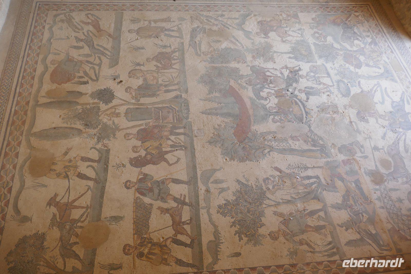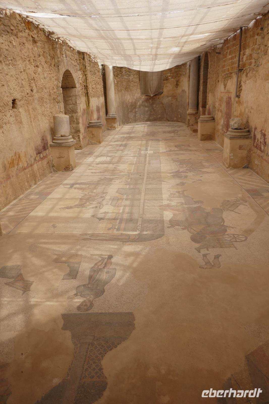 Heute heißt es Abschied nehmen von Sizilien. Doch bevor es am Abend mit der Fähre zurück aufs Festland nach Neapel geht erlebten wir einen herrlichen Tag. Der Weg führte uns heute zunächst wieder ins Landesinnere. Über sanfte Hügellandschaft und vorbei an der Stadt Piazza Armerina erreichten wir die Villa Romana del Casale. Wer dort gelebt hat und wer sie errichten ließ ist bis heute umstritten. Fakt ist aber dass sie durch Erdrutsche konserviert wurde und erst im 18 Jahrhundert entdeckt wurde. Die eigentlichen Ausgrabungen begannen in den 1950-er Jahren. Seither wird die Anlage systematisch freigelegt. Mehr als 3500 m² Mosaikflächen sind hervorragend erhalten. Die Darstellungen entstammen Alltagsszenen wie z.B. der Jagd oder auch mythologische Szenen. Aufwendige Vorbereitungen waren notwendig und mit Milliarden von winzigen Steinchen entstanden Kostbarkeiten. Figürliche, emblematischen aber ornamentalische Motive u. Dekors entstanden. Bei einem Rundgang waren wohl die Highlights die Wagenlenker, Zyklopen und die Bikinimädchen. Alles war zum Greifen nahe - die Laufstege machten vieles möglich. Nach dem Mittagessen und mit vielen Erlebnissen auf Sizilien ging es zum Fährhafen. Mit der Nachtfähre setzten wir aufs Festland über. Am nächsten Morgen erreichten wir Neapel.