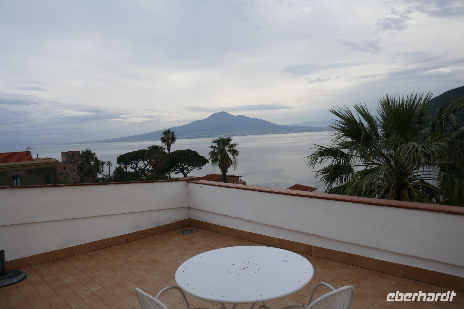Nun war ein gewisses Abenteuer angesagt. Auch wenn der Vulkan tief und fest schläft, der Aufstieg ist nicht ganz ohne. Mit festem Schuhwerk ging es den steilen Anstieg hinauf zum Kraterrand. Die Sicht heute war toll und wir waren noch vor dem großen Ansturm am Kraterrand. Nachdem wir den Bus wieder erreicht hatten ging es zu einem Weingut in der Nähe vom Pompeji. Vulkangestein lässt edel Tropfen reifen, die wir mit anderen Köstlichkeiten als Mittagslunch probierten. Nach einer kurzen Besichtigung und einigen Taschen traten wir den Weg nach Pompeji an. Am Rande sei noch bemerkt die Anfahrt war für unseren Fahrer eine kleine Herausforderung. Diese sollte an diesem Tag nicht die letzte sein.Pompeji - eine Stadt der Antike, die bei Ausbruch des Vesuvs vollständig im Aschemeer versank. Nach Ausgrabung zu neuem Leben erweckt war sie unser Ziel. Romane, Filme, und nicht zuletzt der Lateinunterricht haben den Mythos der antiken Naturkatastrophe verfestigt