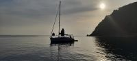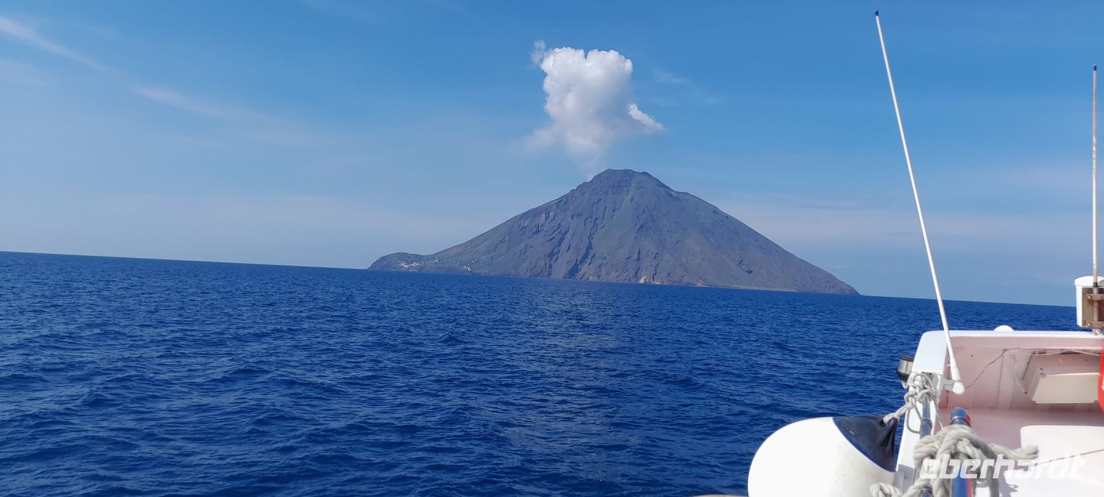 Um 16 Uhr gehts weiter zur nächsten, der wohl bekanntesten Insel, nach Stromboli. Der 926 m hohe Berg "spuckt" - weltweit einzigartig - in kurzen Abständen ( zwischen 15 Minuten und einer Stunde ). Der Kapitän kocht für uns leckere Pasta - in Meerwasser gekocht - und später erleben wir tatsächlich dieses eindrucksvolle Natur-Phänomen einer Eruption. Unvergesslich! Mondschein, in Silber getauchtes Meer und der Stromboli speit Feuer und Rauch...