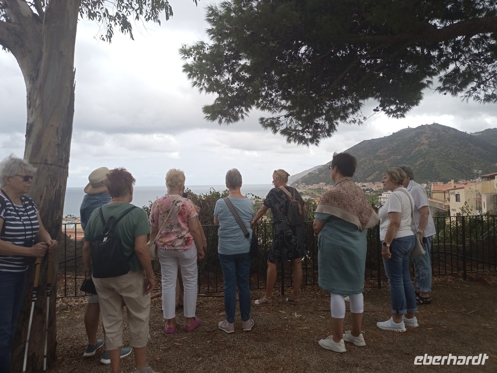 Parallel dazu beschäftigte uns noch immer ein organisatorisches Problem: Drei Damen hatten nach wie vor keine Koffer erhalten, trotz aller Bemühungen von Eberhardt Travel, Telefonaten und Mails. Da die Ankunft der Koffer erneut verschoben wurde, fuhren wir nach Capo d’Orlando, wo es zahlreiche Bekleidungsgeschäfte und Drogerien gibt. Die Damen konnten sich dort mit frischer Kleidung und dem Nötigsten ausstatten – sichtlich erleichtert und nun für die kommenden Tage besser gerüstet. Beim Abendessen berichteten sie mit Begeisterung von dem charmanten, am Meer gelegenen Städtchen Capo d’Orlando. Ihre Schilderungen weckten so viel Interesse, dass sich eine Gruppe Gäste spontan entschied, am nächsten Vormittag auf eigene Faust einen Ausflug dorthin zu unternehmen.