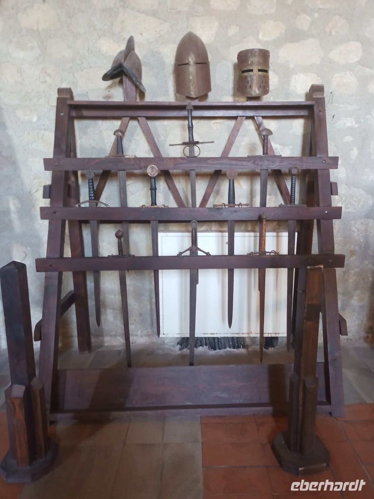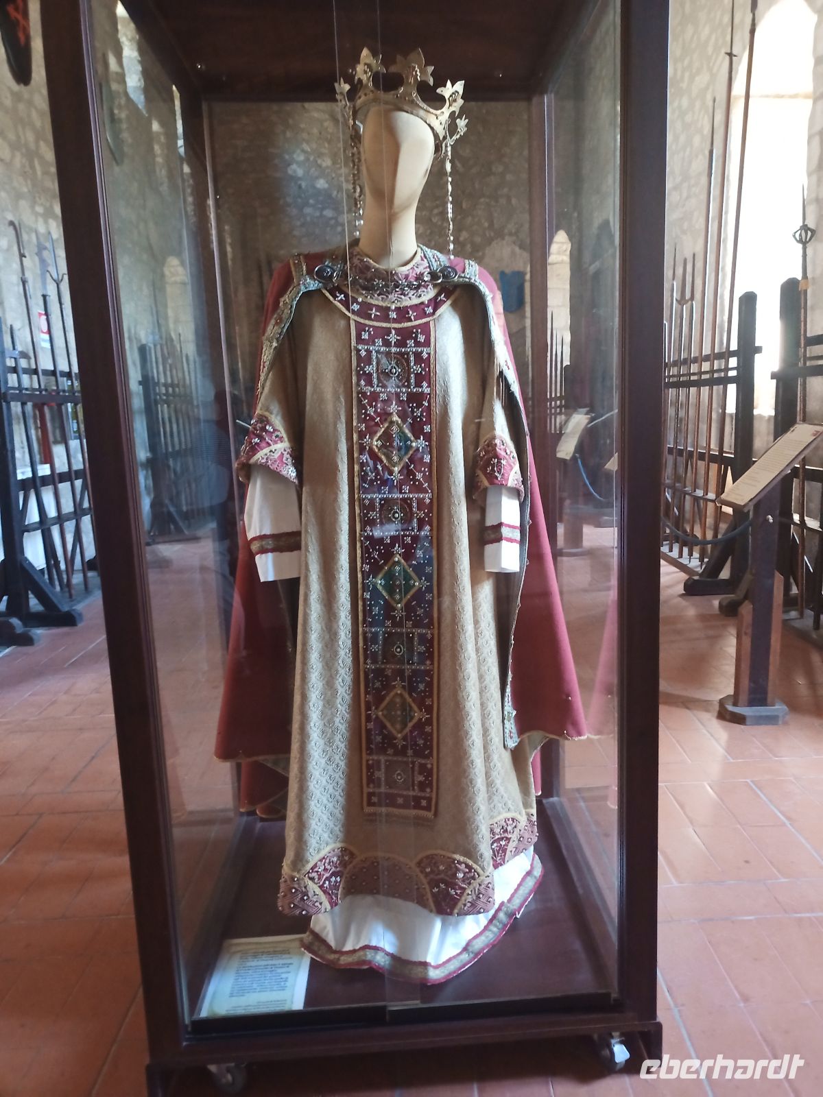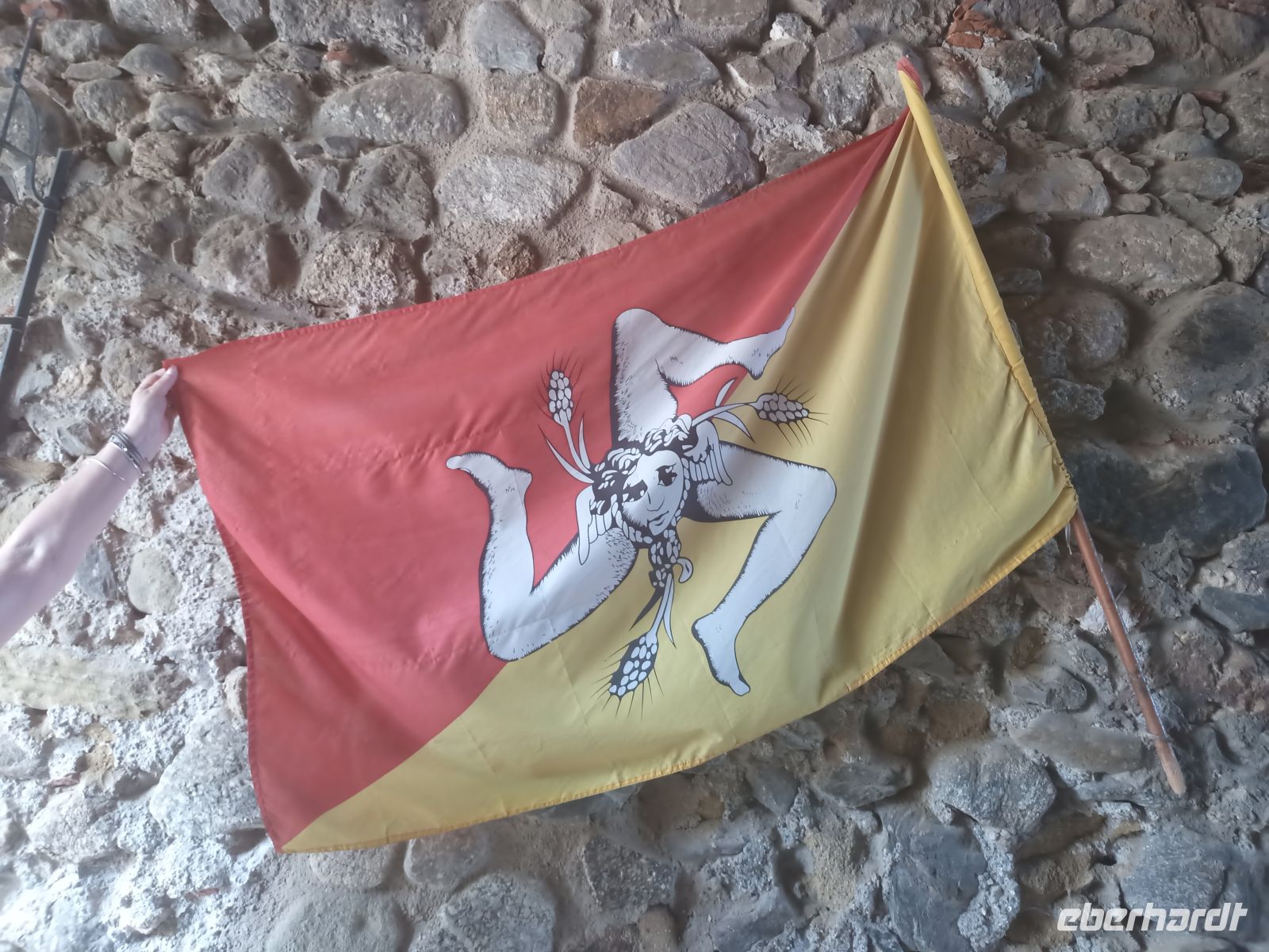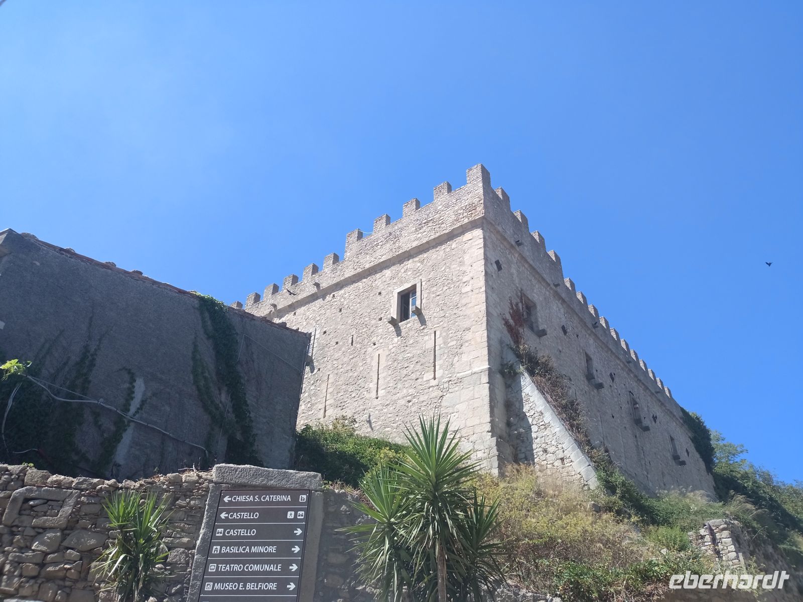 Auf dem Hügel thront das eindrucksvolle Castello di Federico II d’Aragona, dass wir teils besichtigten, während andere die Zeit lieber bei Sonnenschein im Innenhof des Schlosses verbrachten. Der Castello wurde ursprünglich auf einem älteren arabisch-byzantinischen Fort errichtet. Unter der Herrschaft von Federico II d’Aragona wurde das Schloss weiter ausgebaut (etwa ab 1302) und diente als königliche Residenz. Die Ausstellung im Inneren erwies sich als spannend und anschaulich. Besonders interessant war auch die Ausstellung der historischen Musikinstrumente.