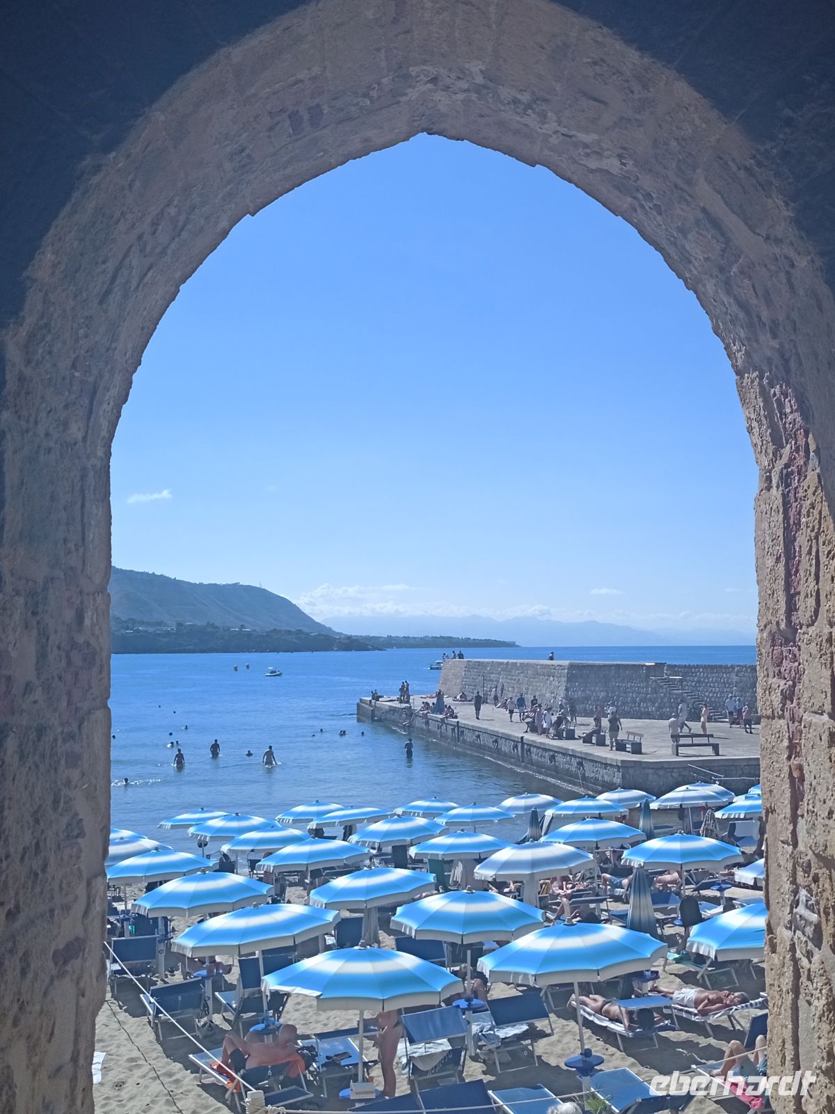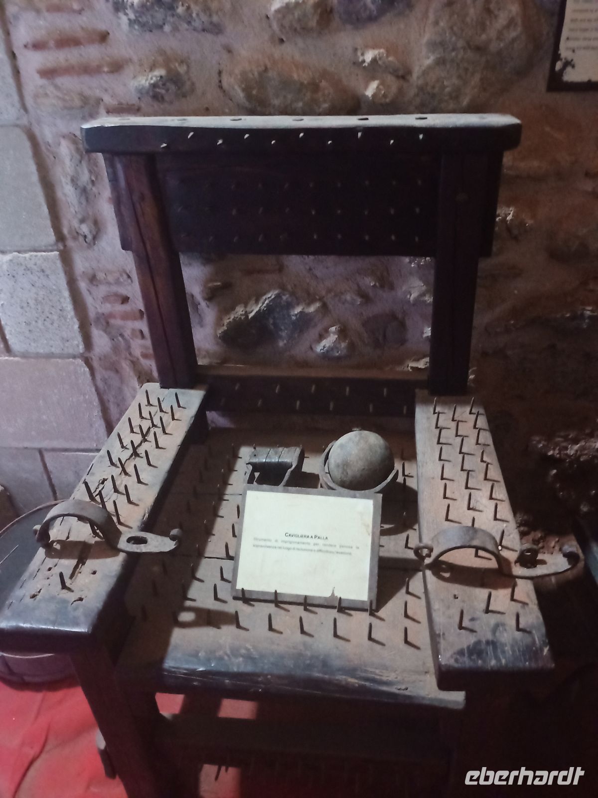 Unser erstes Ziel war das Castello di Brolo, das hoch über dem Ort thront. Die Ursprünge der Burg reichen bis ins Mittelalter zurück. Sie diente nicht nur als Festung, sondern zeitweise auch als Wohnsitz der Adelsfamilien der Region. Besonders interessant war der Besuch des kleinen Museums im Turm, kleine Einblicke in das Alltagsleben der Vergangenheit– von historischen Einrichtungsgegenständen bis hin zu einer Ausstellung über die damaligen Methoden der Justiz – Folterkammer. Man kann es sich kaum vorstellen, wie grausam man die Menschen behandelt hat. Von der Burgterrasse eröffnet sich ein wunderbarer Ausblick über Brolo, die Küste und die umliegenden Berge.