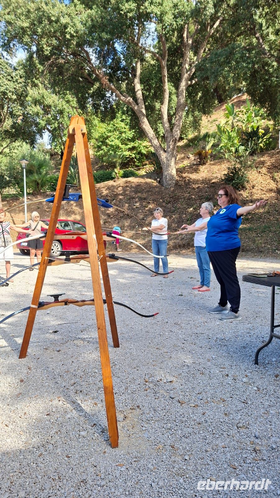 Zurück in unserer Villa erwartete die Gäste ein sportliches Highlight: Bogenschießen im Garten. Ein professionelles Team erklärte die Technik, und bald schossen die Teilnehmer begeistert auf die Zielscheiben – für viele eine ganz neue Erfahrung.