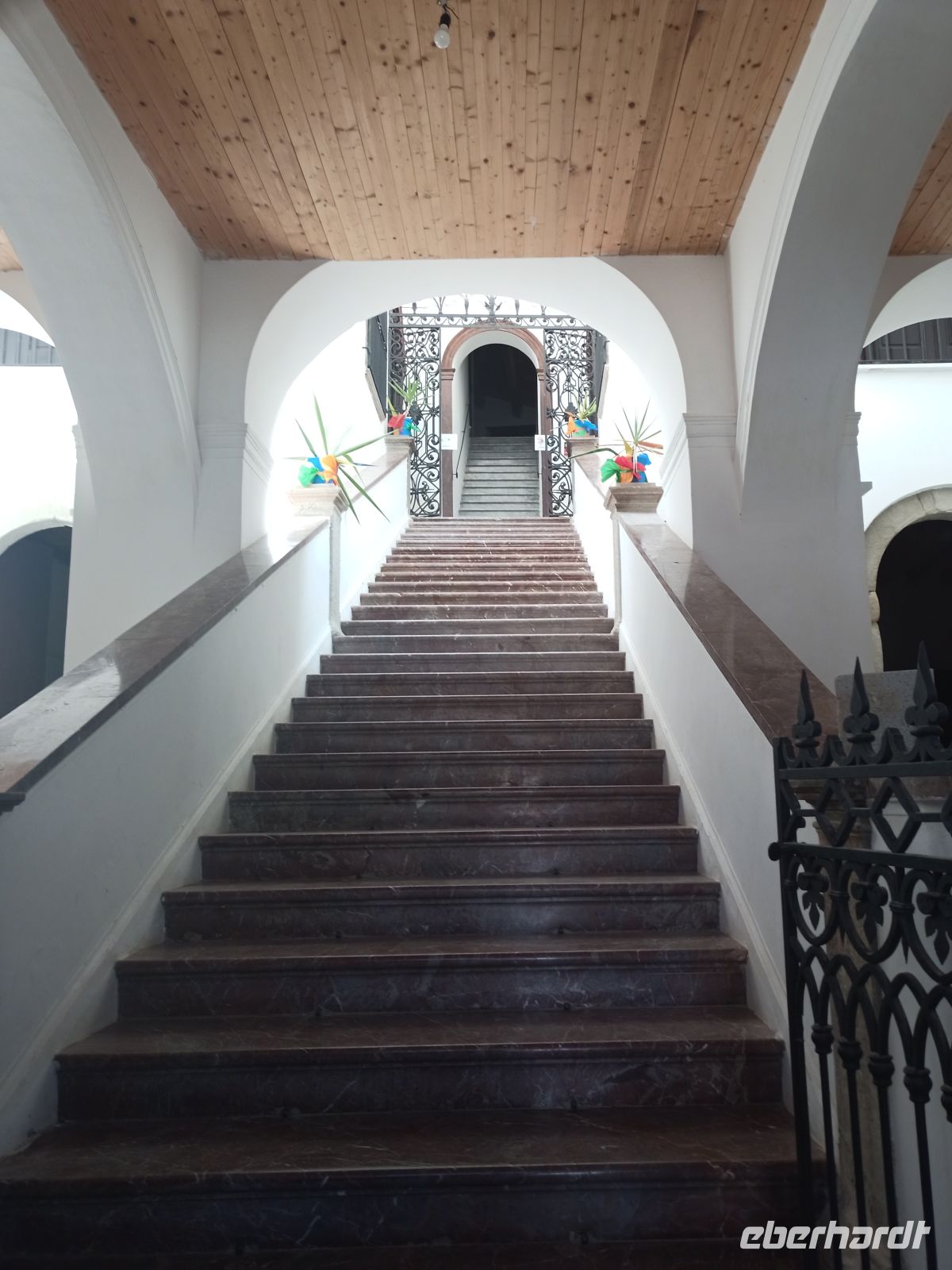 Besonders eindrucksvoll war der Besuch des Palazzo Salleo im Zentrum von Sinagra. Dieser barocke Adelspalast stammt aus dem 17. Jahrhundert und war über viele Generationen der Familiensitz der einflussreichen Familie Salleo. Heute beherbergt er ein Museum mit historischen Exponaten, kunstvoll gestalteten Stuckdecken und prächtigen Dekorationselementen. Einige Räume dienen mittlerweile auch als Ateliers für ortsansässige Künstler und für wechselnde Ausstellungen.