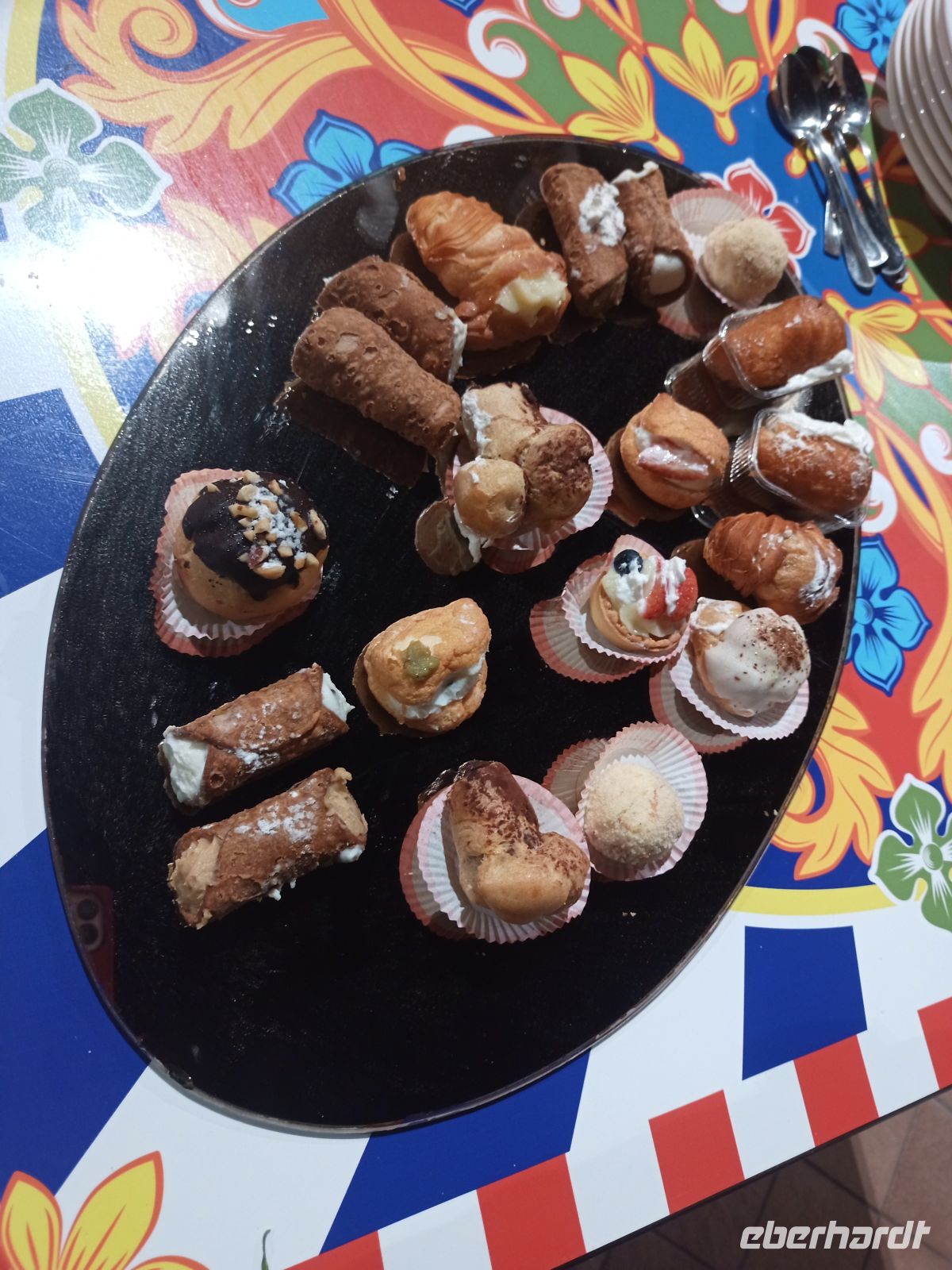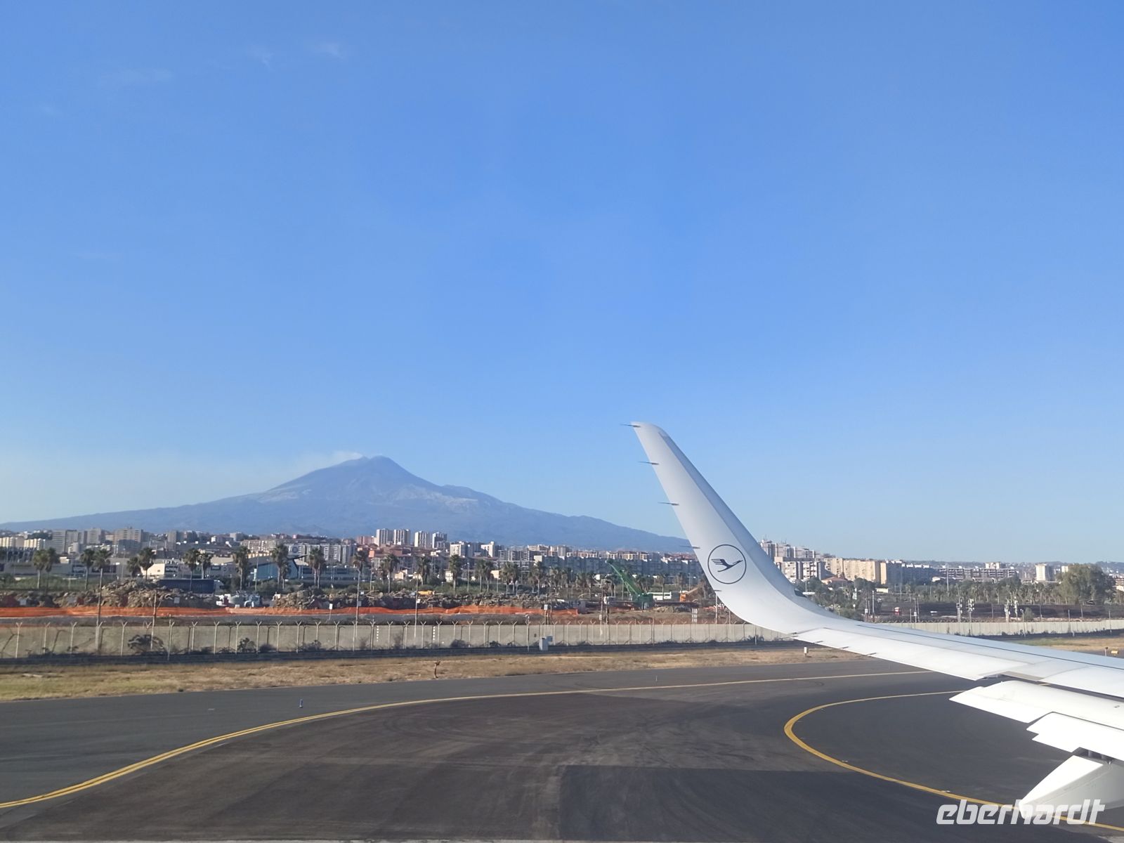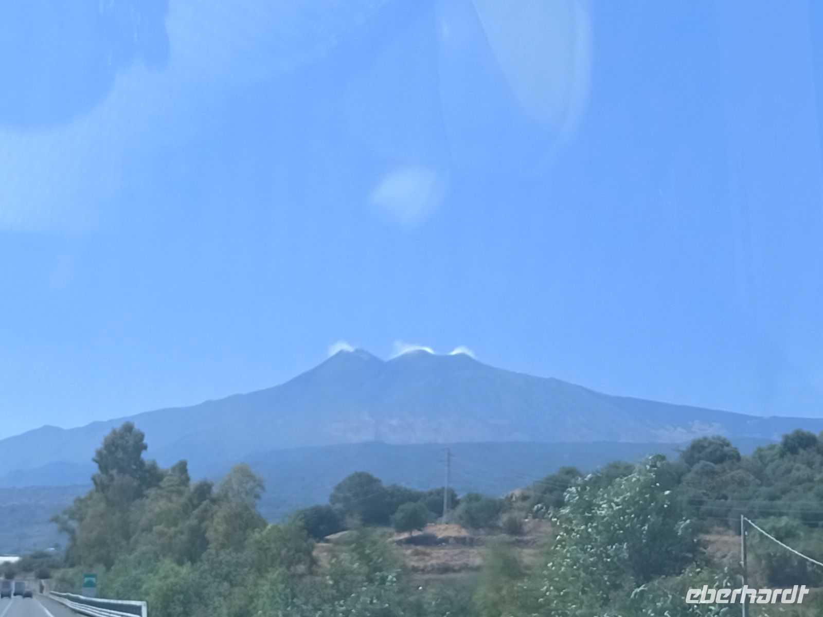 Die Fahrt zum Flughafen Catania dauerte etwa zwei Stunden. Kurz vor Catania bildete sich zwar ein größerer Stau, doch wir erreichten rechtzeitig den Flughafen, konnten dort noch eine Kleinigkeit essen und die letzten sizilianischen Spezialitäten genießen.