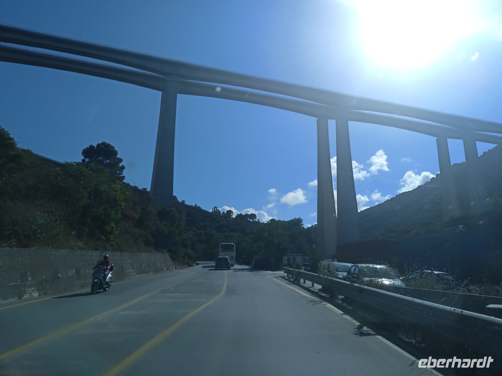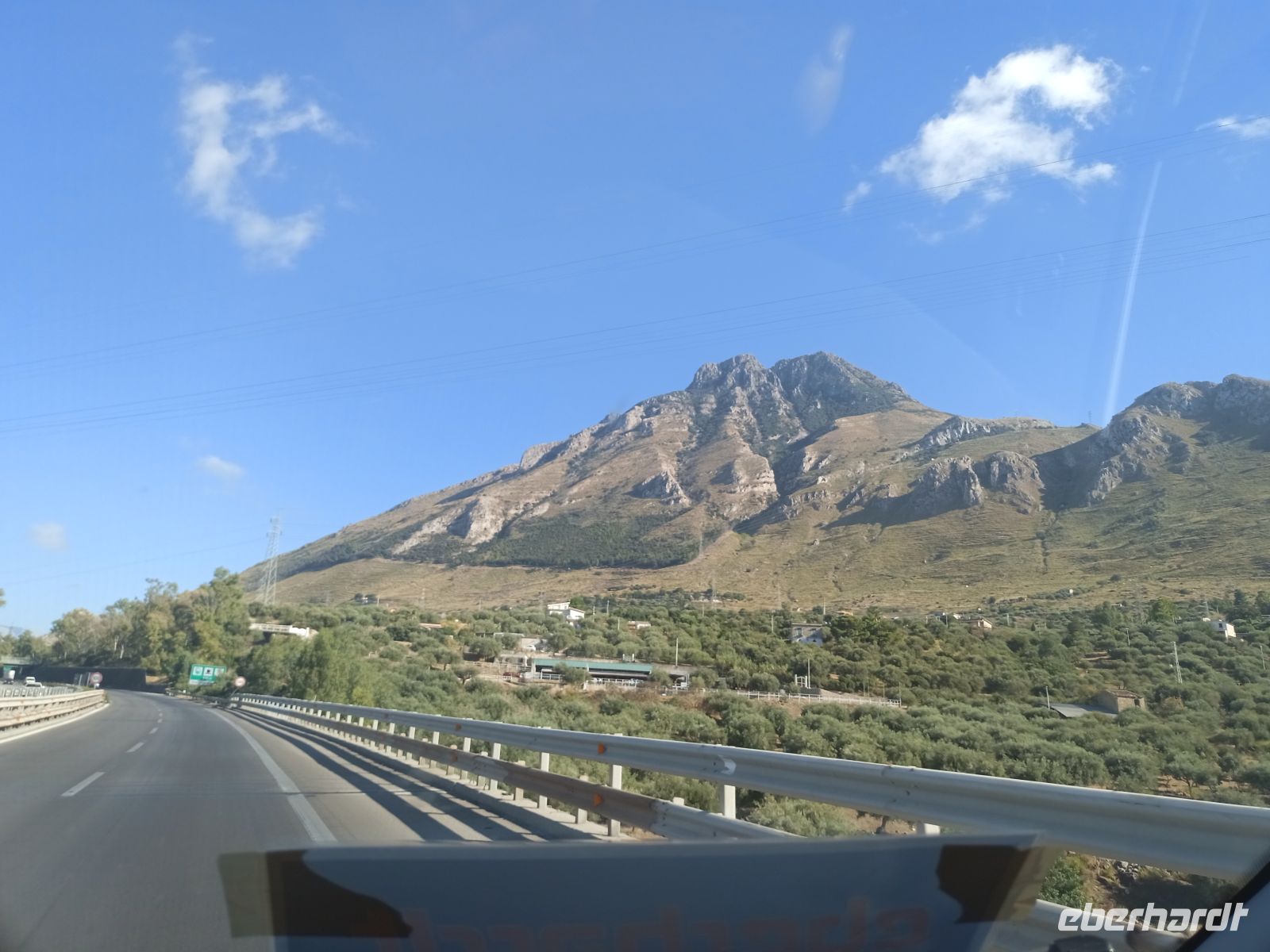 Für unseren fakultativen Ausflug nach Palermo haben sich sieben Gäste angemeldet. Cindy bereitet uns das Frühstück etwas früher, damit wir bereits um wir bereits um 8:30 Uhr mit unseren Fahrer Franco in Richtung Hauptstadt fahren. Die Fahrt führte uns durch zahlreiche Tunnels entlang der Küstenstraße – abwechslungsreich, aber die Sicht auf das Meer blieb dadurch oft verborgen.
