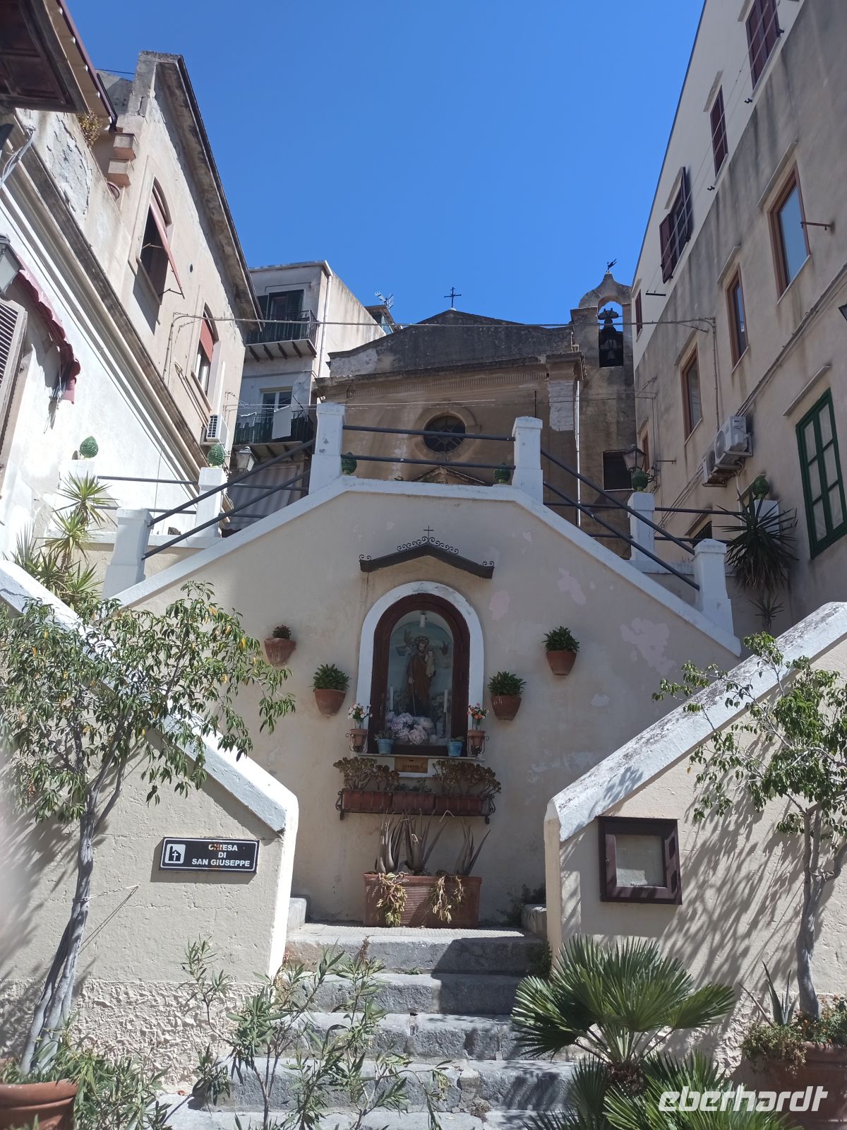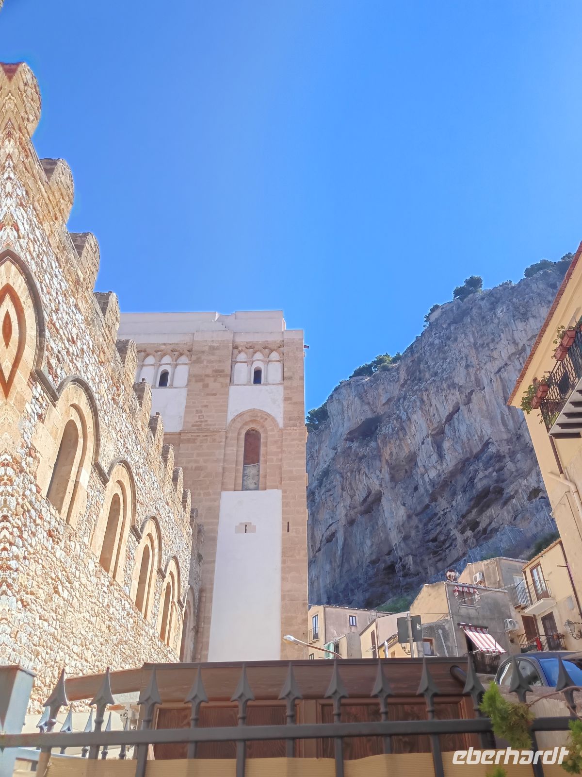 Beim Verlassen betrachteten wir das Bauwerk noch einmal von einer ganz anderen Seite: von der Piazza Sett’Angeli, von wo aus den verschiedenen Baustilen der Kathedrale – von normannisch-arabisch bis neoklassizistisch – besonders eindrucksvoll sichtbar werden.