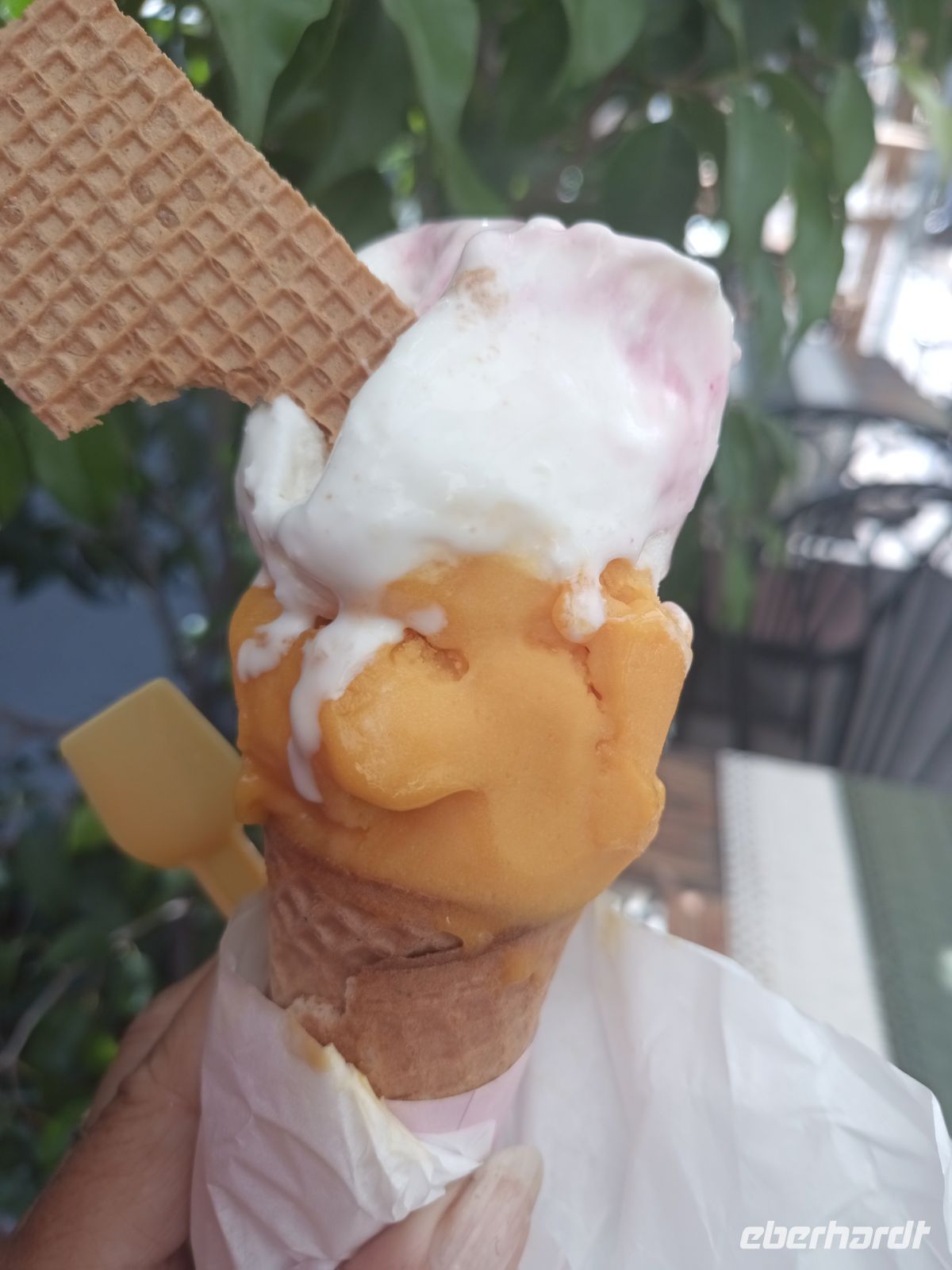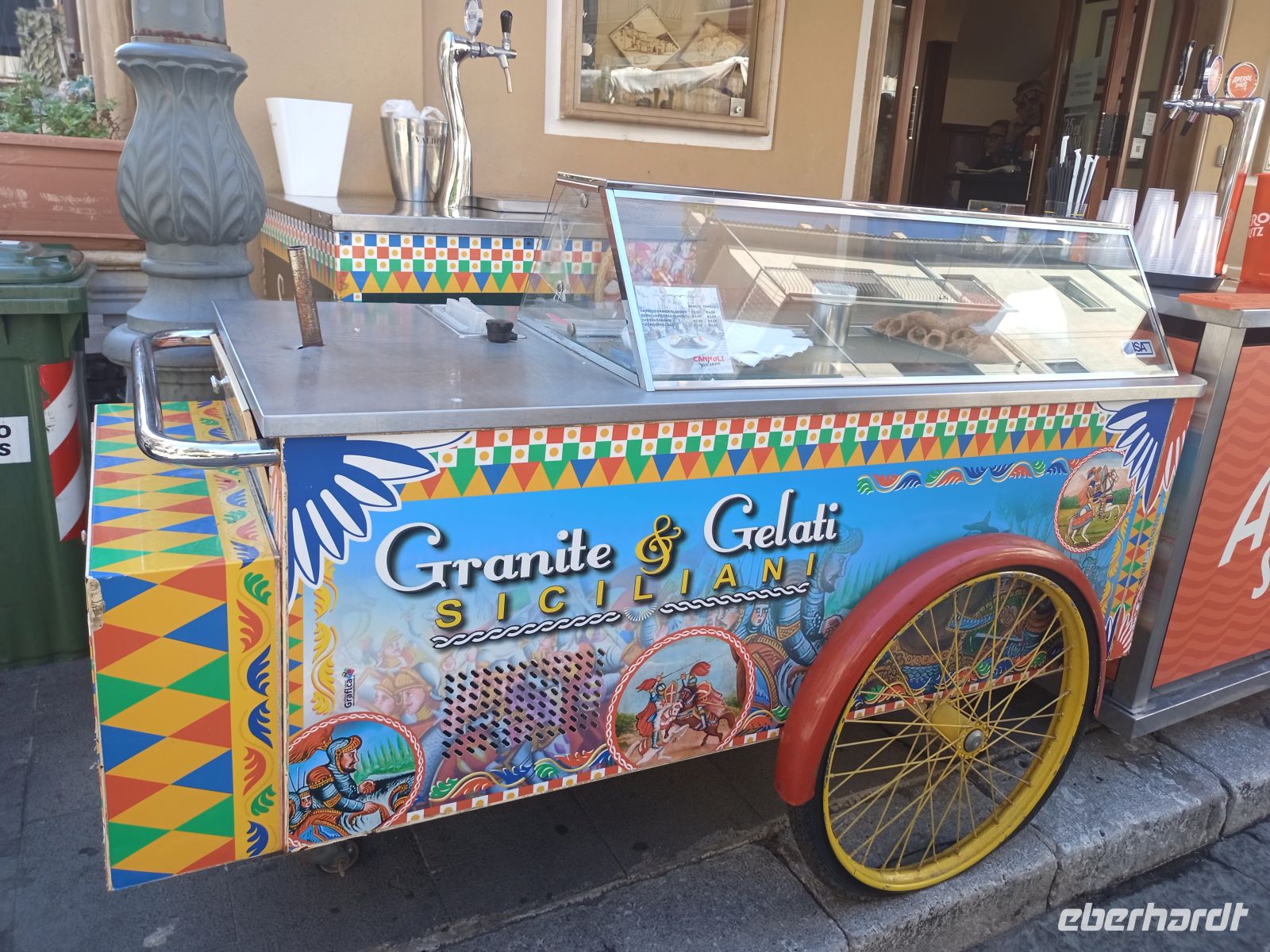 Auf Wunsch der Gäste machten wir uns dann auf den Weg zu einem der berühmten Streetfood-Märkte Palermos. Eigentlich wollten wir im Mercado Ballarò typische Spezialitäten wie Arancini, frittierten Fisch oder andere Spezialitäten probieren. Doch da es dort sehr laut und trubelig war, wichen wir in ein kleines Lokal aus – eine Entscheidung, die sich leider als weniger glücklich erwies, da Service und Rechnung nicht überzeugten. Ein kleiner Wermutstropfen, den wir aber schnell mit einem köstlichen sizilianischen Eis in einer Gelateria an der Via Maqueda wieder wettmachen konnten. Die Via Maqueda ist eine der wichtigsten Einkaufsstraßen Palermos, gesäumt von kleinen Boutiquen, historischen Gebäuden und unzähligen Lokalen, die typisch sizilianische Atmosphäre versprühen.