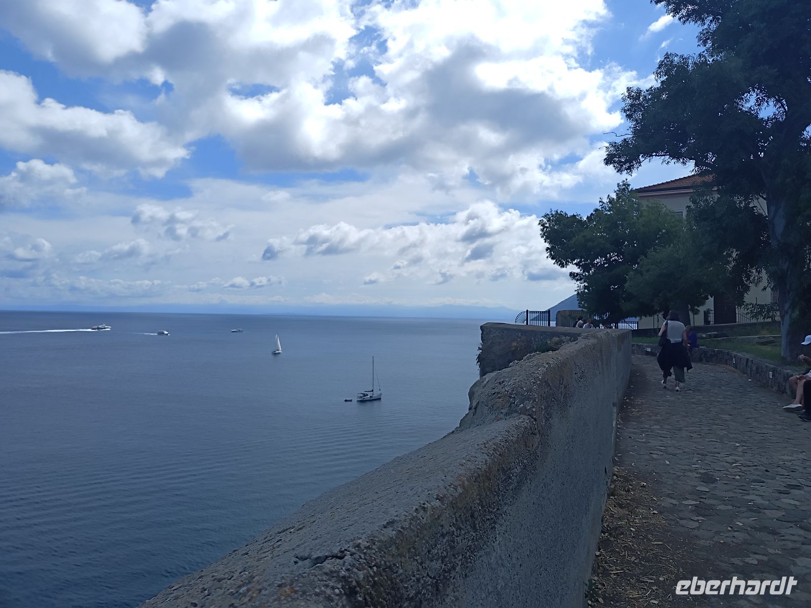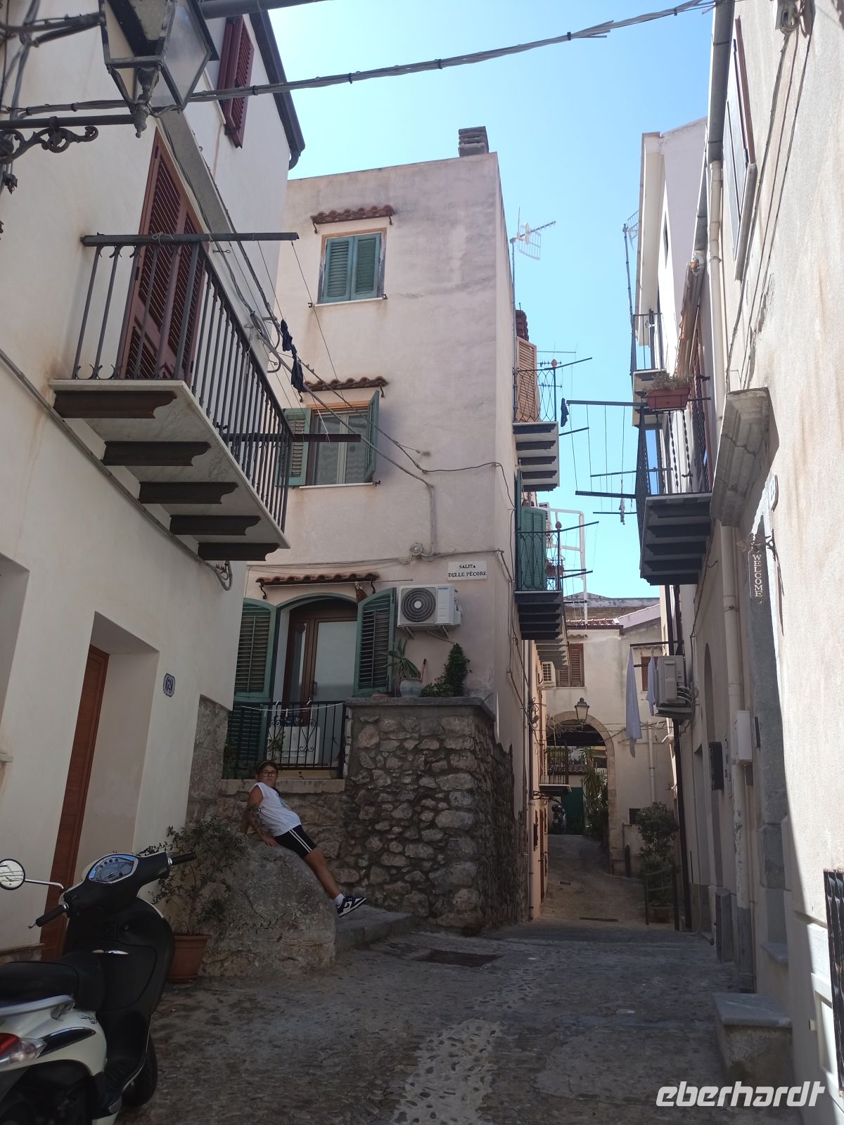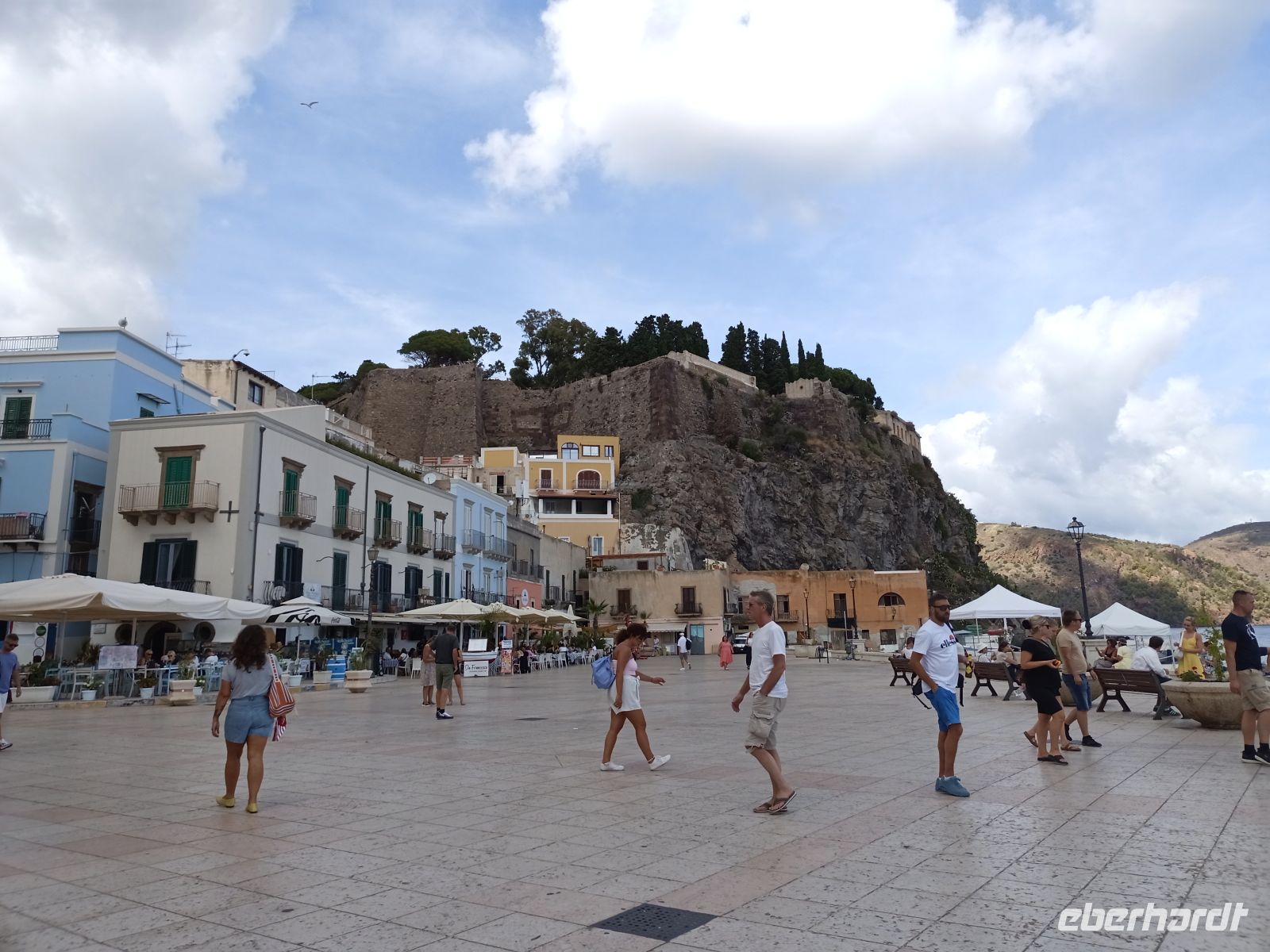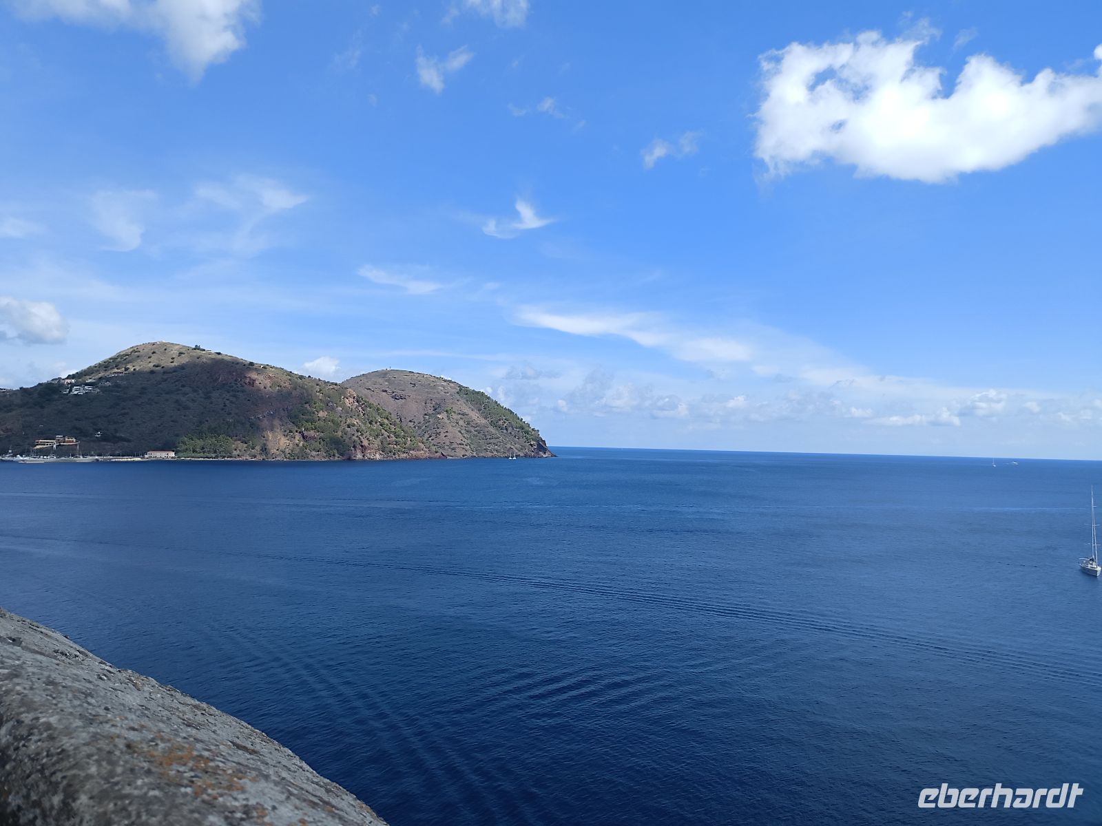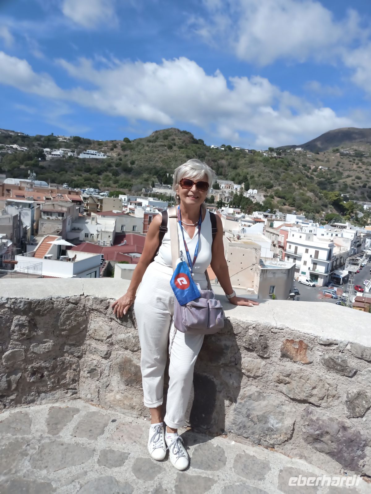 Auf Lipari angekommen, machten wir uns zunächst auf den Weg zum Burgberg - Castello di Lipari. Die Festungsanlage erhebt sich auf einem markanten Felsen über der Stadt und diente über Jahrhunderte als Schutz vor Piraten. Innerhalb der Mauern befinden sich mehrere Kirchen sowie archäologische Stätten, die von der langen Geschichte der Insel zeugen – von prähistorischen Siedlungen über die griechische und römische Epoche bis in die Neuzeit. Von der Piazzetta auf dem Burgberg boten sich atemberaubende Ausblicke auf das tiefblaue Meer, die gegenüber liegende Halbinsel-– ein Bild, das uns bei strahlendem Sonnenschein besonders beeindruckte.