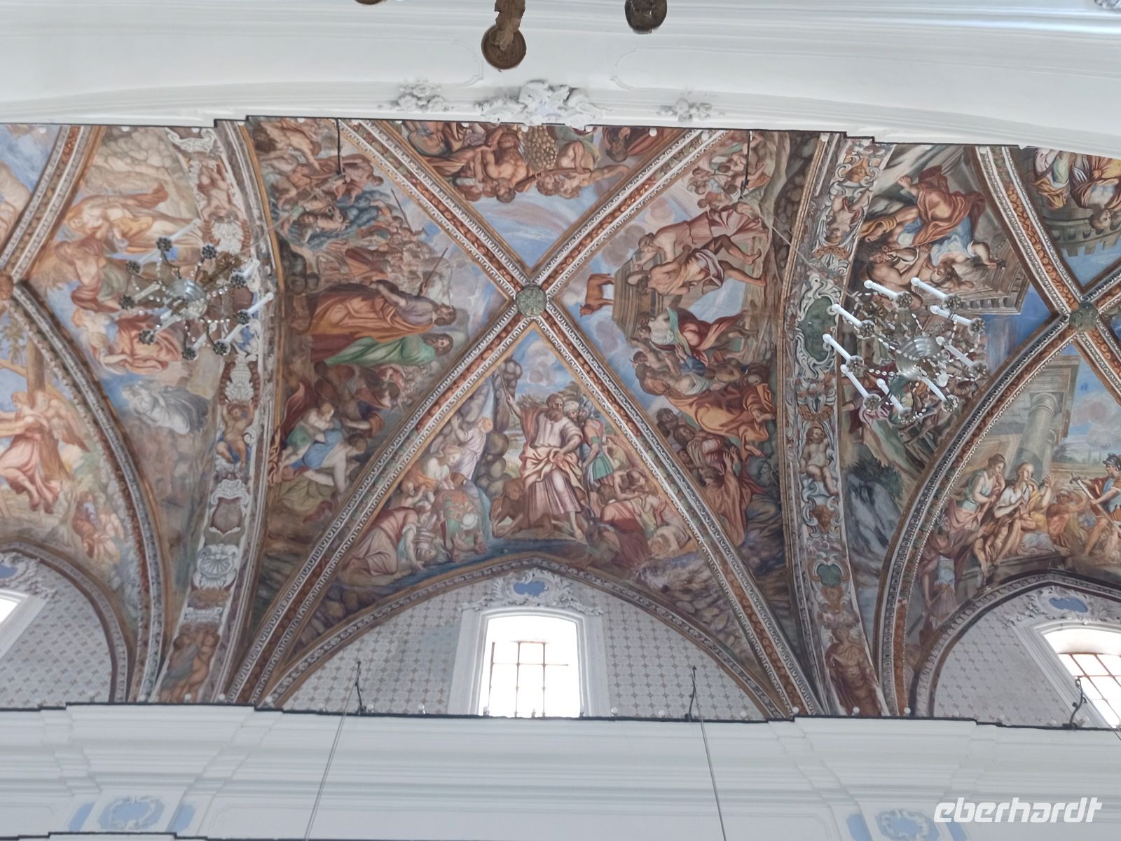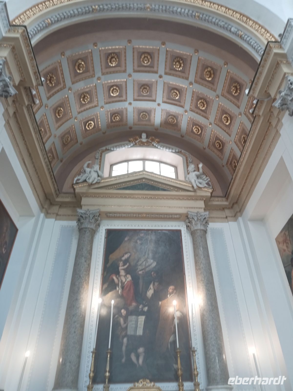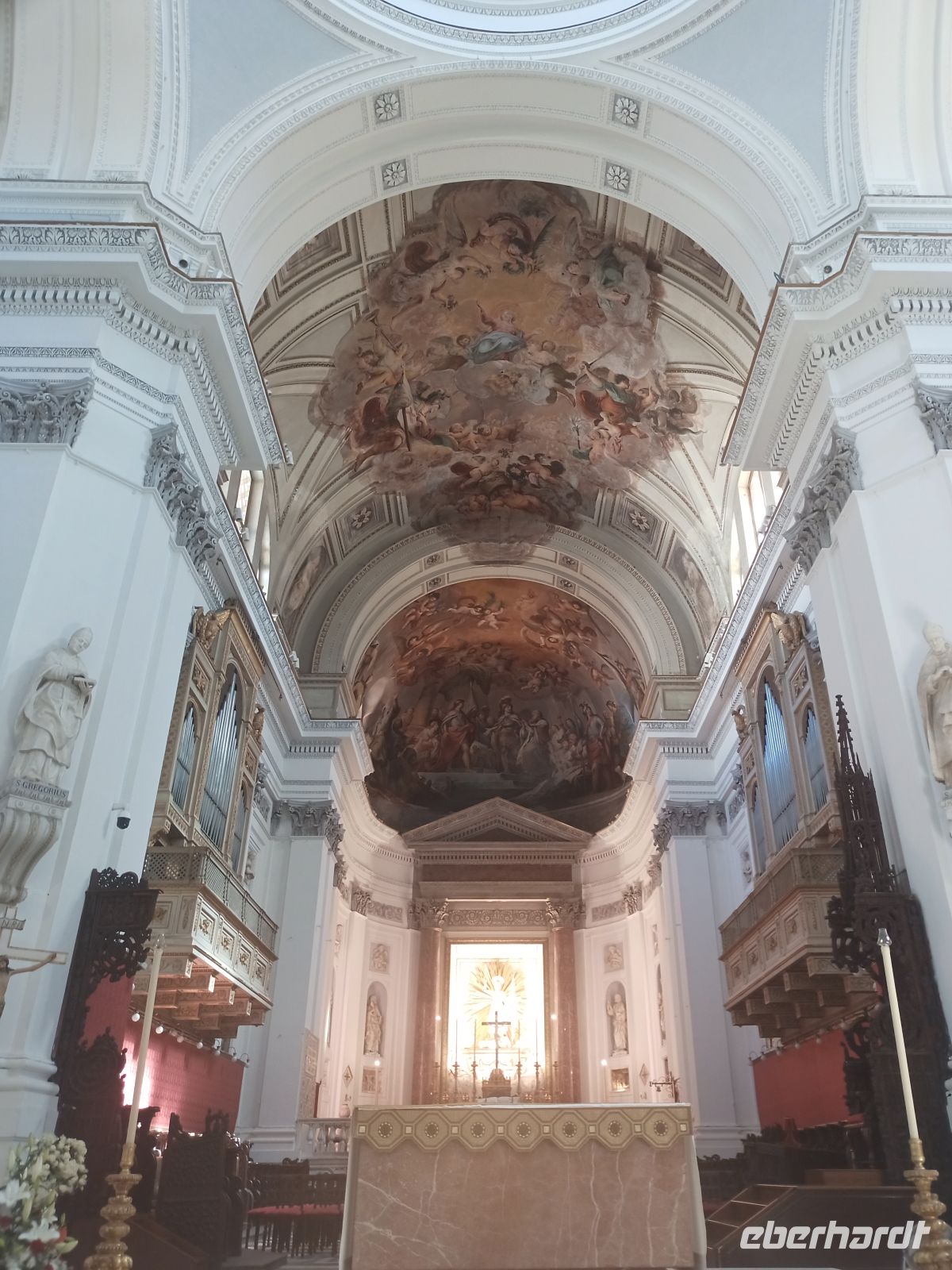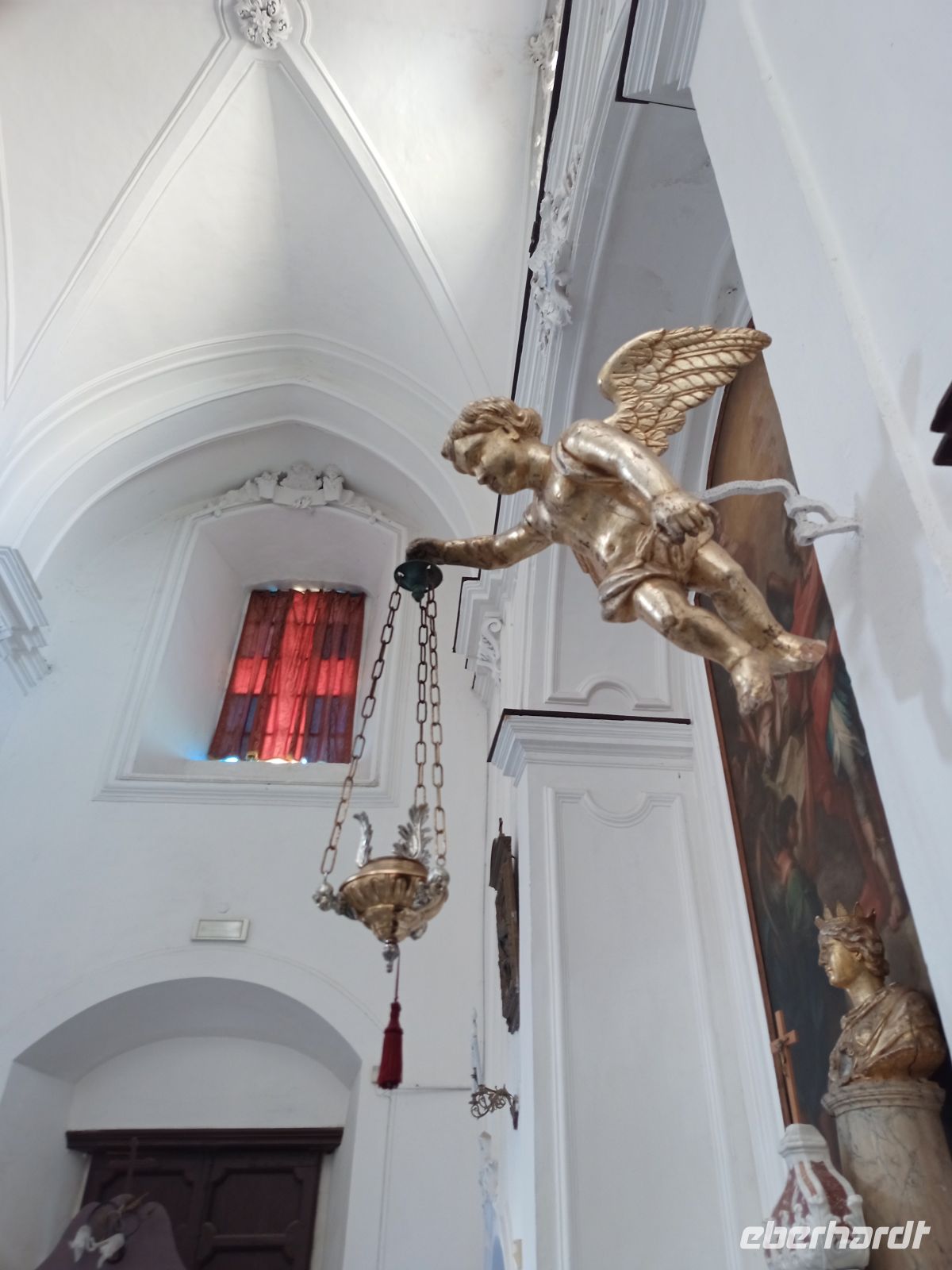 Ein Teil der Gruppe entschied sich, auf dem Burgberg zu bleiben und in einer Taverne einen kühlen Drink zu genießen. Mit den übrigen Gästen besuchten wir die Kathedrale San Bartolomeo, die dem Schutzpatron der Insel gewidmet ist. Der Apostel Bartholomäus gilt seit Jahrhunderten als Patron der Äolischen Inseln, und seine Statue findet sich auch an der Marina Corta. Das Innere der Kathedrale überraschte mit prachtvollen Altären und schöner Architektur.