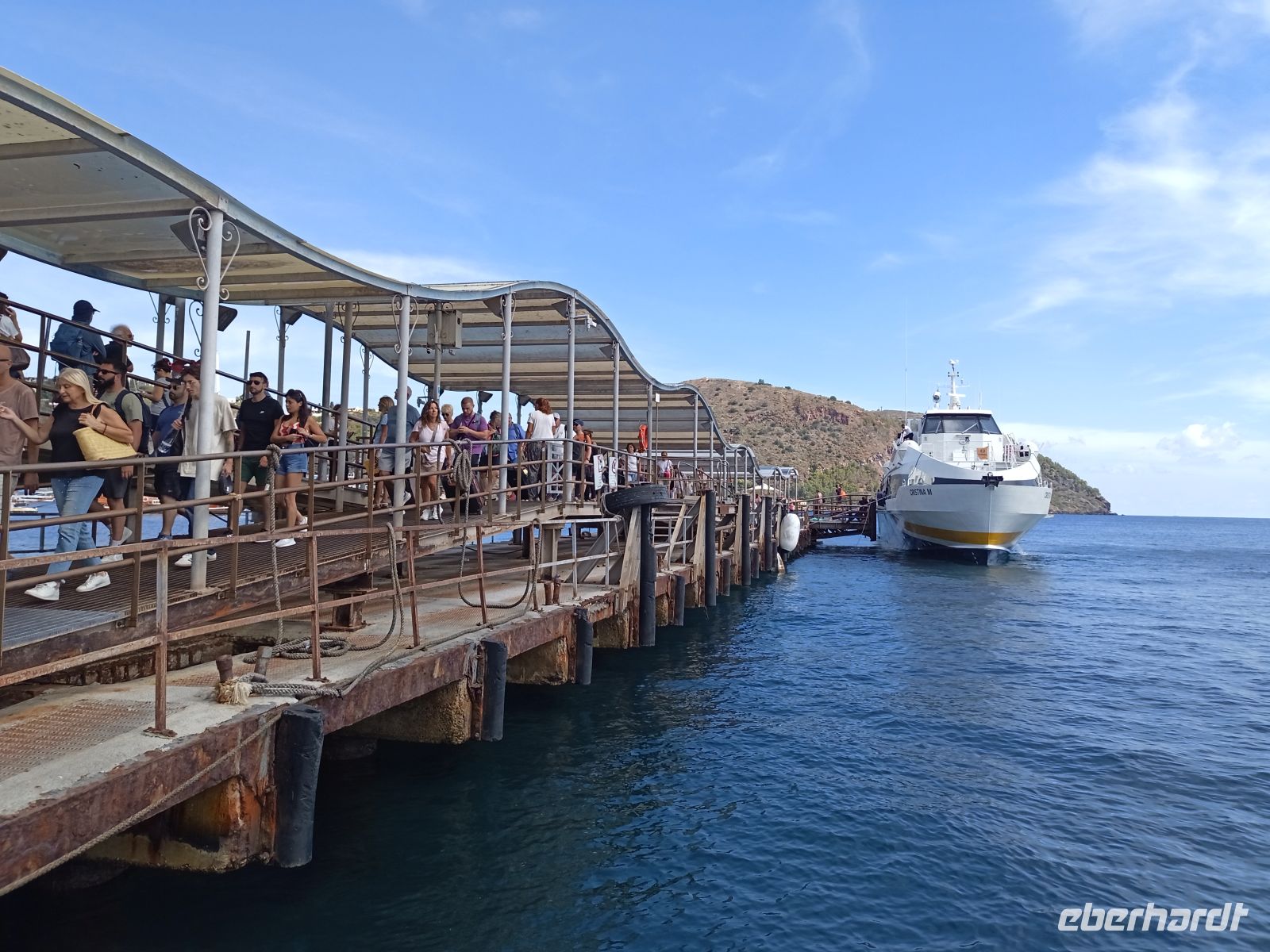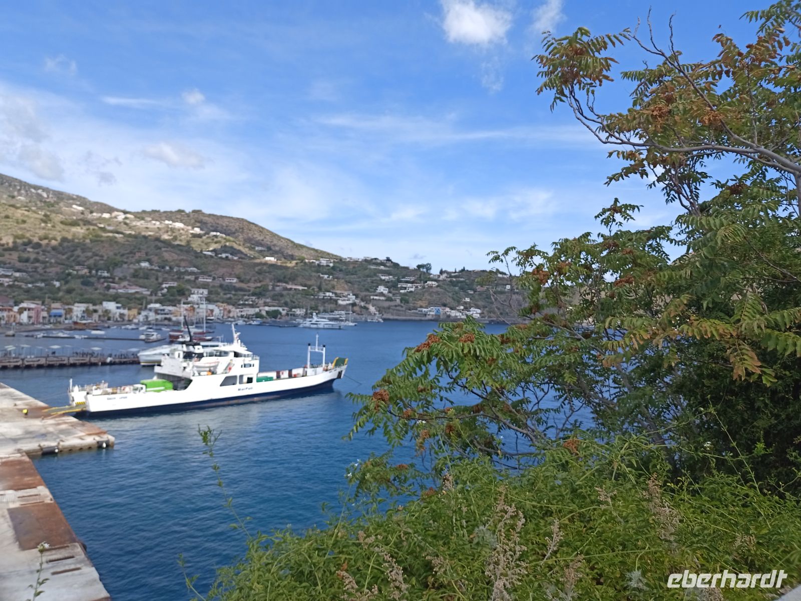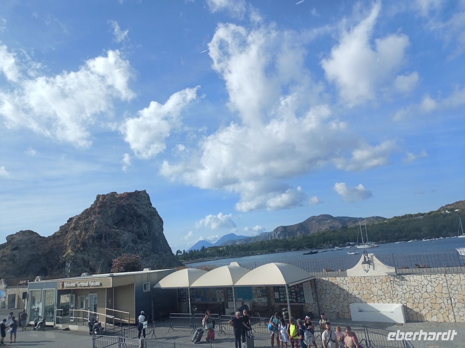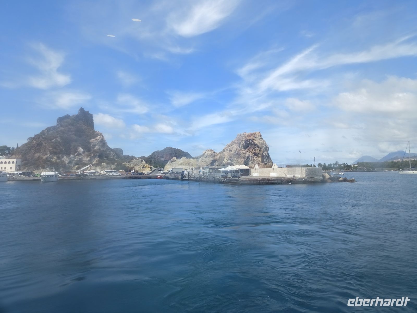 Am Nachmittag sammelte sich die Gruppe wieder am Hafen, um mit dem Schiff zurück nach Milazzo zu fahren. Zwei Damen hatten fälschlicherweise an der Marina Corta gewartet, konnten nach einem kurzen Telefonat aber noch rechtzeitig zum Schiff gelangen. Die Rückfahrt führte uns vorbei an der Insel Vulcano, allerdings ohne Aufenthalt.