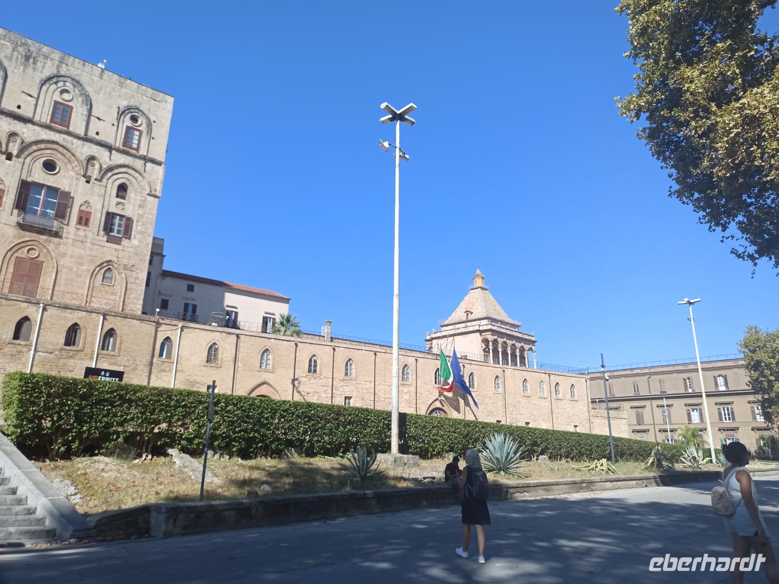 In Palermo angekommen, war das Stadtbild sofort spürbar: dichter Verkehr, geschäftige Straßen, enge Gassen, historische Palazzi und bunte Viertel – ein erster Eindruck der lebendigen Metropole. Wir stiegen unweit der Porta Nuova aus und spazierten zunächst durch die Straßen bis zum königlichen Palast - Palazzo dei Normanni, in dem sich die berühmte Cappella Palatina befindet. Nur ein kurzer Halt, bevor wir weiter in Richtung der Hauptstraße Corso Vittorio Emanuele gingen.