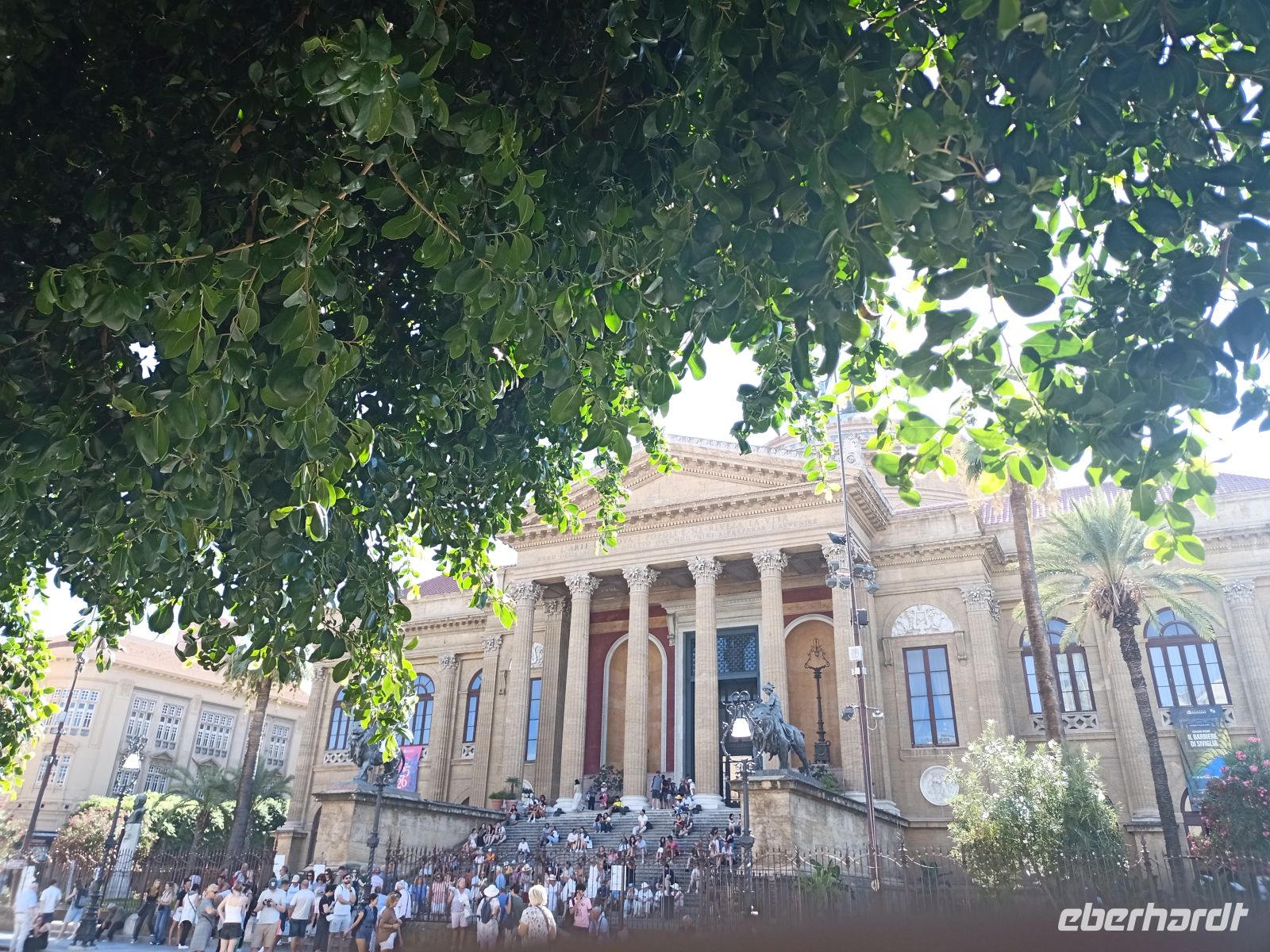 Um 16 Uhr trafen wir uns schließlich am Teatro Massimo, dem größten Opernhaus Italiens und eines der größten in Europa. Es wurde Ende des 19. Jahrhunderts erbaut und ist nicht nur für seine Architektur und Akustik berühmt, sondern auch als Drehort für dem Film „Der Pate“-bekannt. Vor seiner eindrucksvollen Fassade endete unser Palermo-Besuch. Dort sammelte uns Franco wieder ein und wir fuhren zurück in unsere ruhige Villa Ginevra.