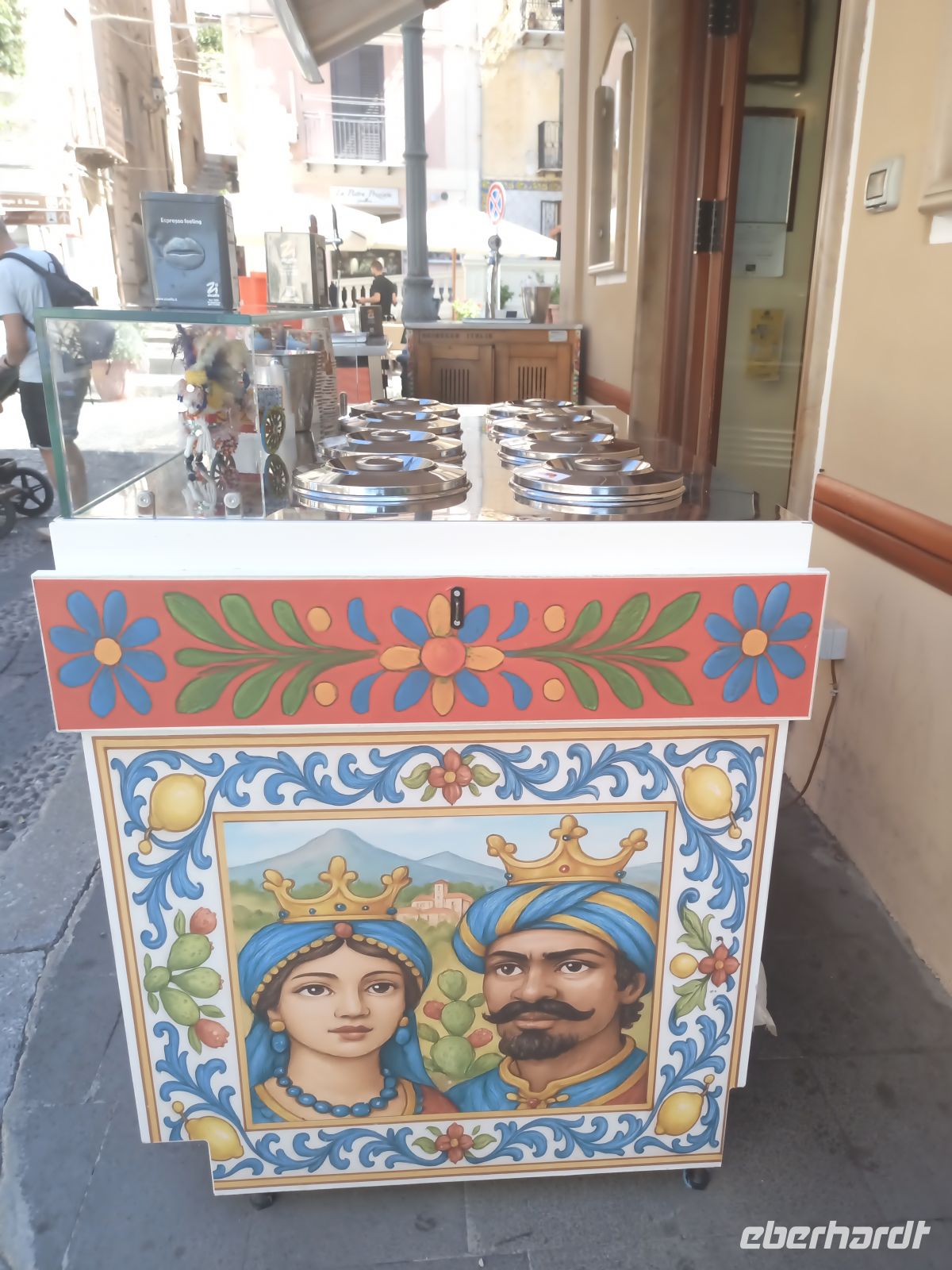 Weiter ging es nach Longi, der Heimatgemeinde unserer Reiseleiterin Maghy. Dort kehrten wir in eine kleine Eisdiele ein und genossen im Freien köstliches Eis oder Granita – eine Einladung von Eberhardt Travel. Für Maghy war dieser Aufenthalt ein besonderes Erlebnis: Sie traf zahlreiche Angehörige, die sie herzlich begrüßten, und vermittelte uns so ein Gefühl echter sizilianischer Familienzugehörigkeit. Im Bus erzählte sie uns zudem die bewegende Geschichte eines Cousins, der in der Umgebung Abenteuer- und Naturtouren organisierte, seine Tätigkeit jedoch aufgrund bürokratischer Hürden aufgeben musste und später bei der Arbeit in einem Steinbruch tragisch ums Leben kam.