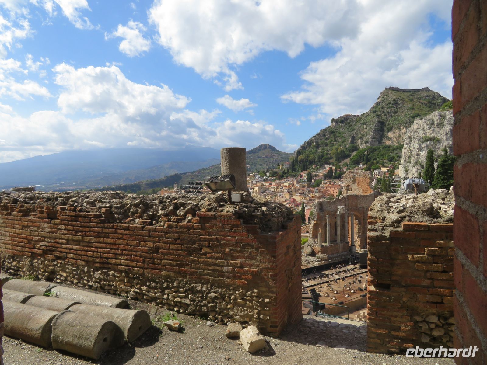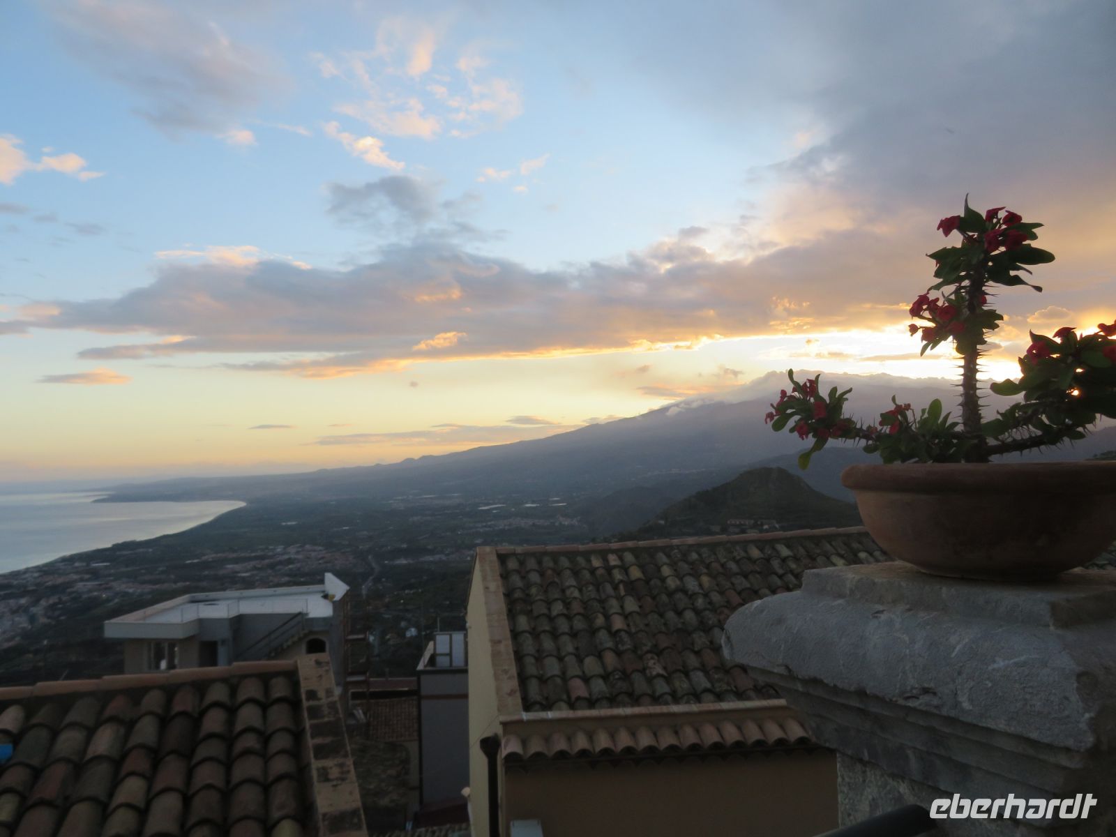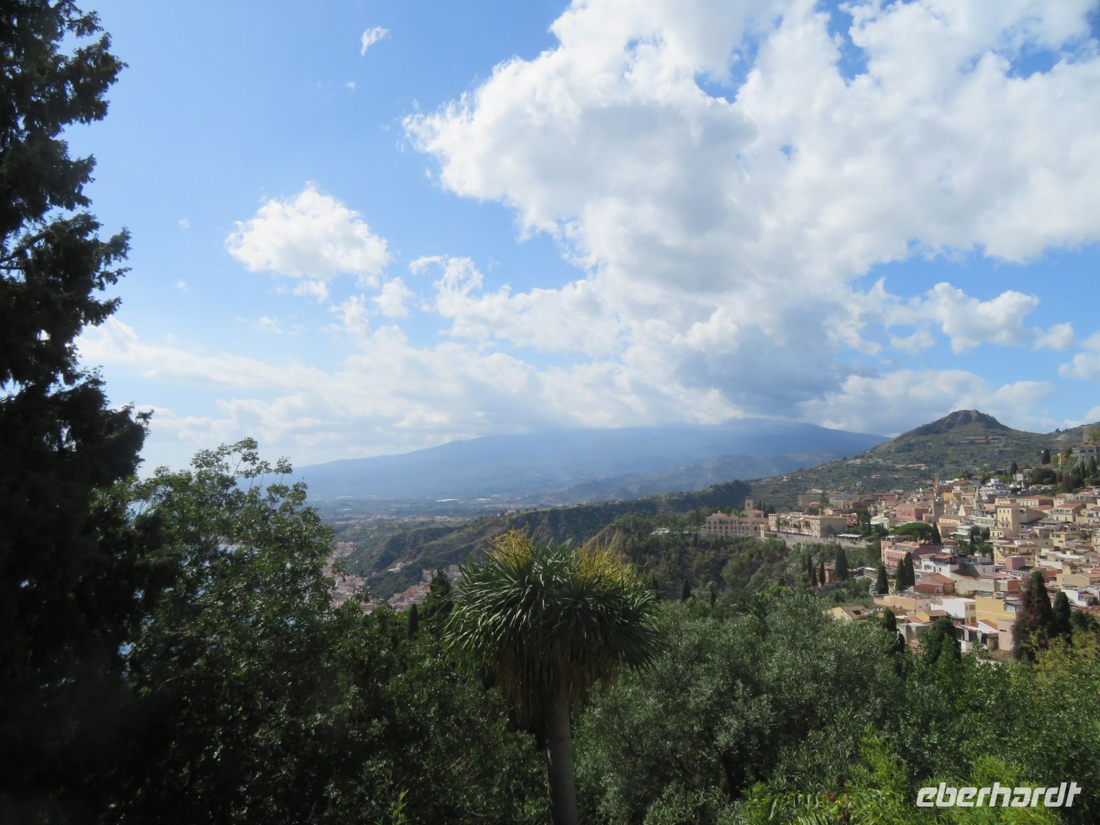 auch die berühmten Bikinimädchen. Auf dem Rückweg zu unserem Hotel begleitete uns der rauchende, seinen Gipfel verbergende Ätna.
