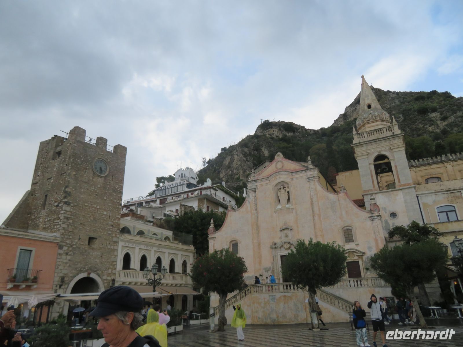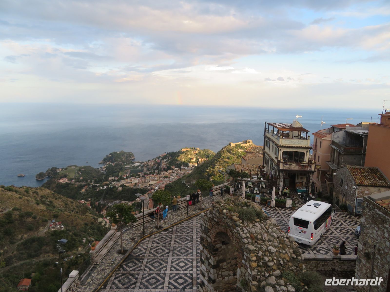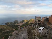 Mit einem freien Vormittag begann unser letzterTag auf Bella Sizilia.Der Nachmittag gehörte dann dem Traumziel vieler Touristrn: Taormina.Schon Goethe schwärmte vom Griechischen Theater,das auch uns begeisterte.Besonders schön ist von dort der Blick zum Ätna.In den Gassen und im Park lässt sich entspannt spazieren und an Aussichtspunkten der Blick aufs Meer genießen. Leider wurde dies durch einen leichten Nieselregen ein wenig getrübt.Am Abend erlebten wir ein nochmal ein echtes Highlight: Wir fuhren zum malerischen Städtchen Castelmolo hinauf. Nach einem Spaziergang durch die engen romantischen Gassen genossen wir ein lukullisches Abschiedsessen in einem besonderen Lokal. Natürlich gab es auch die entsprechenden Cocktails zur Auswahl.Nach diesem stimmungsvollen Tag fiel der Abschied von Sizilien besonders schwer.Auch von unseren Berliner Gästen mußten wir wir uns schon verabschieden und wünschen Ihnen einen guten Flug: