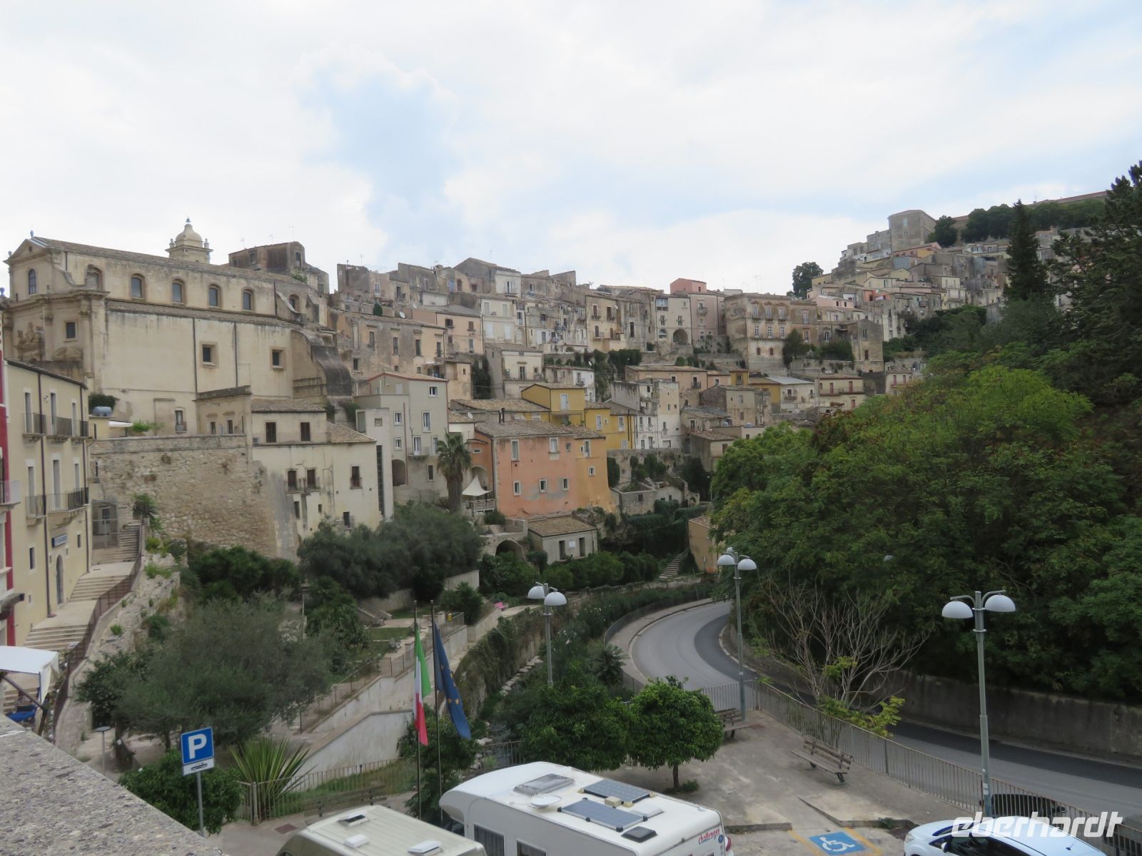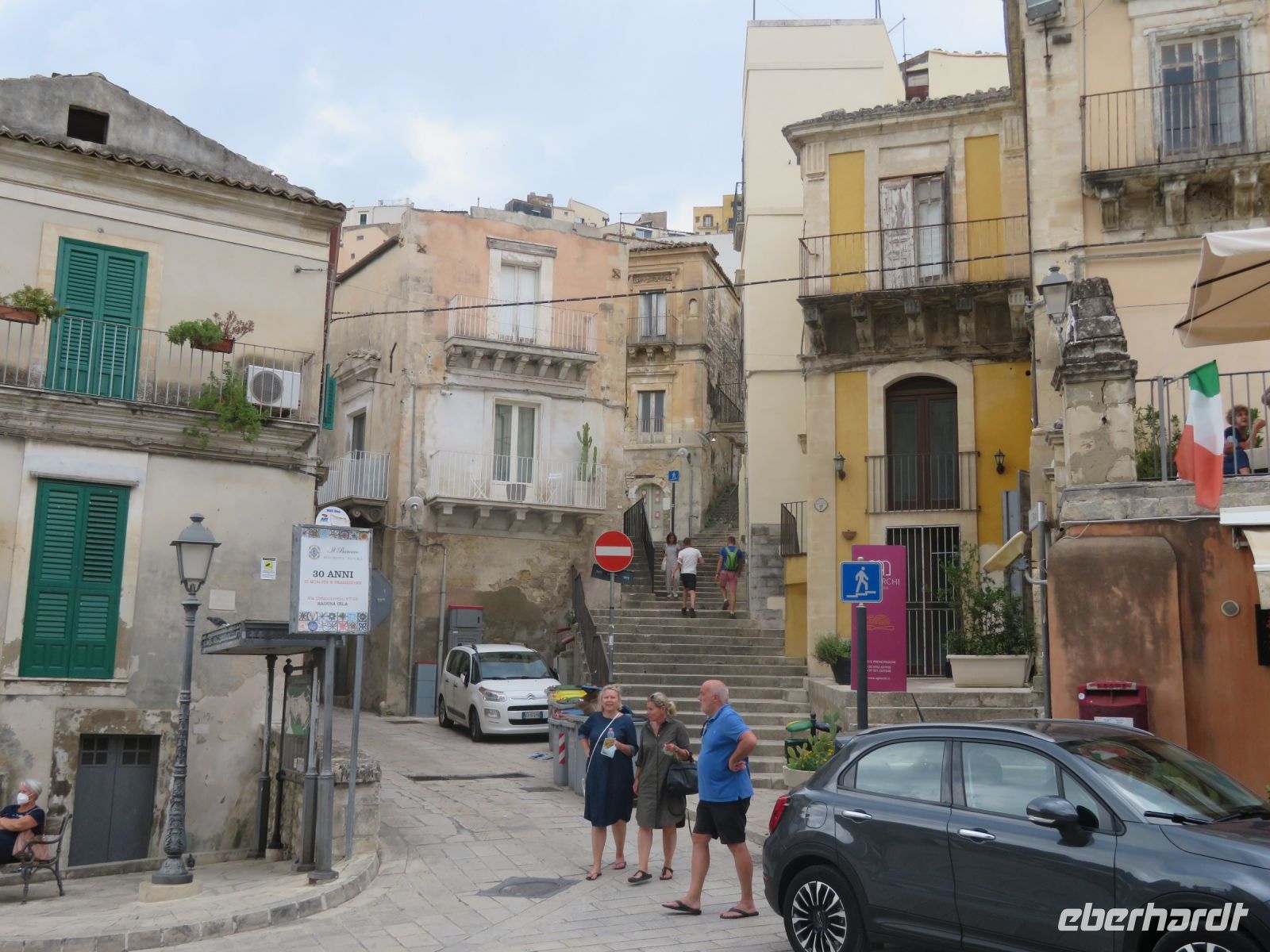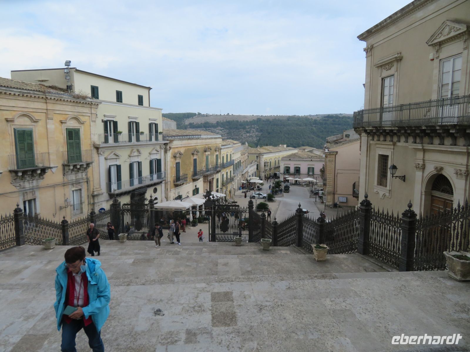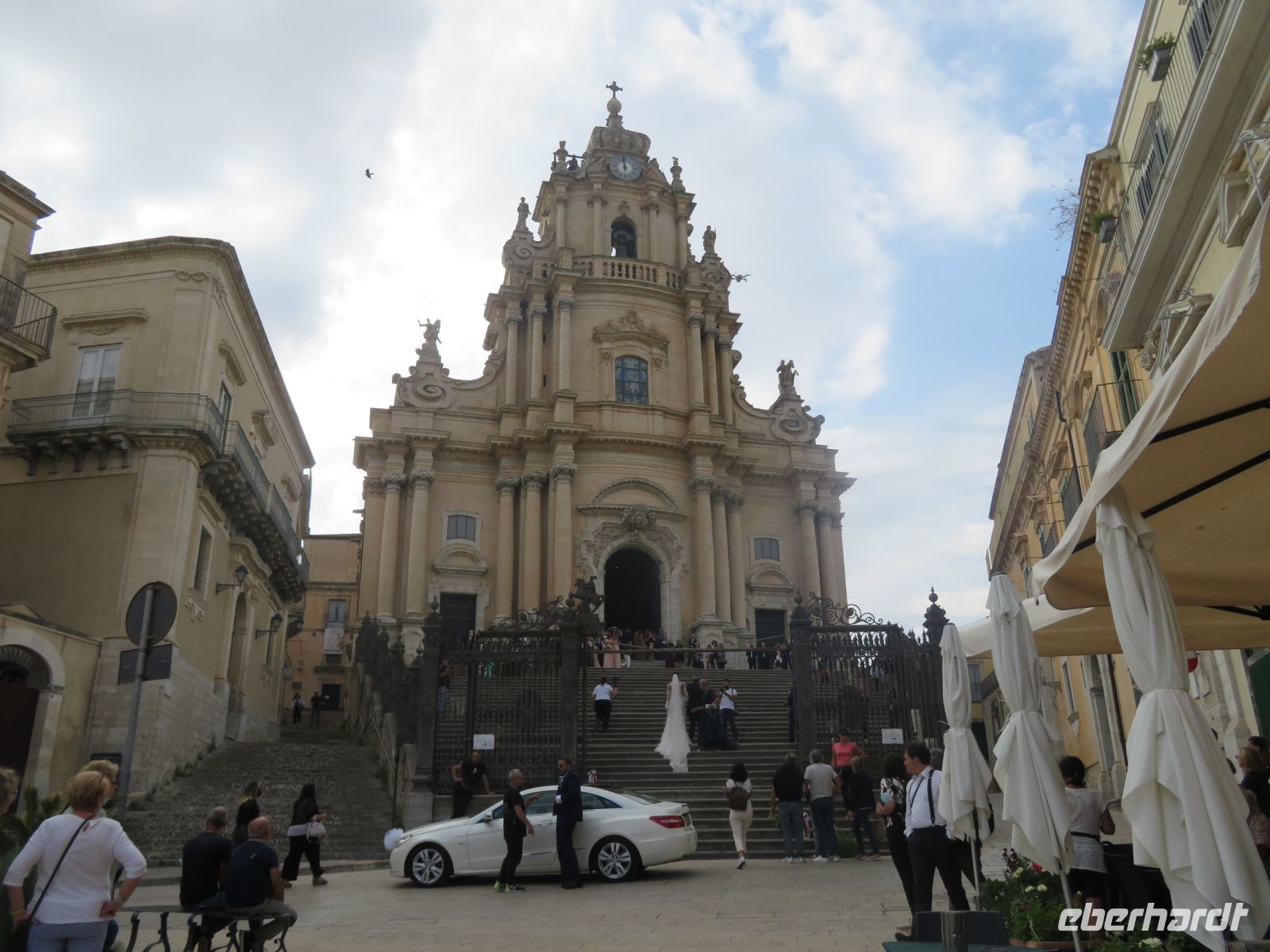 Nach dem Frühstück lernten wir unsere örtliche Reiseleiterin Domenica kennen, die uns während der ganzen Reise begleiten wird. Sie zeigte uns das Castello Donnafugata .Vielen ist es aus dem Roman " Der Leopard" ein Begriff .So waren wir sehr gespannt, diesen historischen Ort in Augenschein zu nehmen. Beeindruckend, welch Prunk in den Räumen vorherrscht ! Nach der Schlossführung erwartete uns ein typisches Antipasti- Essen in einer Trattoria .So gestärkt fuhren wir nach Ragusa. Domenica zeigte uns Ragusa- Ibla, die am Hang malerisch gelegene Altstadt mit ihren ehemaligen Prachtbauten, und erzählte von deren Geschichte Am Dom bewunderten wir eine festliche Hochzeitsgesellschaft.Die anschließende Freizeit ließ Raum für eigene Entdeckungen: einen Caffebesuch, für einen Espresso , ein Gelato oder eine Granita.