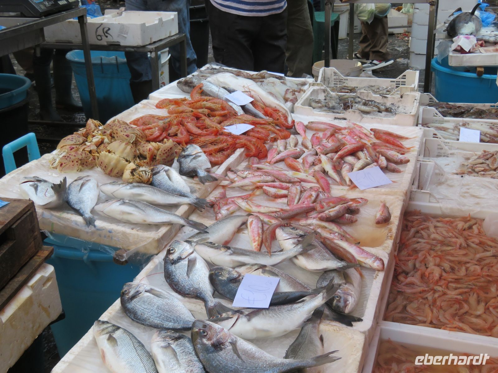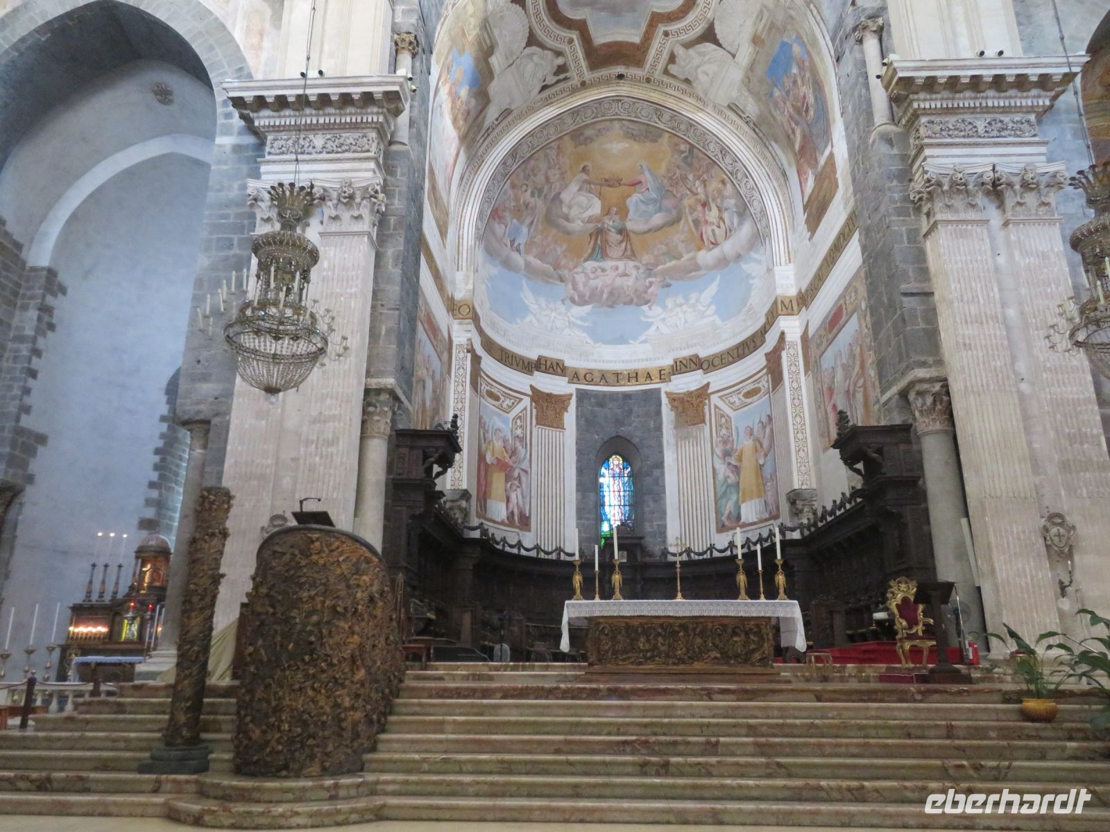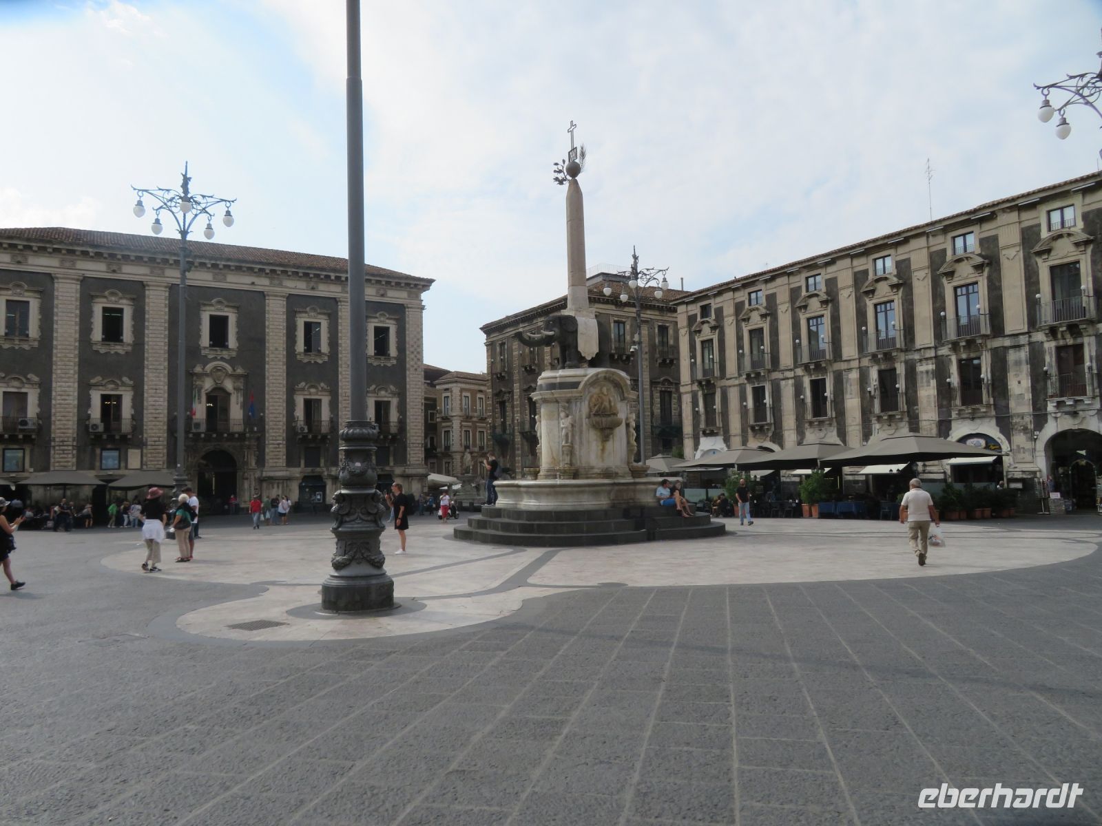 Am späten Vormittag machten wir uns auf den Weg nach Catania.Die zweitgrößte Stadt Siziliens wurde von Lavaströmen geprägt.So bedeckte dieser das untere Geschoß des Castello Ursino und sowohl Häuser als auch Straßen und die Kathedrale sind aus dem dunklen Lavagestein gebaut. Exotisch mutete uns der Fischmarkt mit seinen Thun- und Schwertfischen, Muscheln, Scampis, Seesternen und allerlei anderem Meeresgetier an.