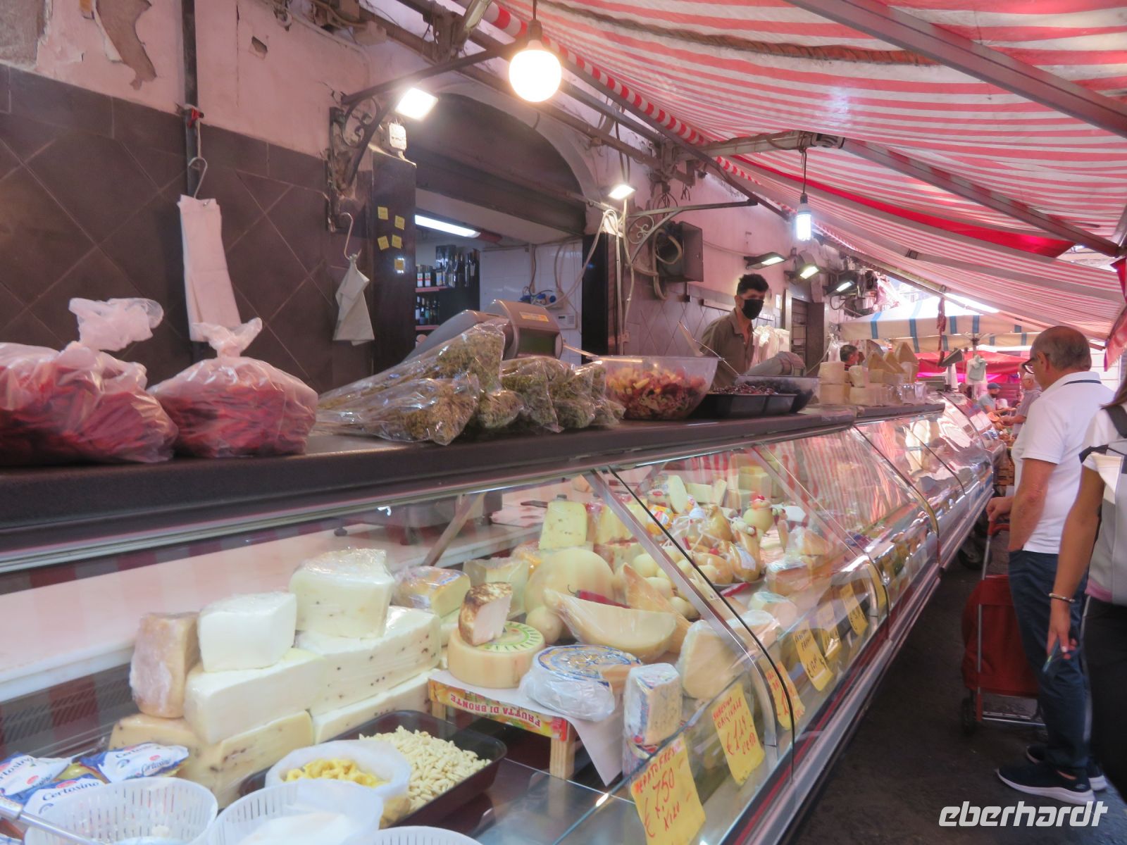 Kostproben von sizilianischem Käse,Wurst und anderen Spezialitäten gab es auf dem Lebensmittel und Gemüsemarkt