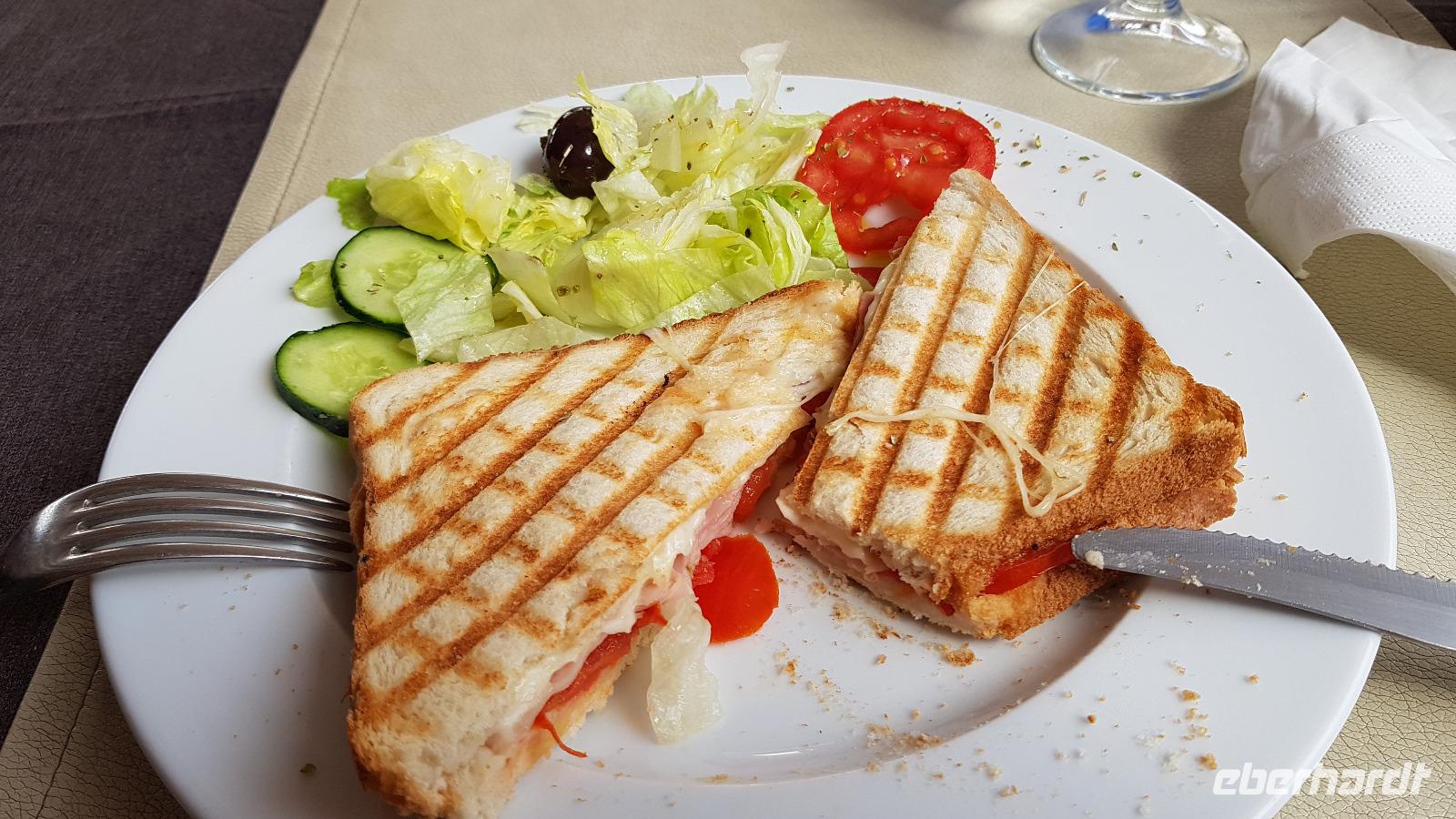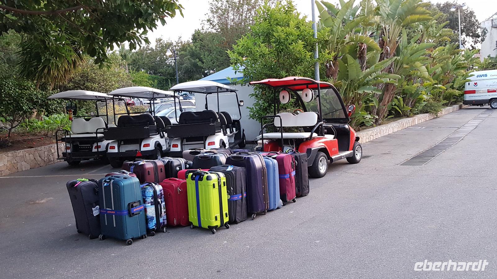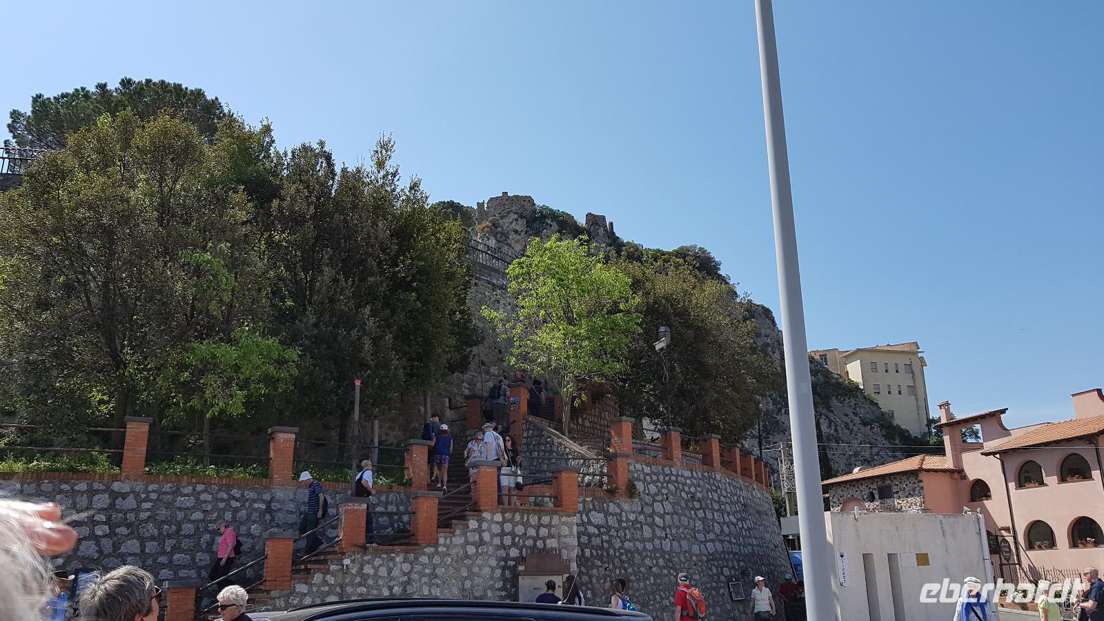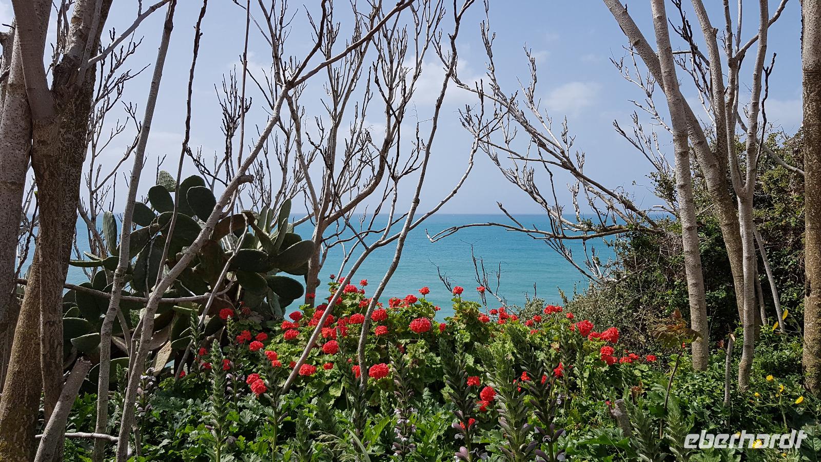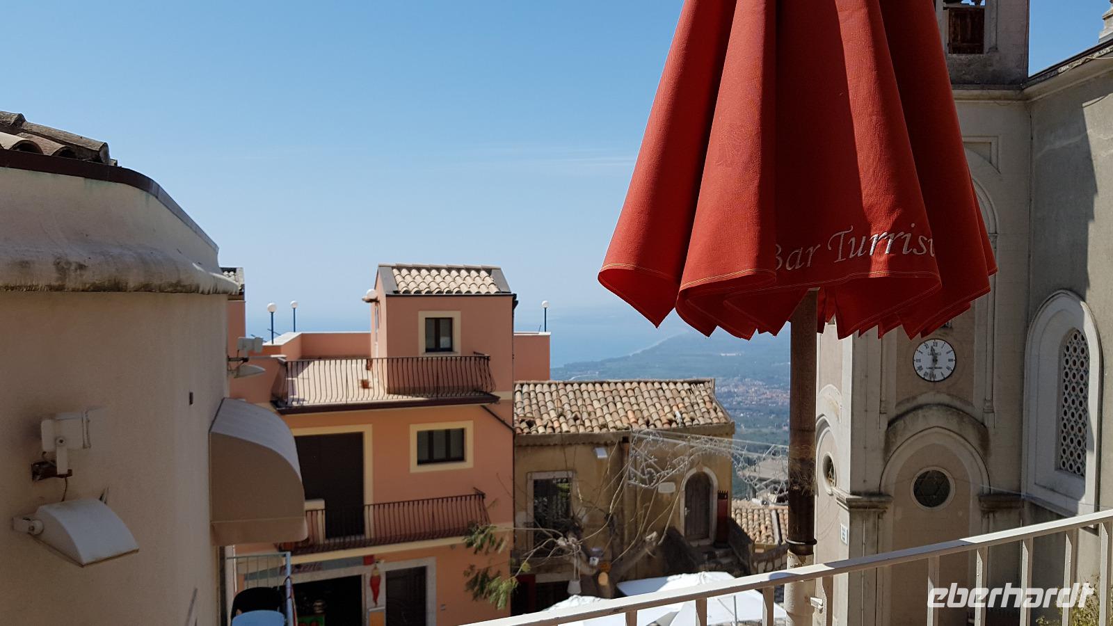 Strahlender Sonnenschein begrüßt uns heute Morgen. Gestern hatten sie am Strand alles aufgeräumt und plan gemacht- perfekt für alle die, die heute hier bleiben. Mit 13 wagemutigen starte ich um 9 Uhr unseren Ausflug nach Castelmola. Bis zum Bus-Terminal ist es ein hübscher Morgenspaziergang, hier rüsten wir uns mit Fahrplänen nach Taormina und weiter nach Castelmola aus. Endlich kommt auch unser Bus- er fährt tatsächlich die Küstenstraße entlang (was die Reisebusse nicht dürfen) und so genießen wir ein einzigartiges Panorama hinauf nach Taormina. In der Bucht liegt ein Kreuzfahrtschiff vor Anker, man kann sehen, wie die Gäste mit den Tenderbooten an Land gebracht werden. Wir haben einen tollen Blick auf die Isola Bella und bewundern den Busfahrer, wie er die Serpentinen hier hinauf trotz Gegenverkehr meistert. In Taormina hieß es dann warten. Es ist Wochenende und der Verkehr ziemlich dicht nach Castelmola hinauf, so wurde uns gesagt. Wir nutzten die Zeit für einen kurzen Spaziergang auf eine Aussichtsplattform eines Hotels- was für ein Blick ! Dann endlich: ein Bus zeigte Castelmola an und wir konnten einsteigen. Und wieder diese Serpentinen! Immerhin fuhren wir bis auf 550 Meter hinauf. In Castelmola angekommen genossen wir erst einmal den Blick von hier oben, da war das griechisch-römische Theater, das wir schon bei unserem Besuch in Taormina kennengelernt hatten, dort die alte Burganlage, die hoch über allem thront.Wir steigen die Stufen hinauf und gehen am Castell vorbei, tauchen ein in die kleinen Gassen des Städtchens. Eine Besonderheit wollte ich den Gästen nicht vorenthalten: das Cafe Turrisi. Hier dreht sich alles um die Männlichkeit- der Phallus ist in allen Formen, Größen und Darstellungen überall präsent. Selbst die Lampen, Armlehnen, Geländer, Bodenfliesen- alles huldigt der Männlichkeit. Sichtlich erheitert setzen wir unseren Spaziergang fort, erstehen noch eine Karte oder ein Souvenir und schon heißt es Abschied nehmen. Dieses Mal ist der Bus überpünktlich. Er bringt uns sicher zurück nach Taormina. Einige Gäste bleiben noch hier, mit den anderen fahre ich zurück nach Giardini Naxos. Natürlich habe ich mal wieder nicht richtig hingehört, was der Fahrer an der Haltestelle sagte, ich verstand, dass wir hier aussteigen sollten, der nächste Bus würde zu unserem Terminal nach Recanati fahren. Also alle aussteigen. Gut, dass Frau Schneider nochmal nachgefragt hatte, er meinte natürlich, die nächste Haltestelle sei unser Teminal. Also alle wieder einsteigen- so einfach wird aus einem Linienbus ein Hop on-Hop off. Wohlbehalten kommen wir also wieder an und unsere Wege zerstreuen sich, einige möchten eine Kleinigkeit essen, andere laufen zurück zum Hotel und wollen es den anderen gleichtun- das wunderbare Wetter am Strand genießen. Ein perfekter Urlaubstag wird dann wieder mit einem tollen Buffett zum Abendessen gekrönt. Wir verabschieden und von Familie Schneider, die noch ein paar Urlaubstage dranhängt und dann heißt es früh schlafen gehen, für morgen 6.00 Uhr ist schon Frühstück angesagt.